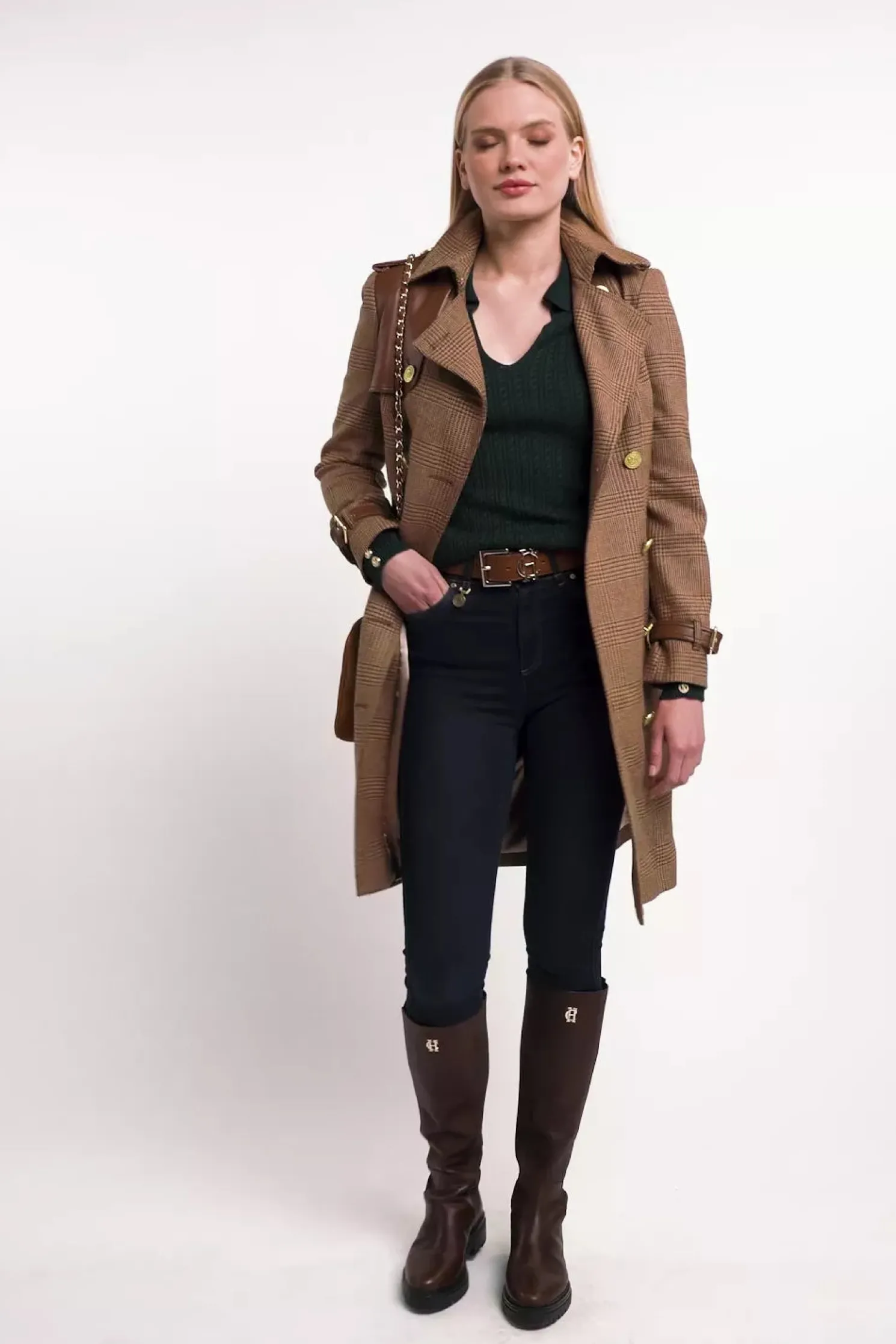 Crafted from a luxurious super soft yarn, this jumper ensures a sumptuously cosy feel against your skin. With an intricate cable design with a slim silhouette and deep v collar neckline. Beautifully elevated with gold hardware on the cuffs.