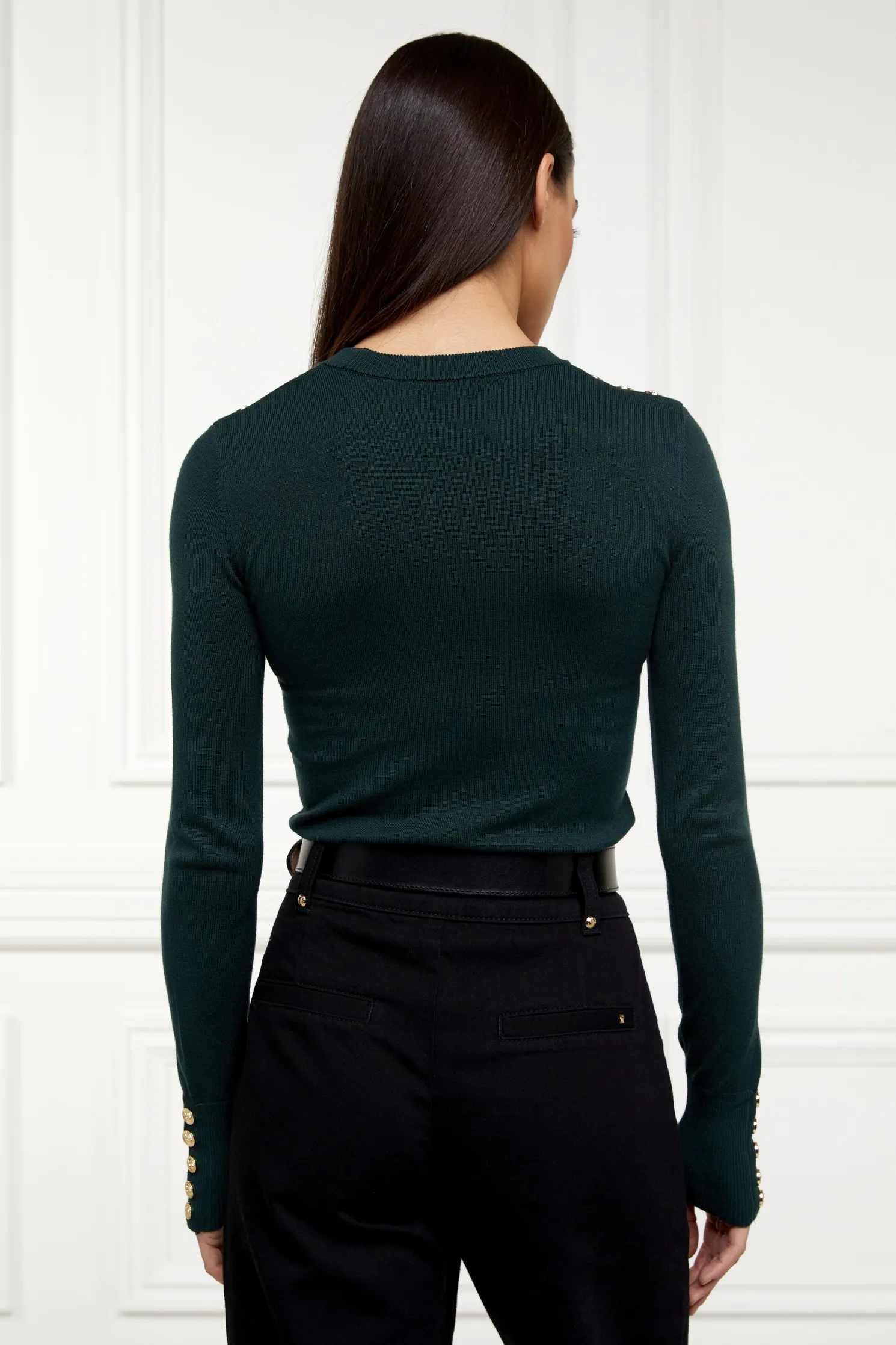 Introducing HC’s update to the buttoned knit crew neck, now with our signature hardware on both shoulders, to form part of your signature look. Complete every outfit with this stylish, classic and easy to wear wardrobe staple.