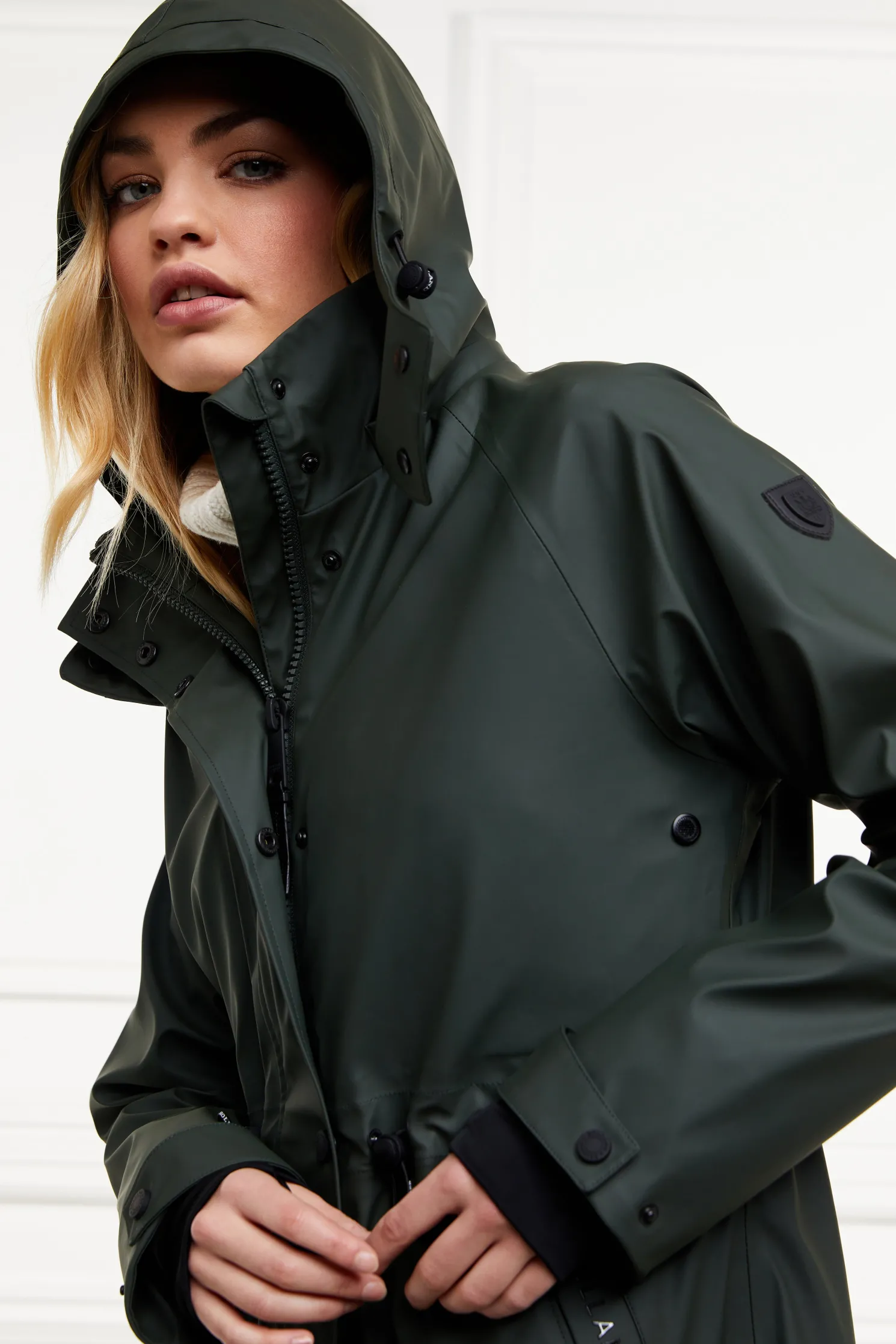The Chartwell rain parka has been designed with style and versatility in mind, ready to endure harsh weather with the durable waterproof material and waterproof zips. The coat also has deep lower welt pockets on the front with silicone printed Holland Cooper branding. The silhouette follows classic parka lines with adjustable waist and cuffs, finished off with fresh matte black coated hardware.