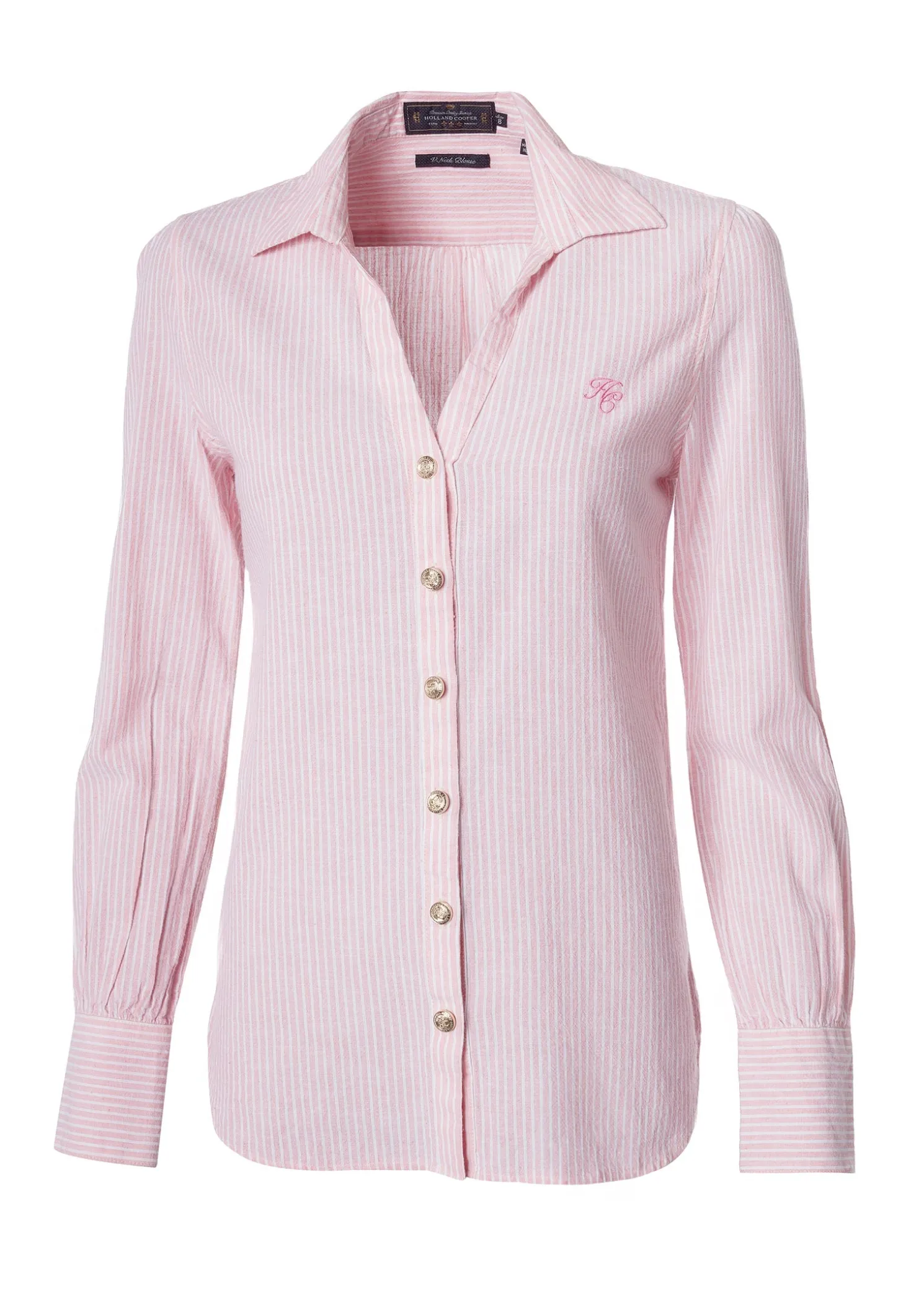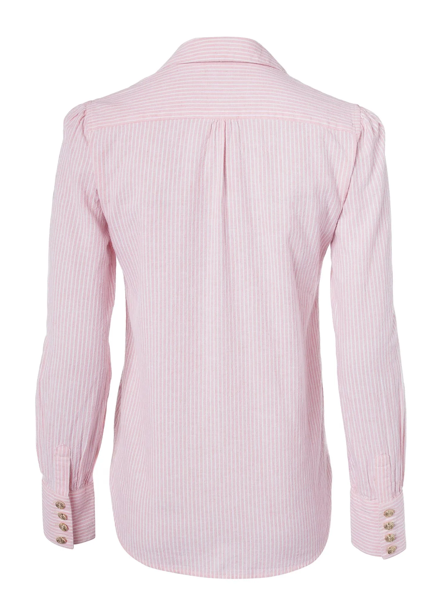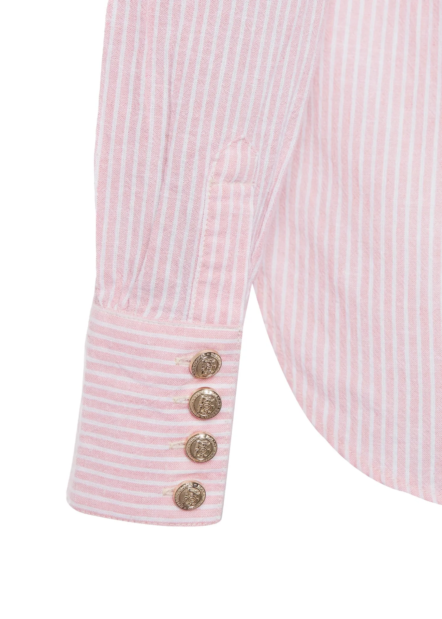 Crafted from lightweight cotton and boasting preppy-style stripes, this shirt combines a relaxed fit with a touch of sophistication. Featuring subtle details, the small embroidery on the front chest and our signature gold metal hardware elevate this traditional style.