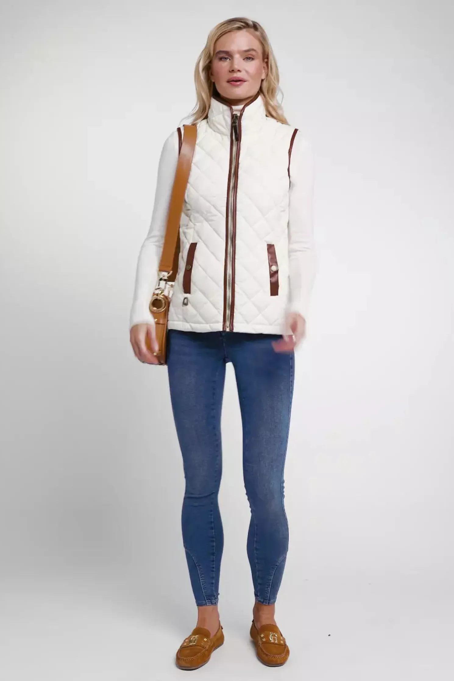 Beautifully designed with a slim fit, this classic length gilet has been lightly filled with Sorona® eco fill. Detailed with faux leather piping around the edges and finished with our antique brass fastenings and HC embroidery to the collar. This timeless classic is needed in every wardrobe and is perfect for layering.