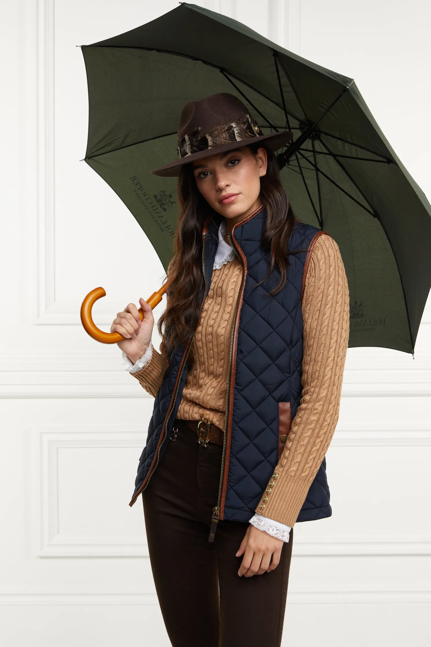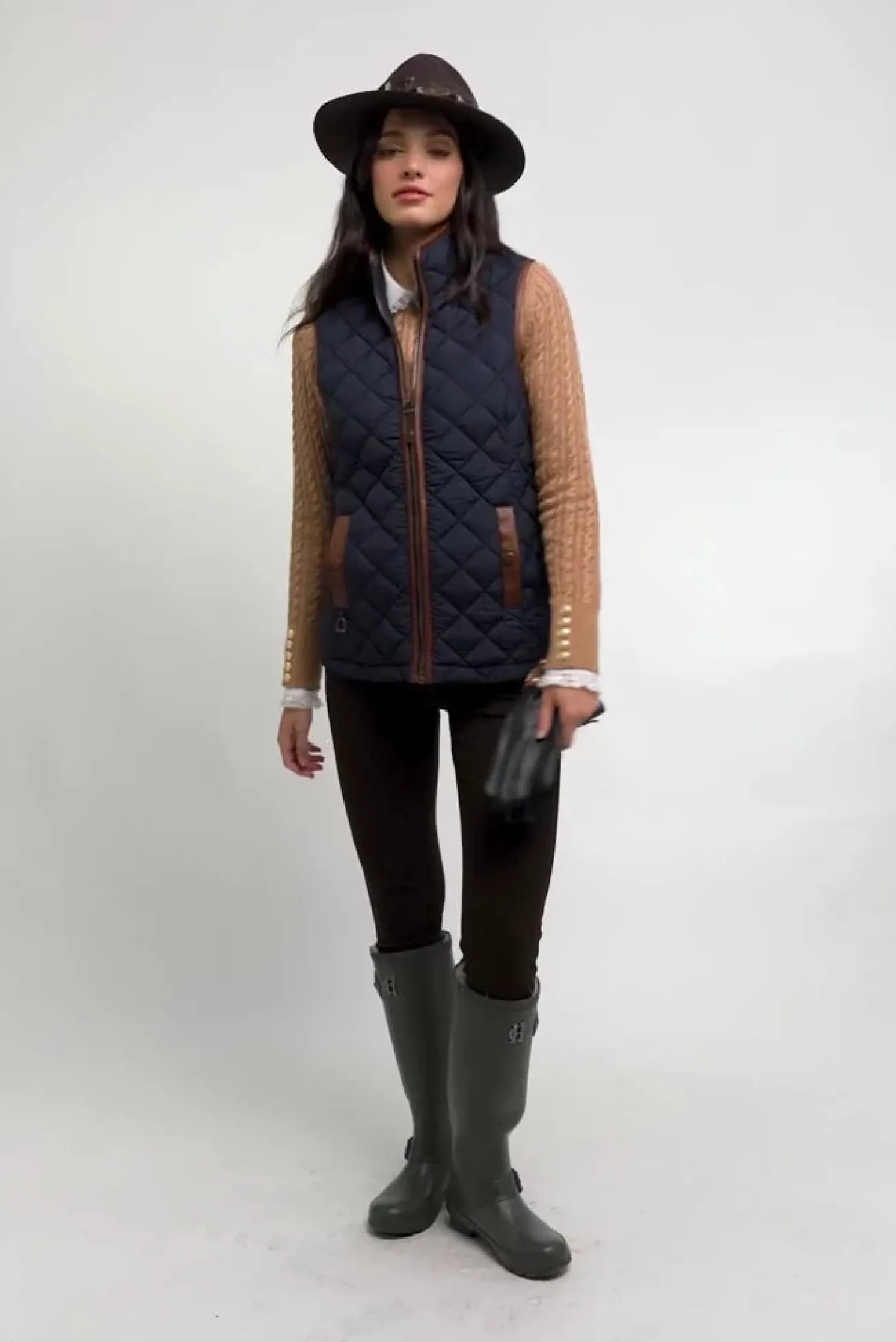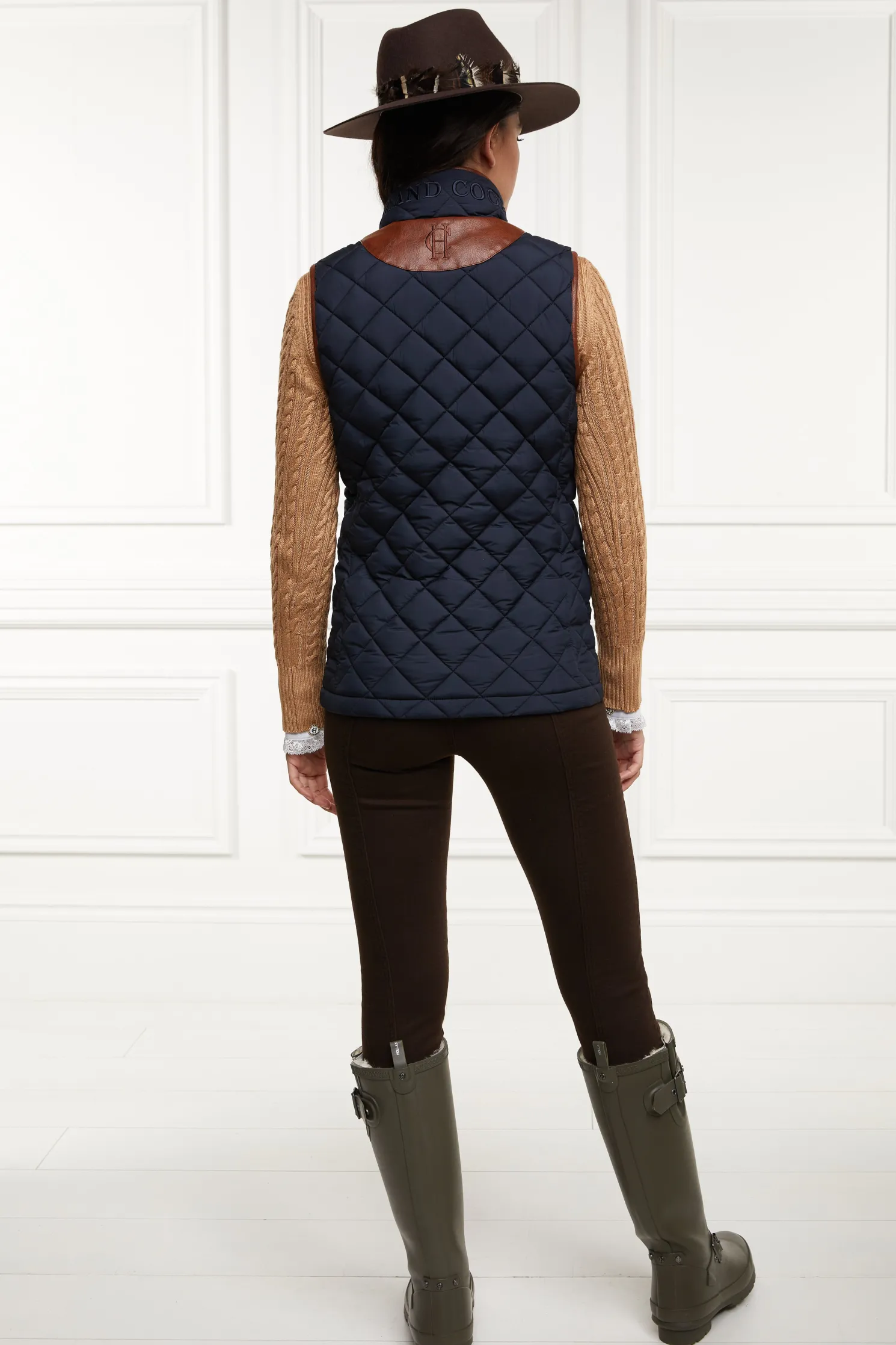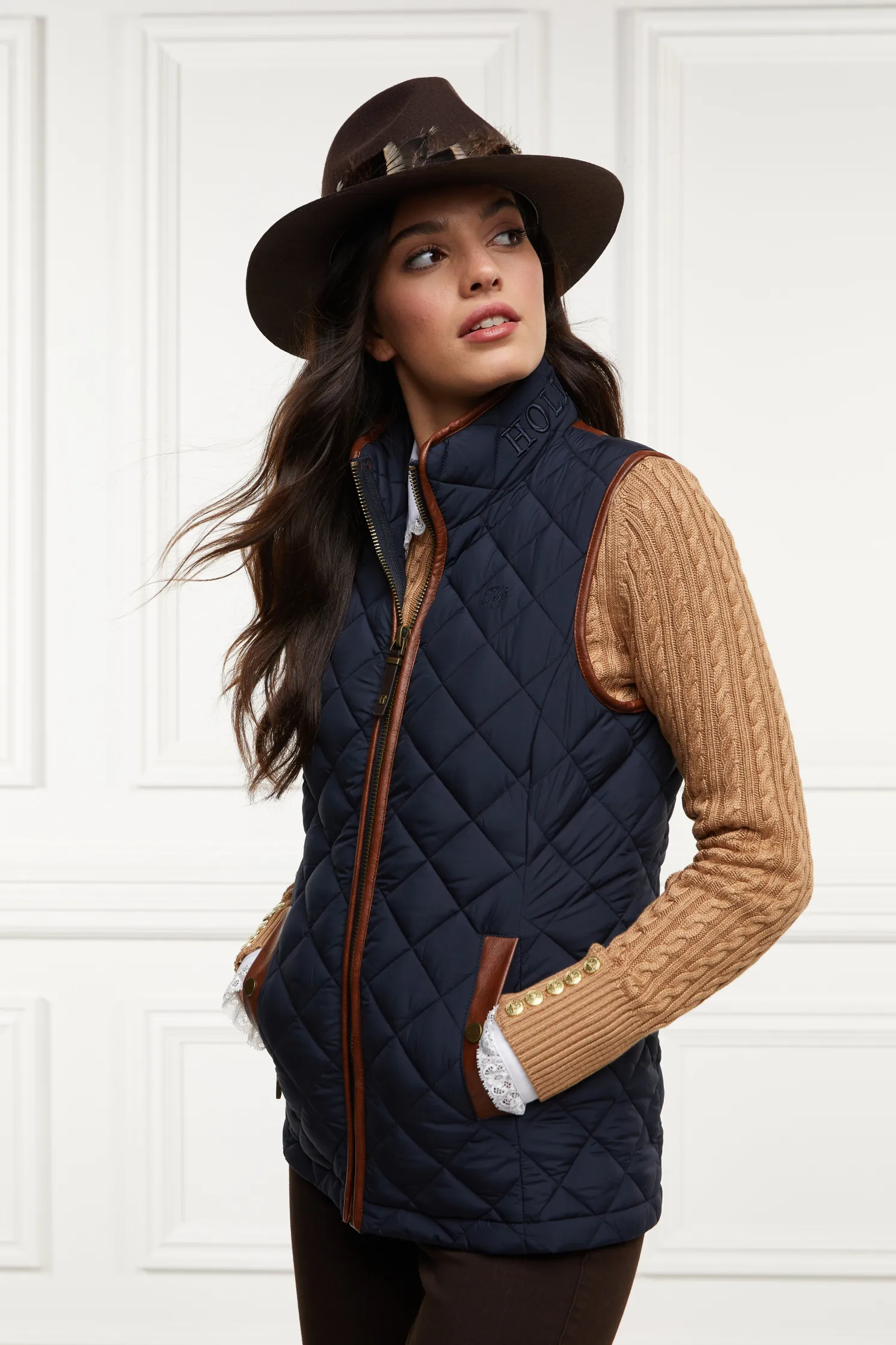Designed with a slim fit & shorter length, this gilet is ideal for layering. Created from a traditional quilted fabric with a lightweight & breathable fill. Curated with welt pockets to the front with a full zip closure, the faux leather piping adds to the country aesthetic of this piece. Finished with antique brass hardware and iconic Holland Cooper branding.