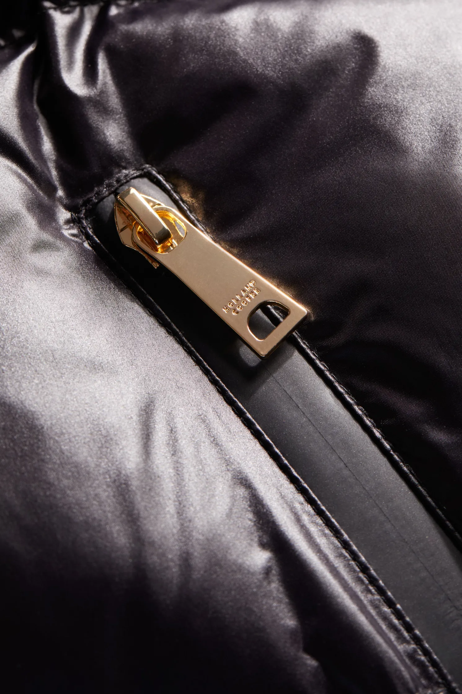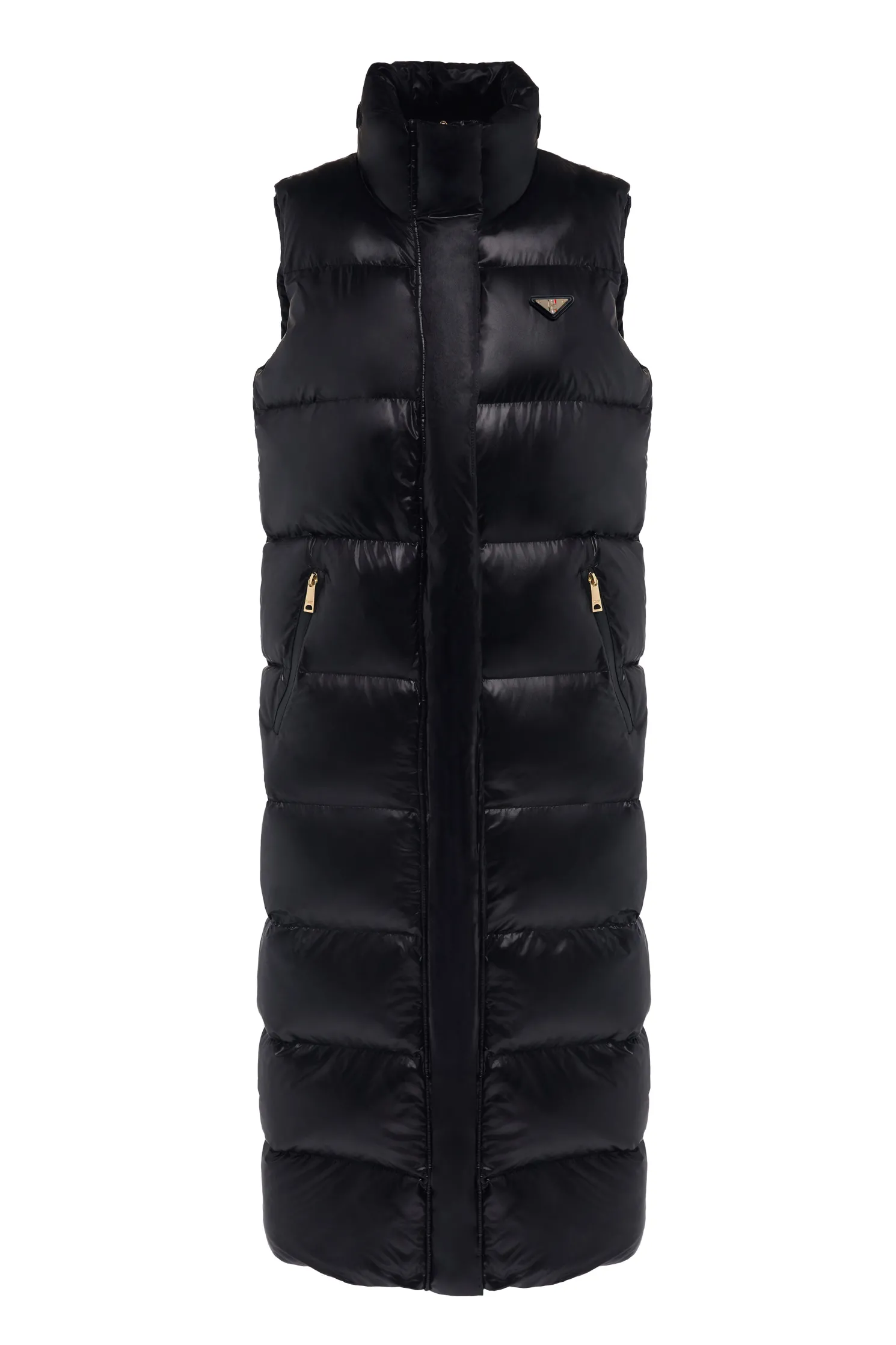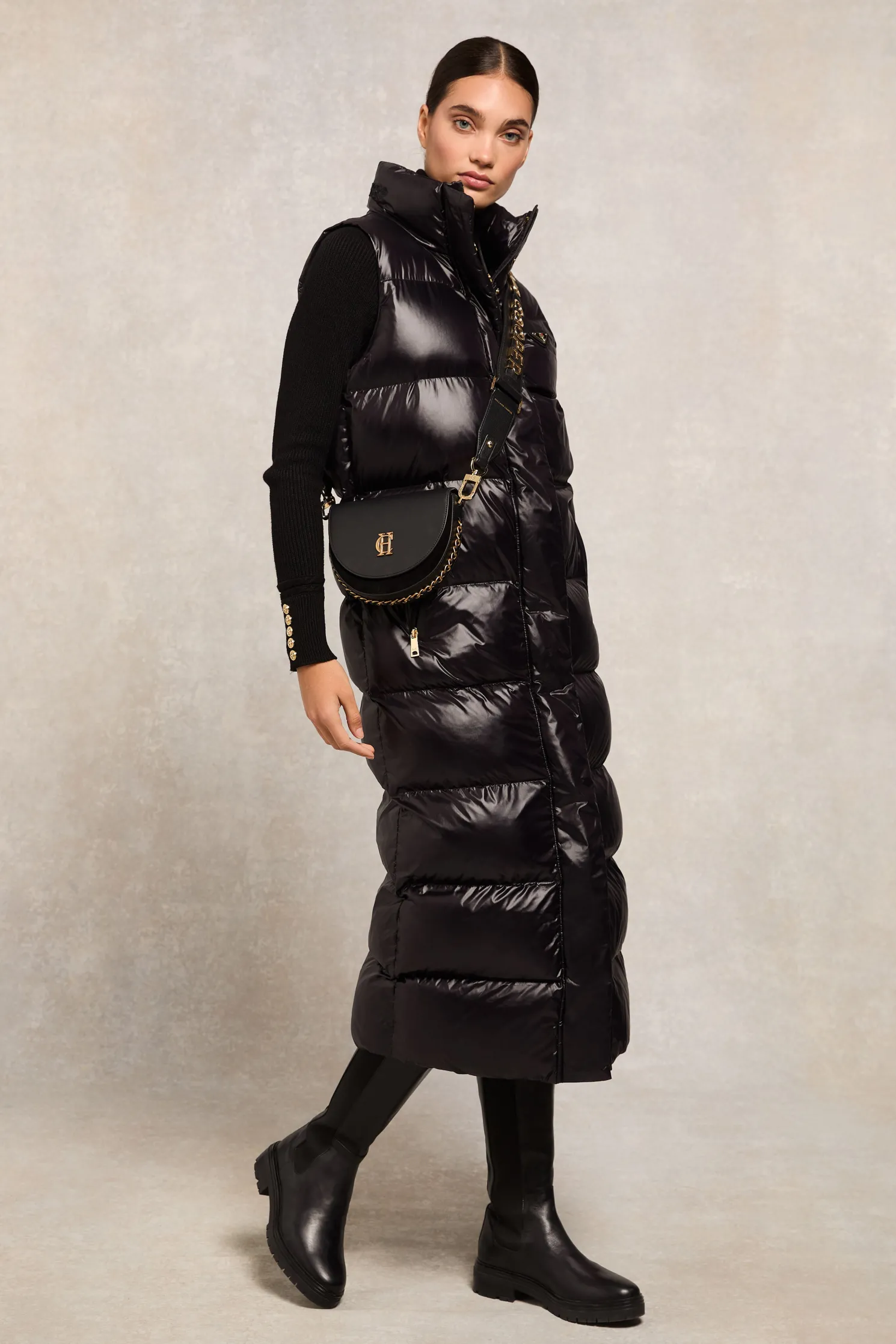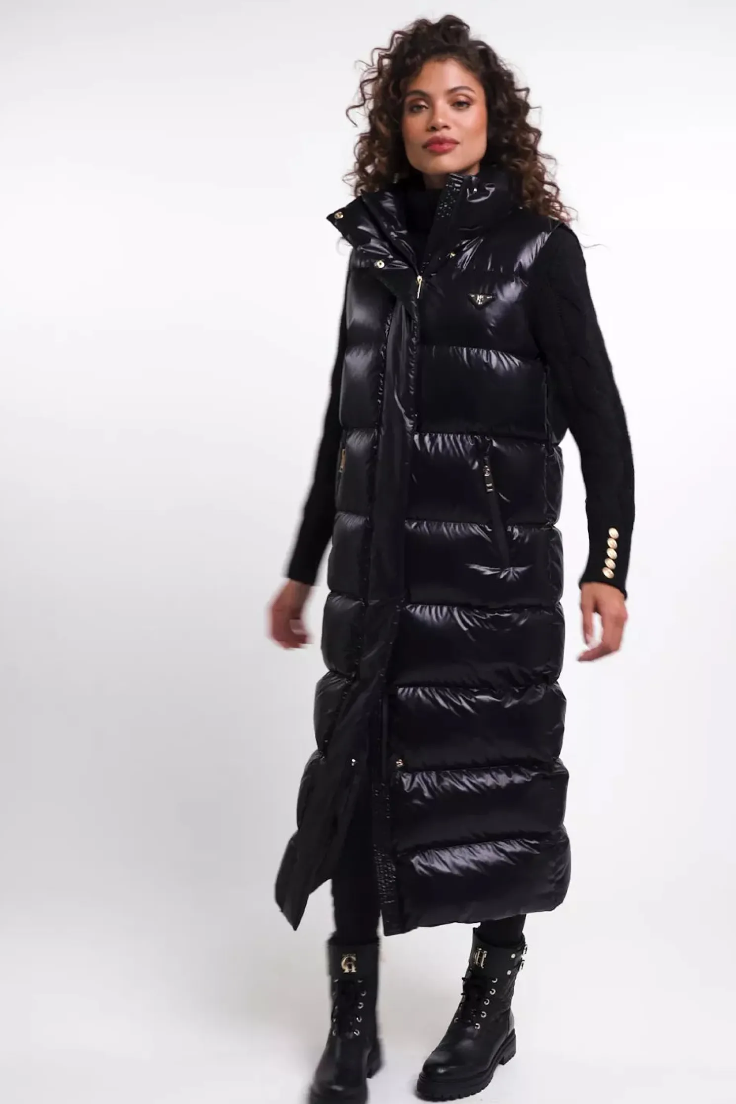 The Crawford Longline Gilet redefines contemporary outerwear with its sleek long length and padded design. Fitting narrowly at the shoulders and easing into a looser silhouette through the body and hips, it offers a versatile fit that balances between oversized and slim styles. Made from premium textured crinkle nylon with a contemporary square baffle detail, it’s generously filled with recycled polyester eco fill for warmth. Finished with matte black metal hardware and subtle pocketing, this gilet combines modern sophistication with eco-friendly materials