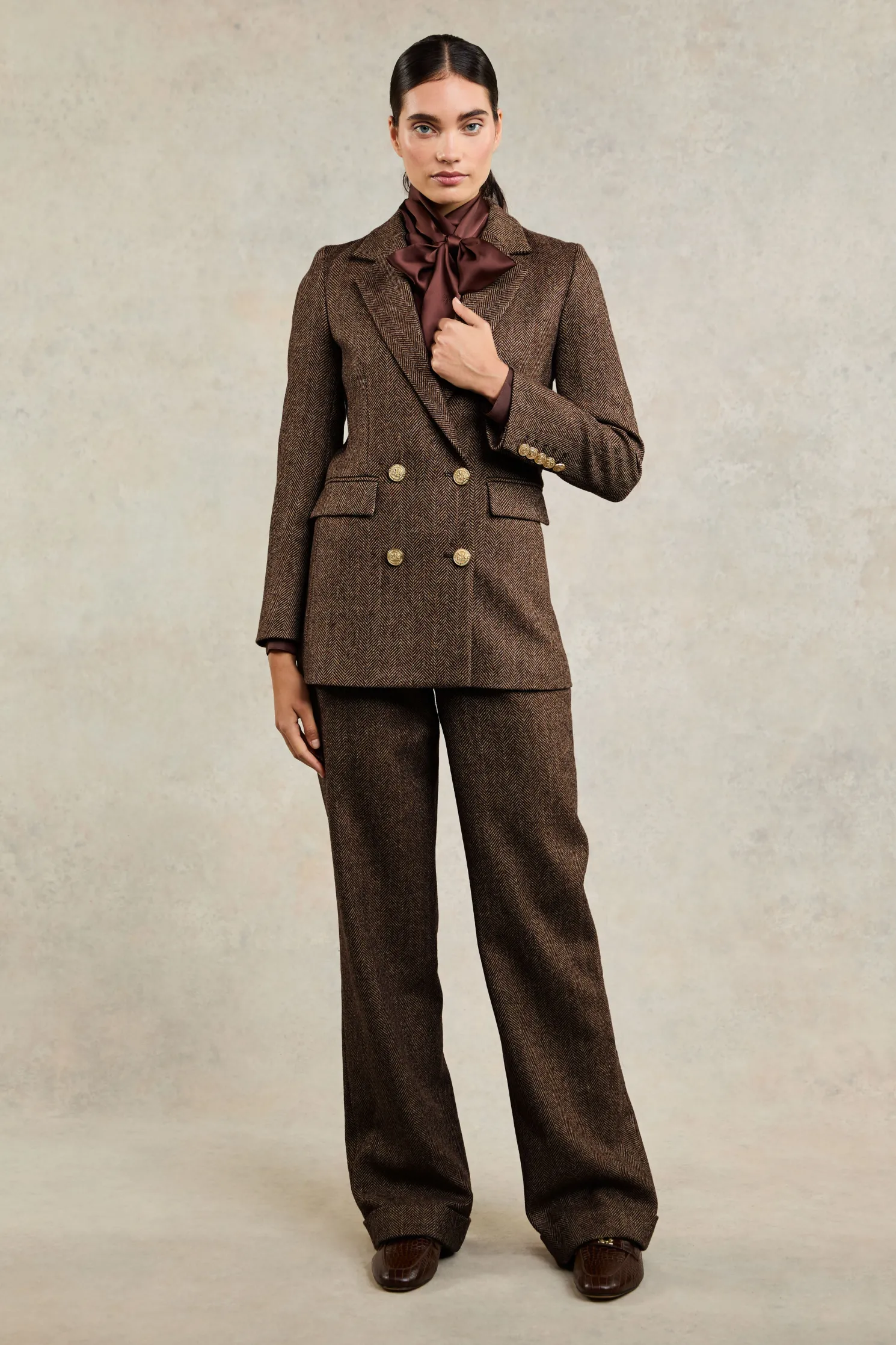 Designed to create a sharp tailored silhouette worn open or closed, the Double Breasted wool Blazer has been handmade in the UK. Crafted from a classic and contemporary pinstripe fabric & fully lined with a luxury stretch lining for extra comfort, this piece is a must-have staple for your wardrobe. With bold lapels & subtle hip pockets, each blazer has been elevated with HC signature gold hardware to the front and cuffs.