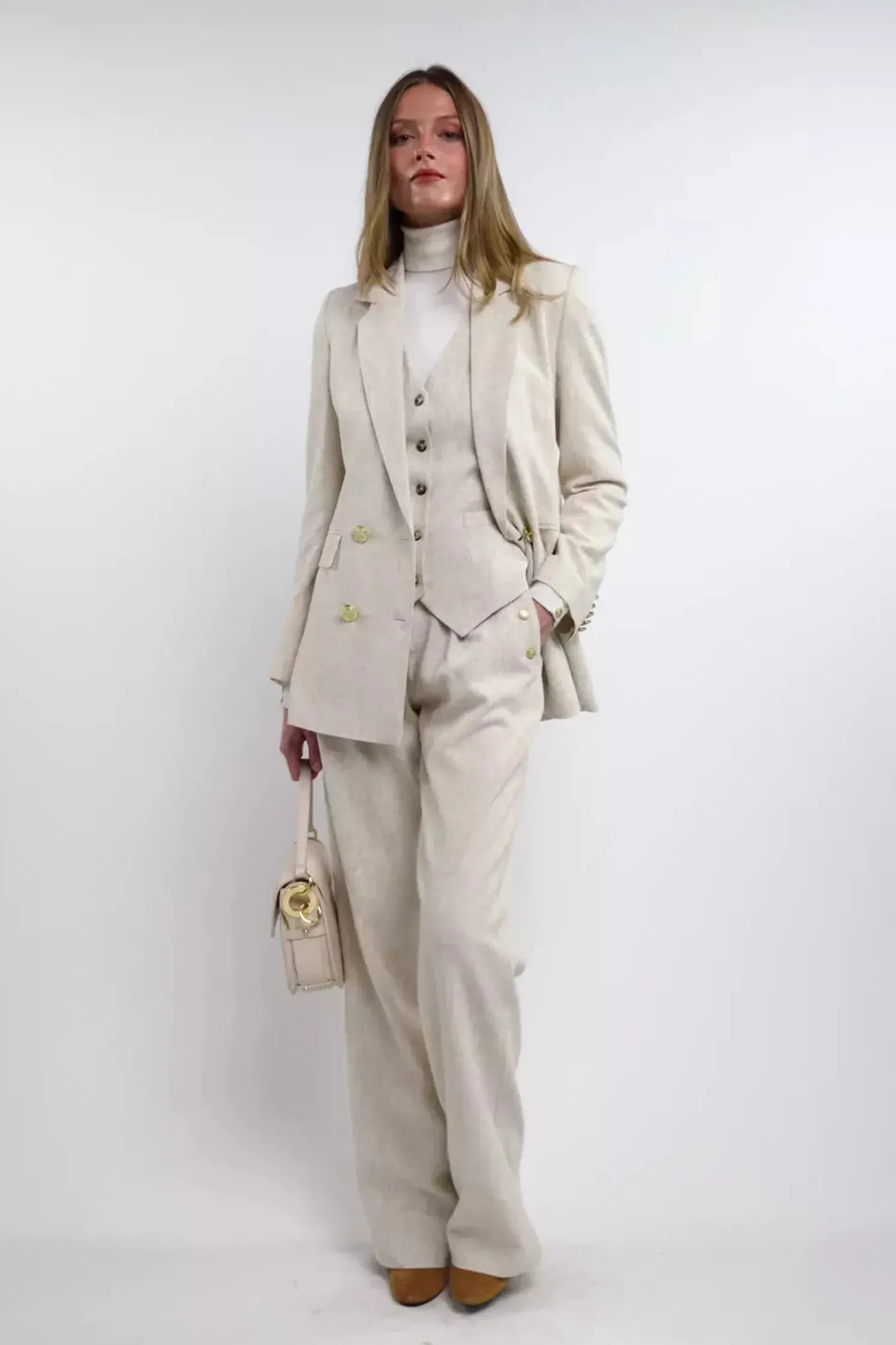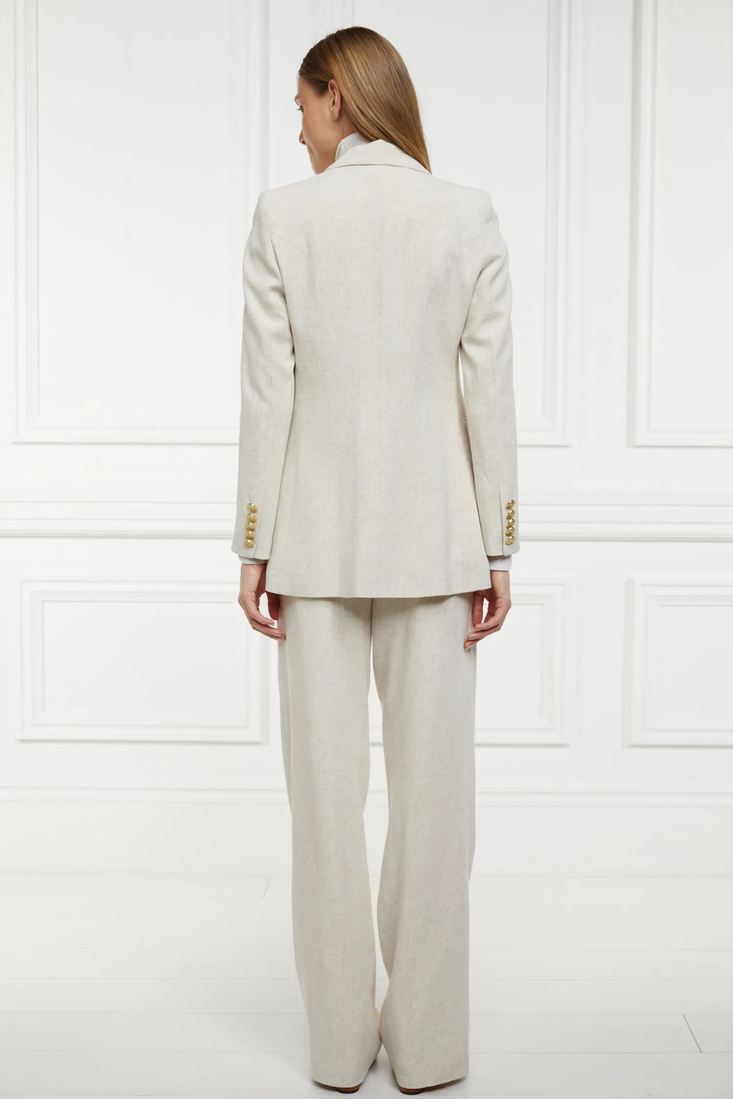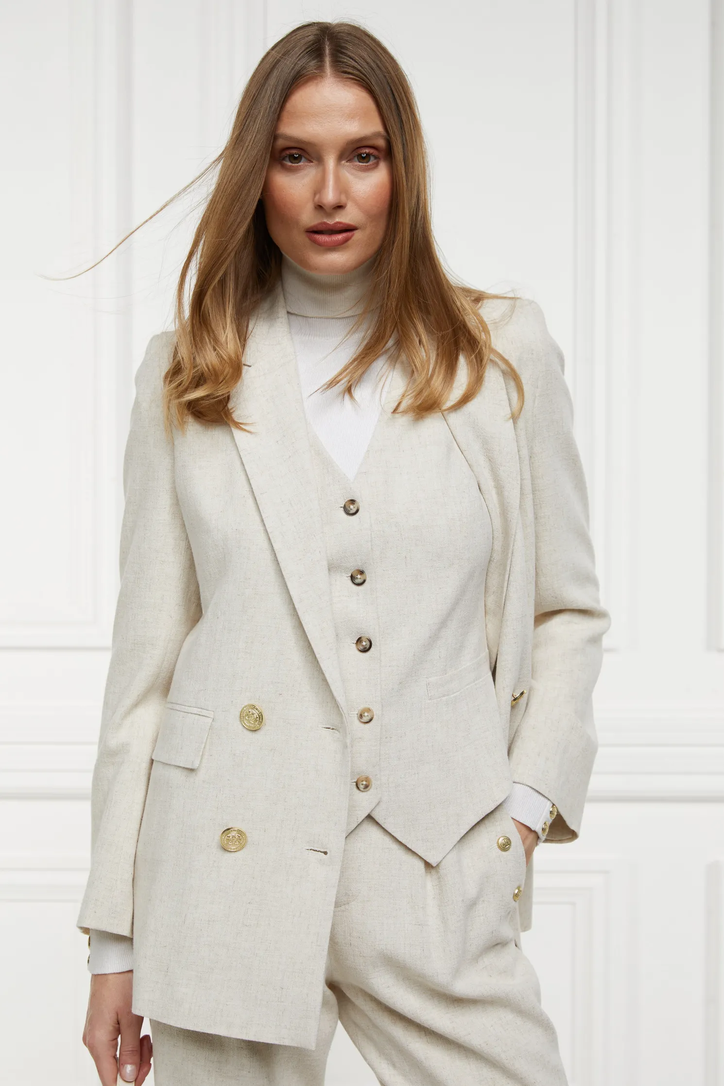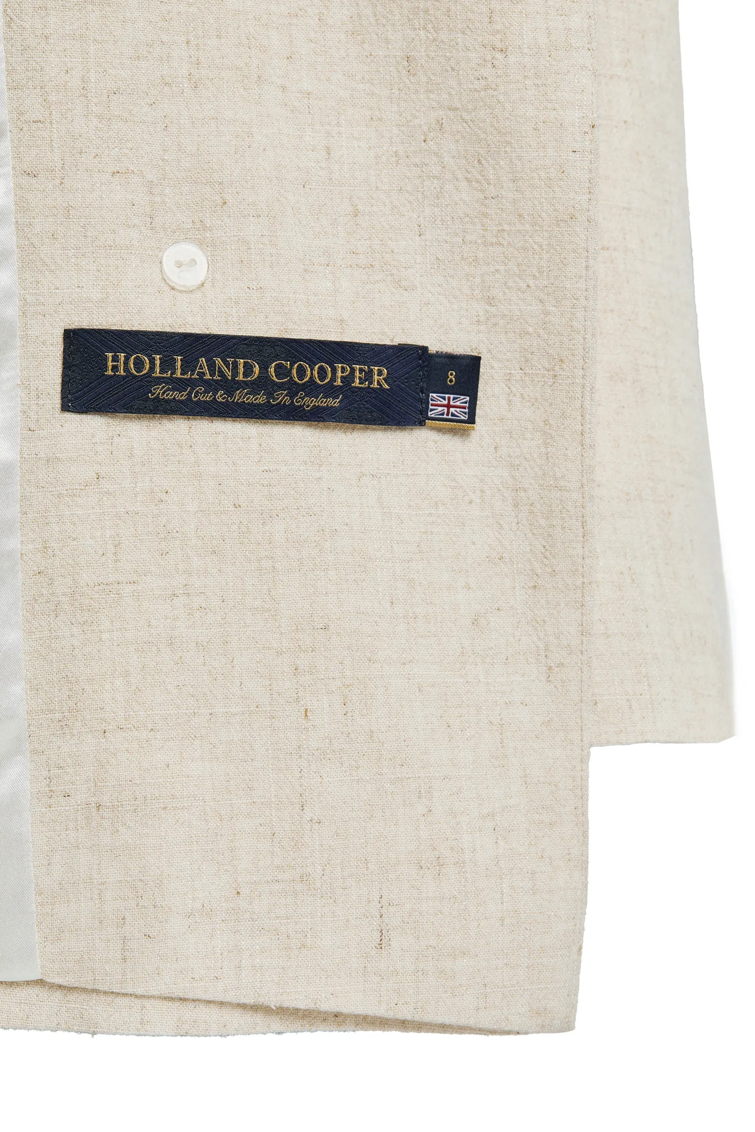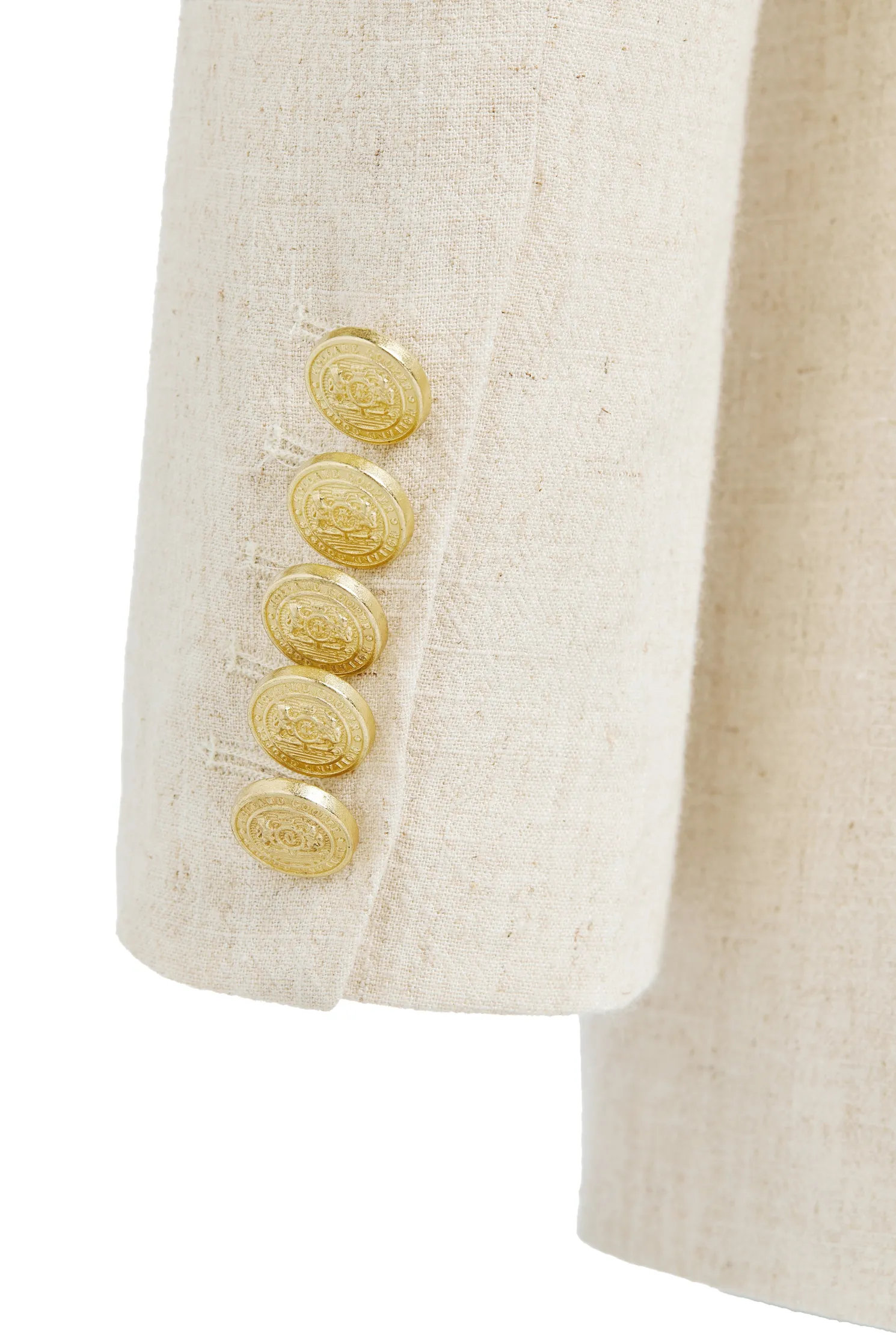 Designed to create a sharp tailored silhouette worn open or closed, the Double Breasted Linen Blazer has been handmade in the UK. Crafted from a lightweight and breathable performance linen blend & fully lined with a luxury stretch lining for extra comfort, this piece is a must-have for your summer wardrobe. Elevated with HC signature gold hardware to the front and cuffs. Wear yours with jeans or pair with our matching Tailored Shorts.