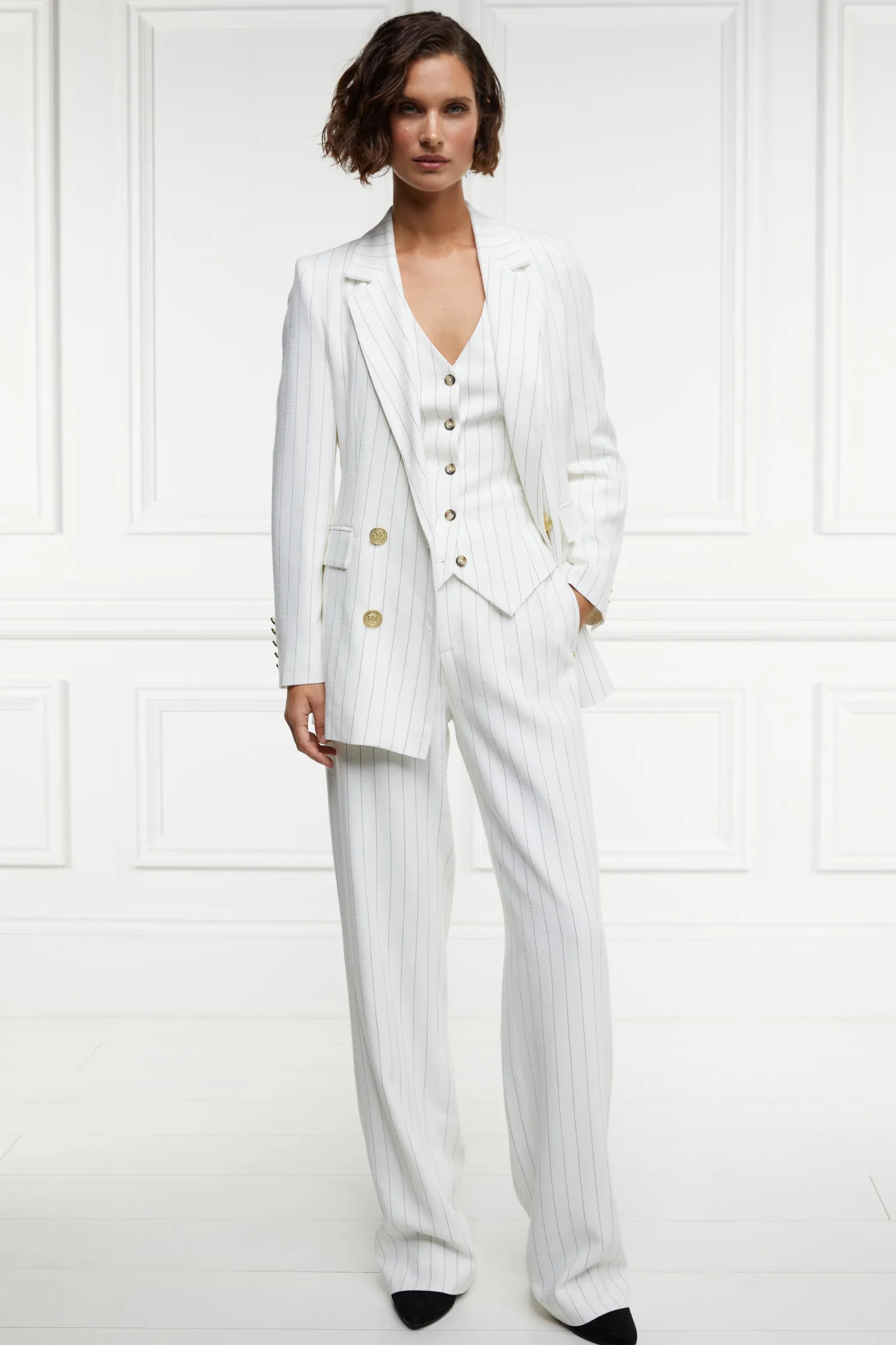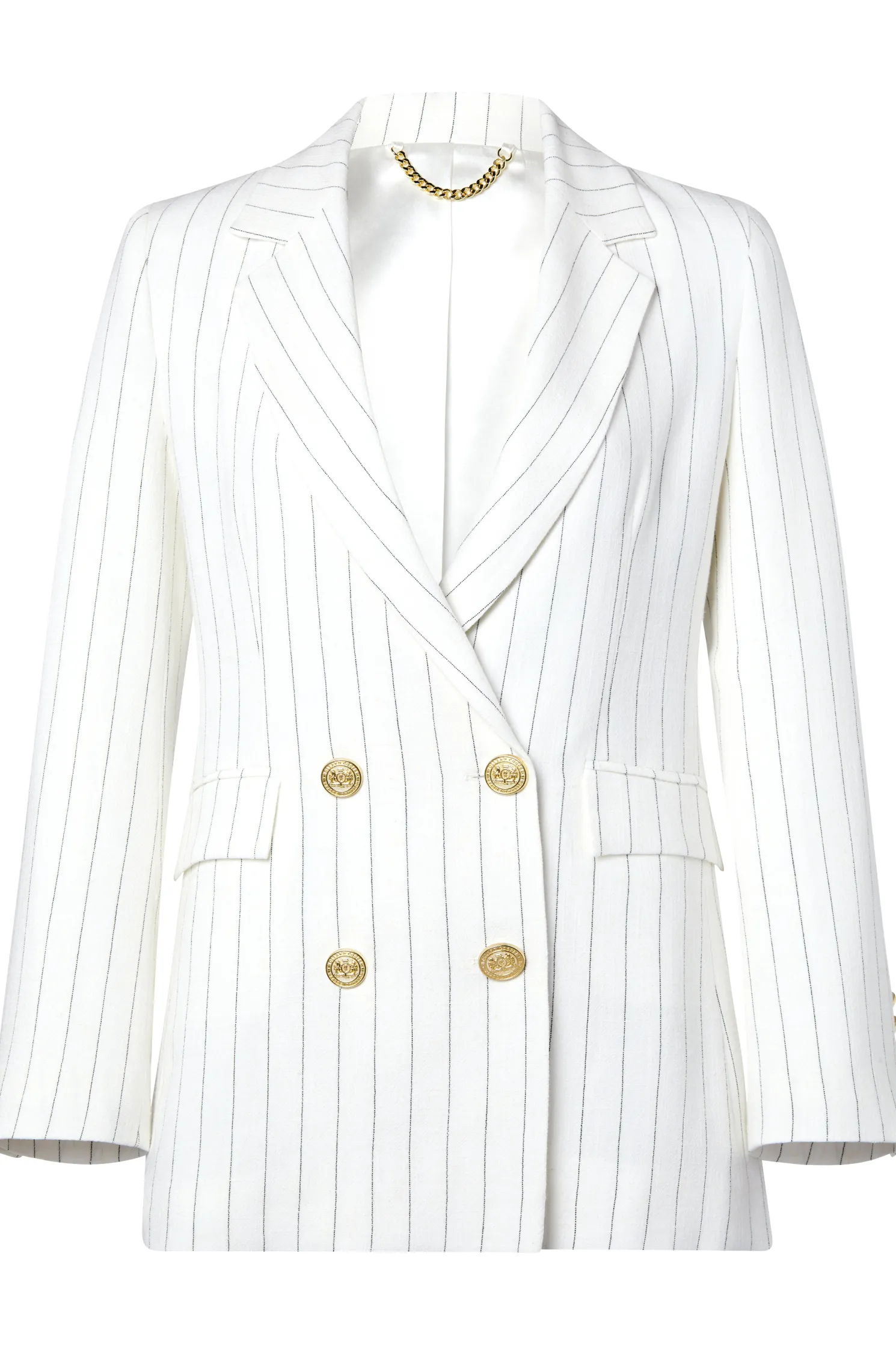 Designed to create a sharp tailored silhouette worn open or closed, the Double Breasted Linen Blazer has been handmade in the UK. Crafted from a crease-resistant, lightweight and breathable linen blend & fully lined with a luxury stretch lining for extra comfort, this piece is a must-have for your summer wardrobe. Elevated with our signature gold hardware to the front and cuffs.