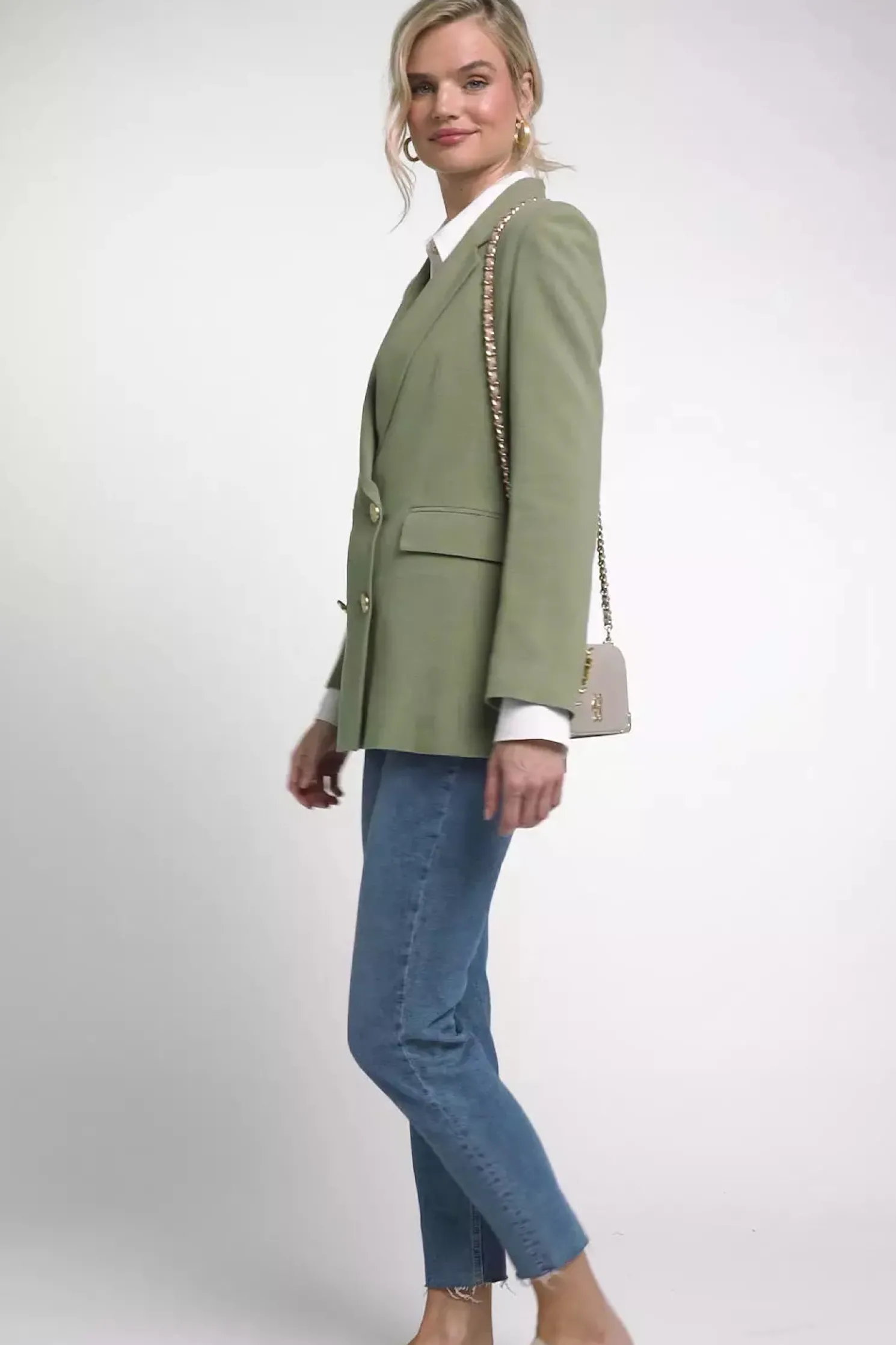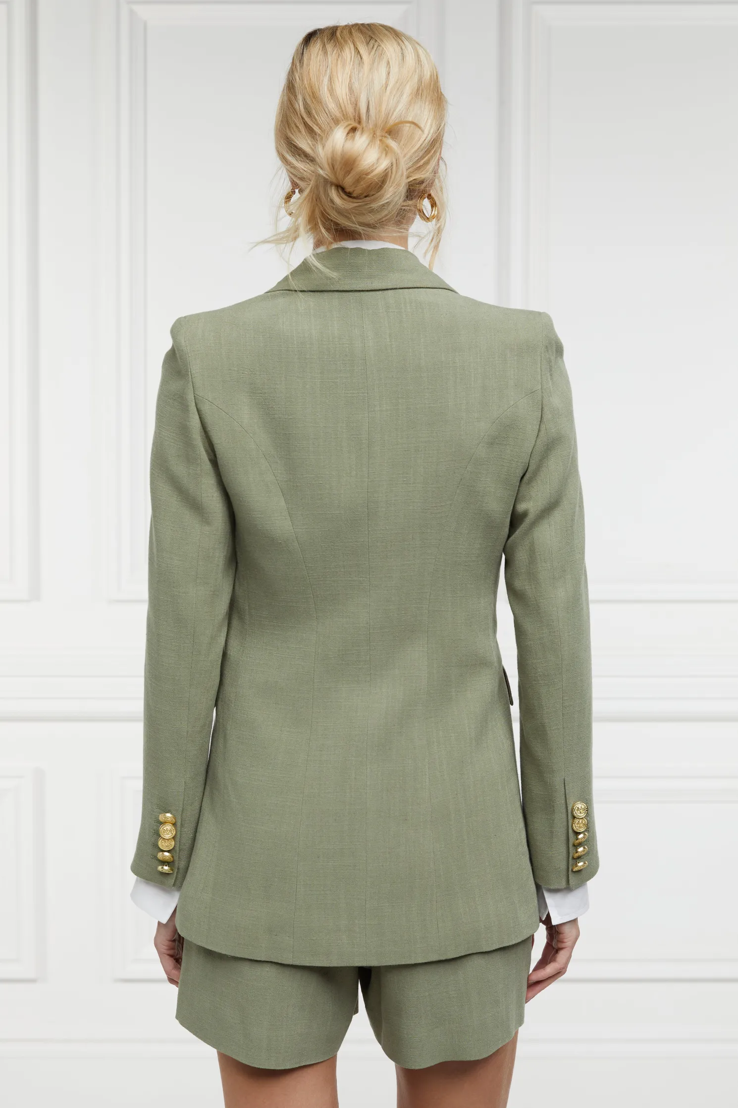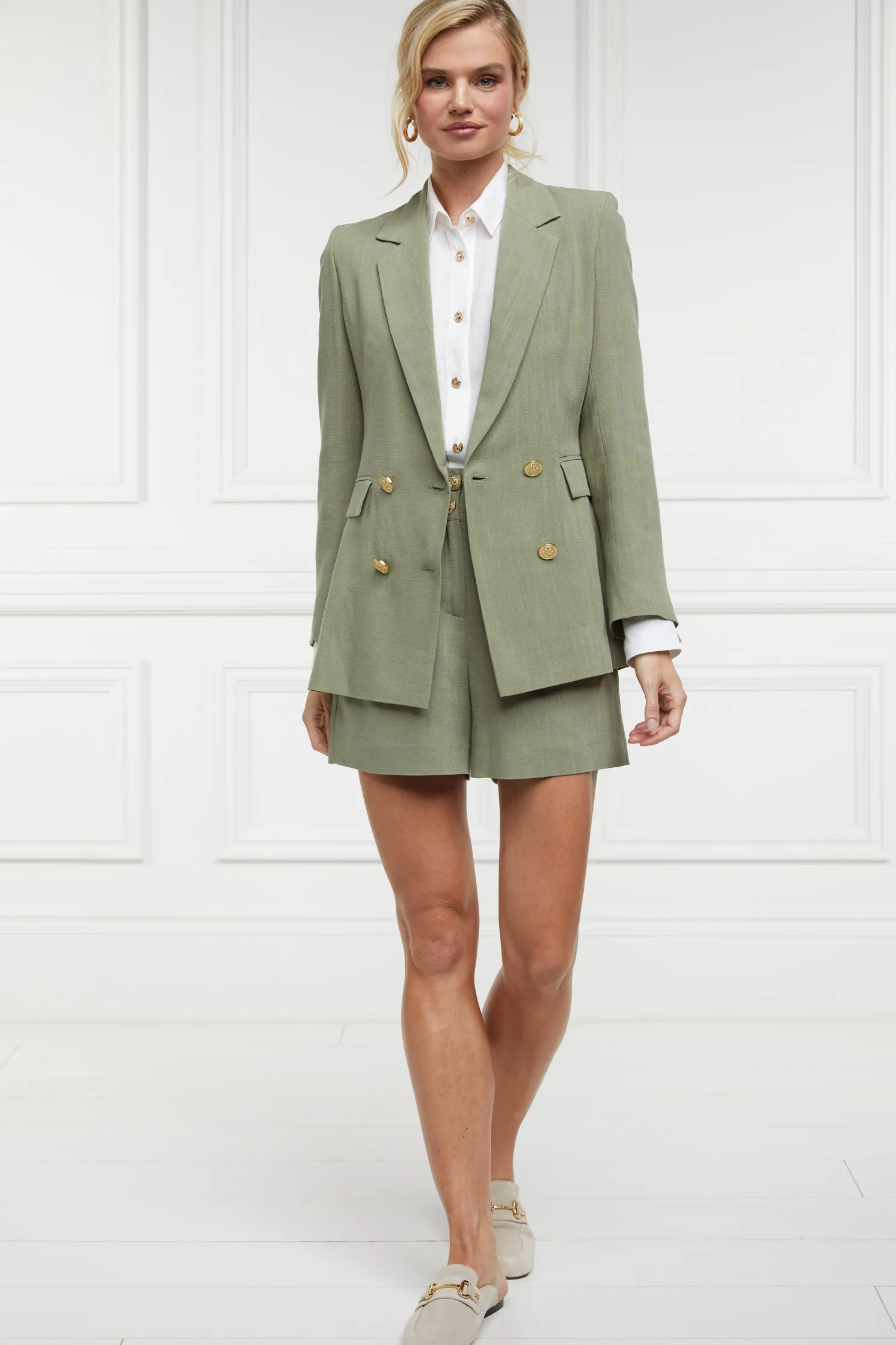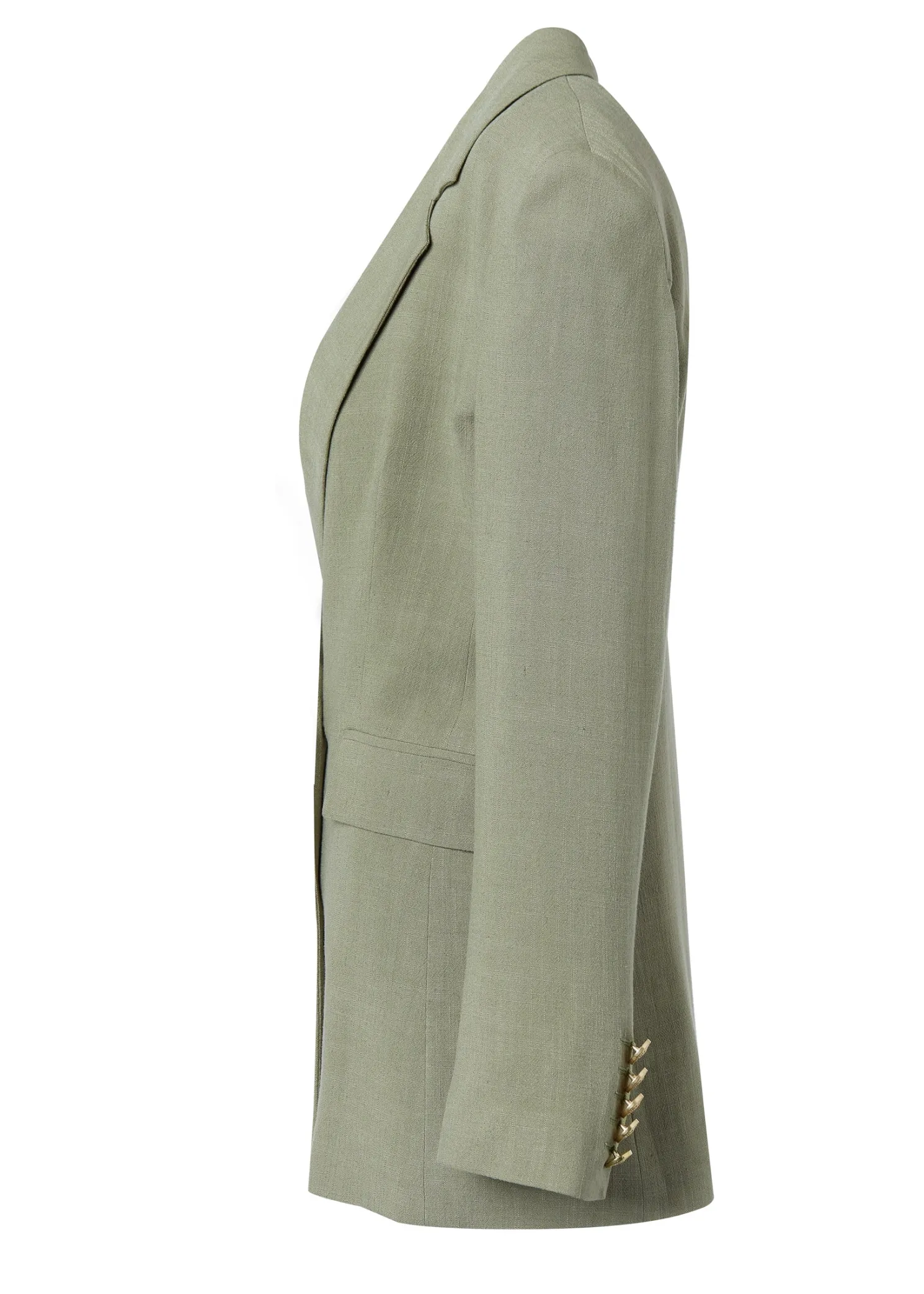 Designed to create a sharp tailored silhouette worn open or closed, the Double Breasted Linen Blazer has been handmade in the UK. Crafted from a crease-resistant, lightweight and breathable linen blend & fully lined with a luxury stretch lining for extra comfort, this piece is a must-have for your summer wardrobe. Elevated with our signature gold hardware to the front and cuffs, the elegant colour makes for a feminine and contemporary statement. Wear yours with jeans or pair with our matching Tailored Shorts.