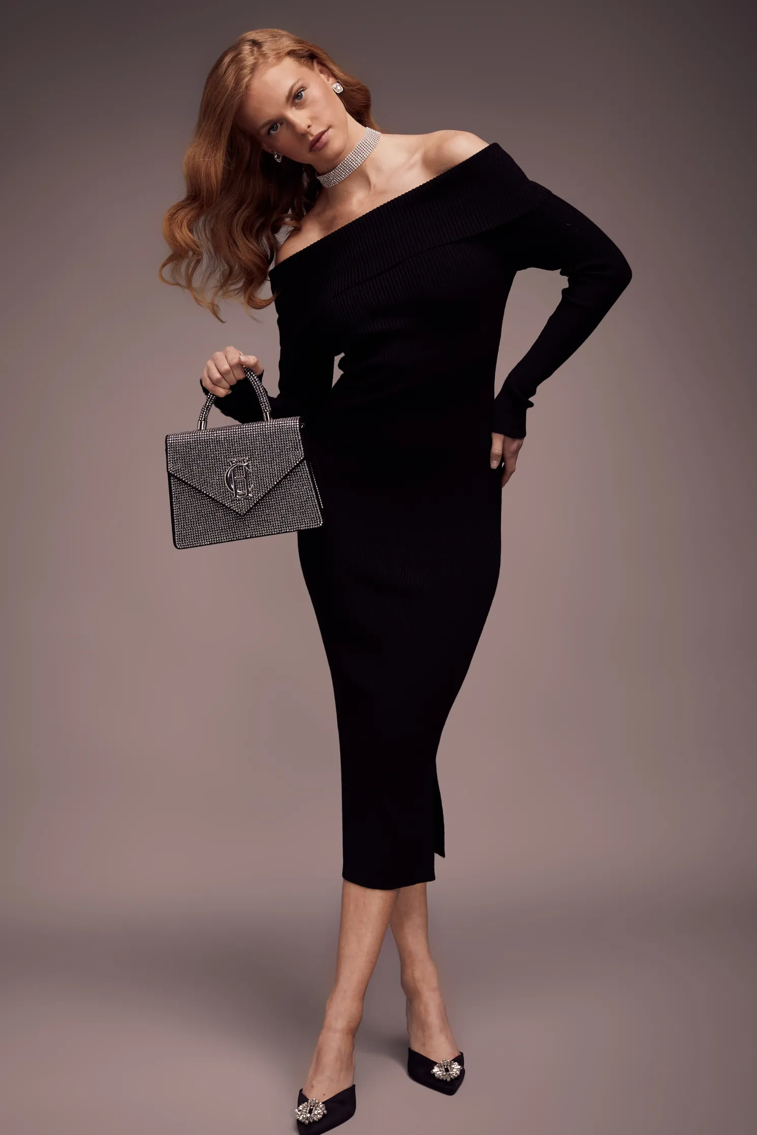Feminine, elegant & bold, this piece has been beautifully designed with diamanté rhinestones to create a statement accessory. Designed with an envelope closure with branded top handle and crossbody chain, this piece is ideal for elevating an evening look. Detailed with internal card slots, a zip pocket & foiled lining. Finished with a bold HC logo to the centre front.