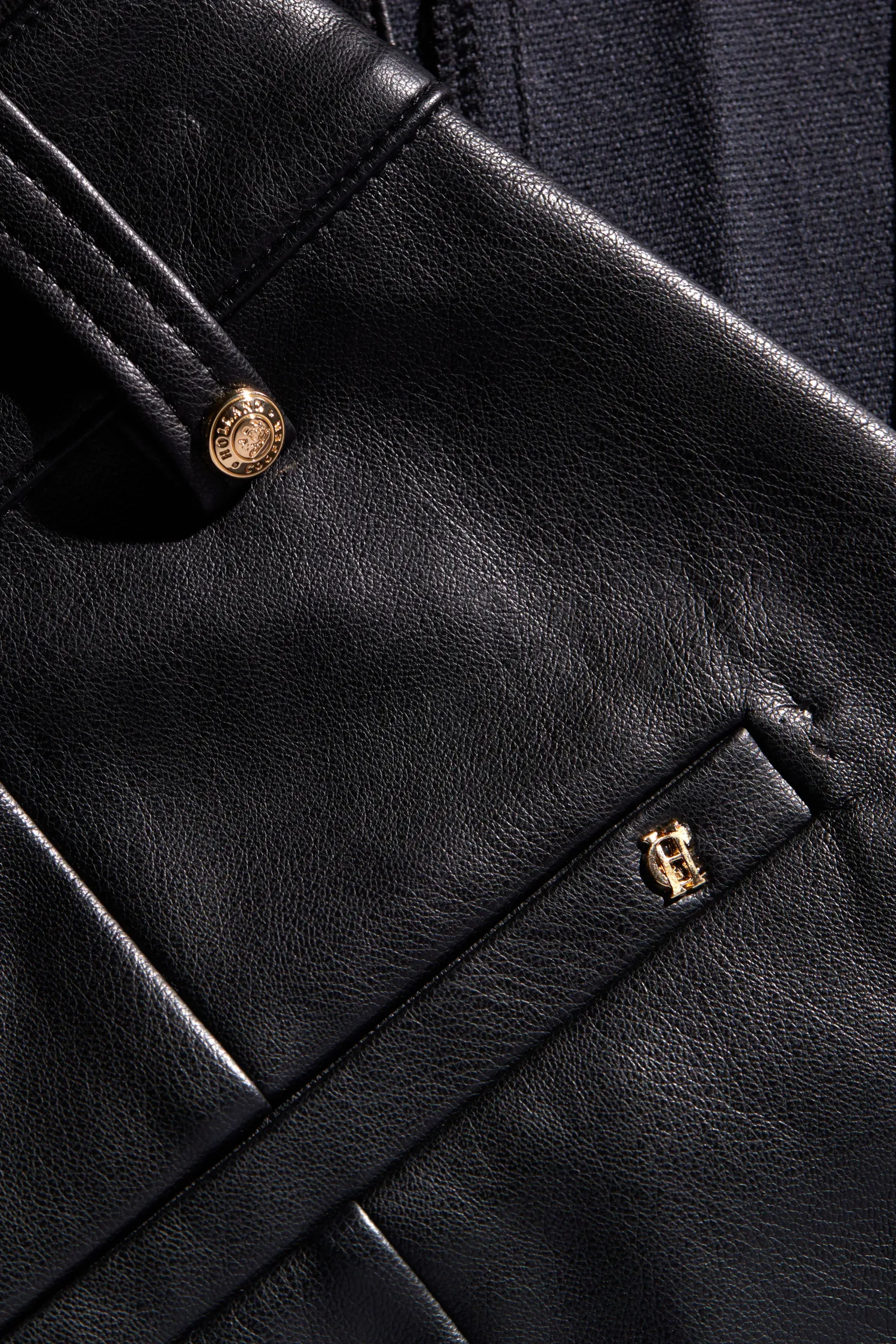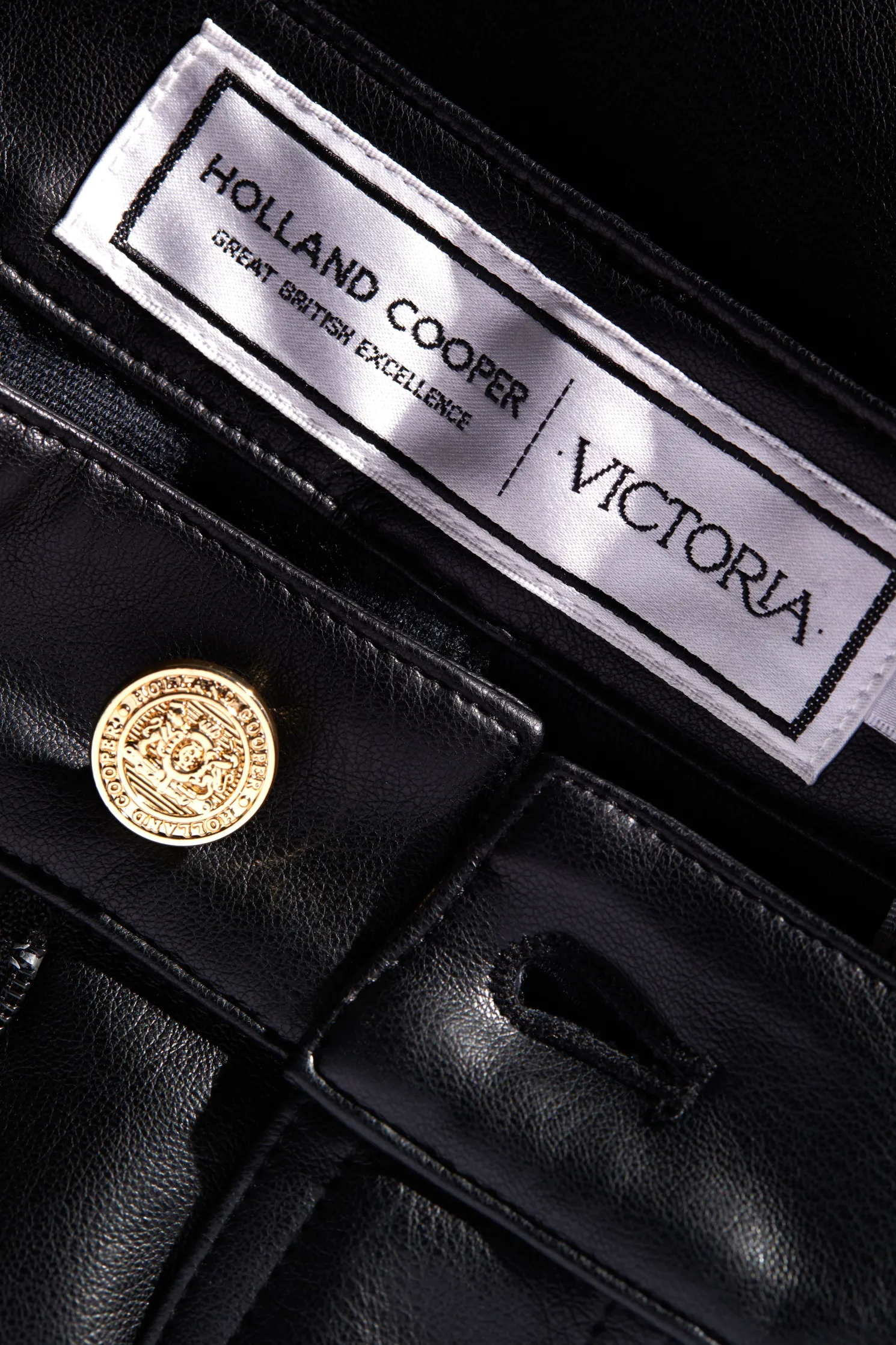 Elevate your style with our Maxi skirt, meticulously crafted from beautiful soft animal-friendly faux leather fabric. Designed for a high-rise fit at the waist, this skirt offers a slim line through the hips and legs, ensuring a flattering silhouette. The comfortable stretch fabric allows for ease of movement, while the open-vented front adds a touch of modern flair. Featuring five-pocket styling and our signature gold metal hardware, this skirt combines practicality with style. Finished at knee length, it is the perfect piece for adding a chic, contemporary edge to any outfit.