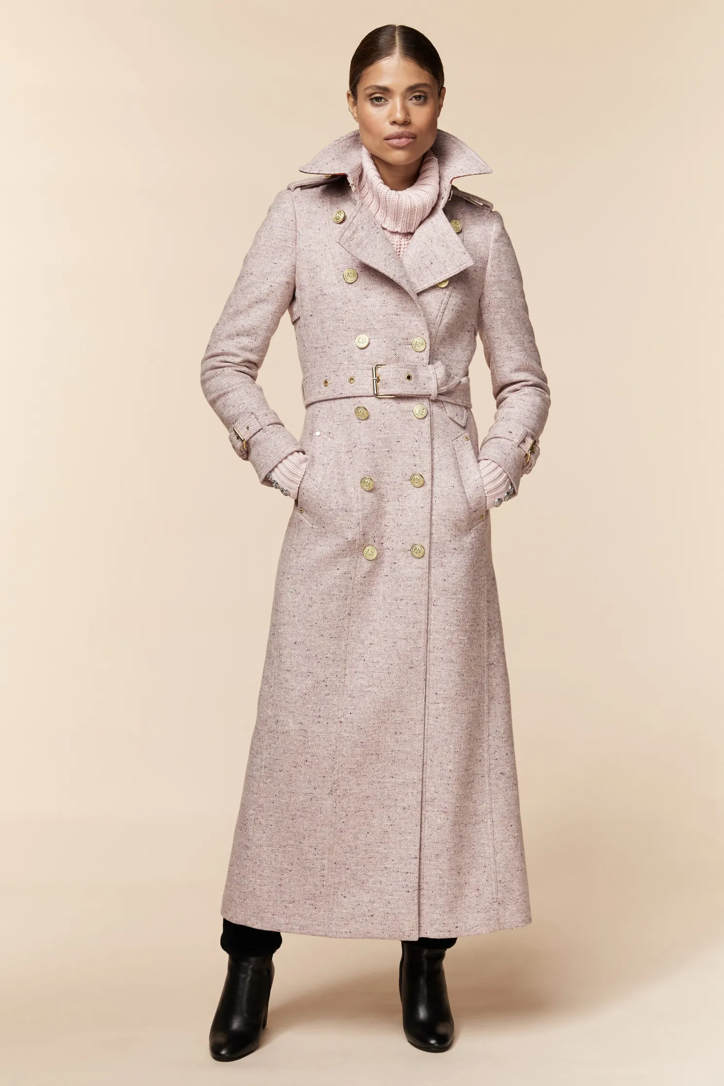 Classic and timeless, the Marlborough full length trench coat is a wardrobe staple and a lifetime investment. A fitted design that complements any figure, its double breasted-front and belted waist adds to the flattering definition that stands at the forefront of its design.