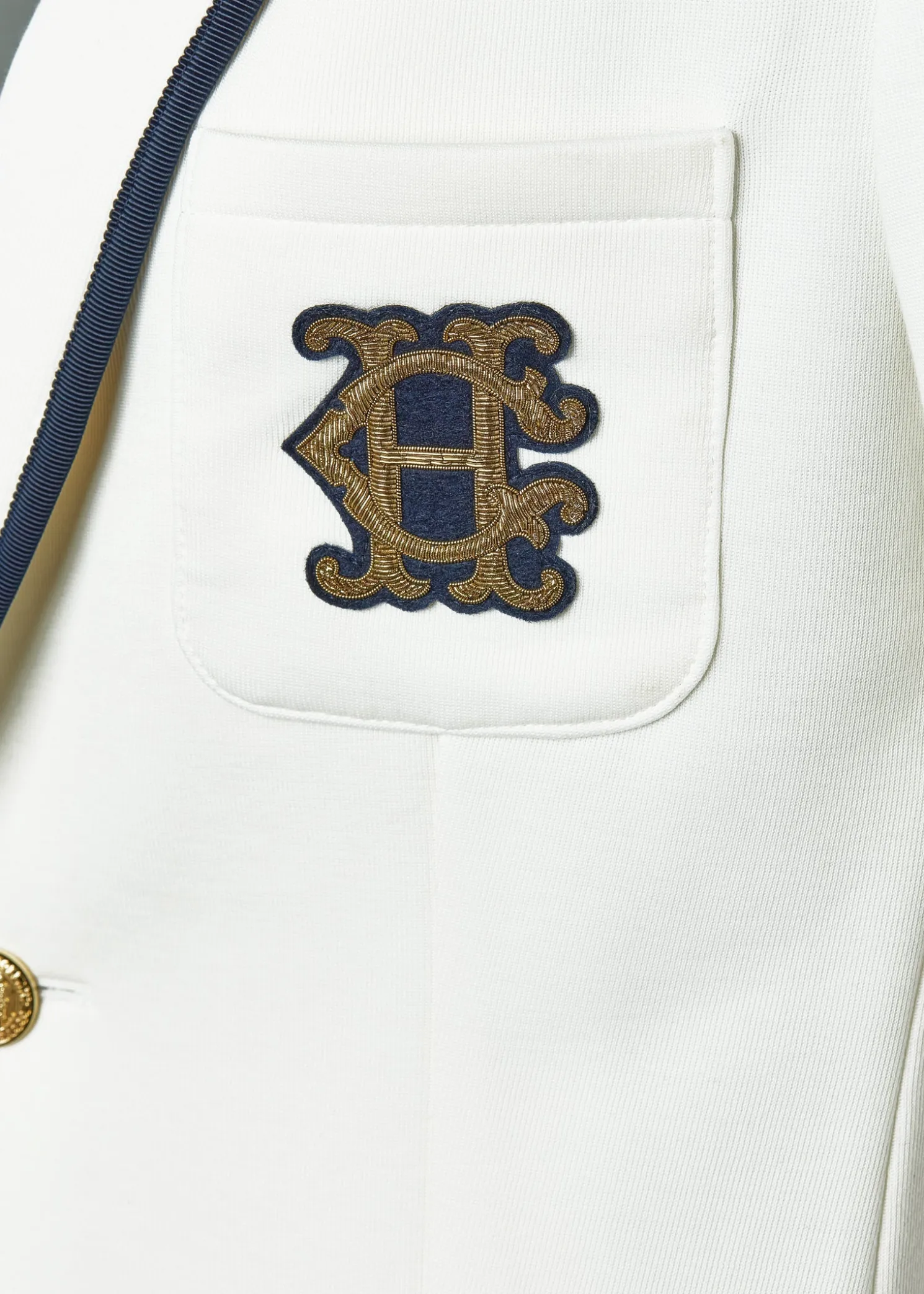 Designed with a tailored silhouette, the Henley Blazer has been designed with an elegantly slim fit and vintage-inspired aesthetic. Created from a heavyweight knitted shell fabric, this blazer has been beautifully characterised by our iconic handmade HC badge on the chest pocket. With an elegant two-button closure, the traditional piping adds a preppy and chic touch. Detailed with patch pockets and buttoned cuffs.
