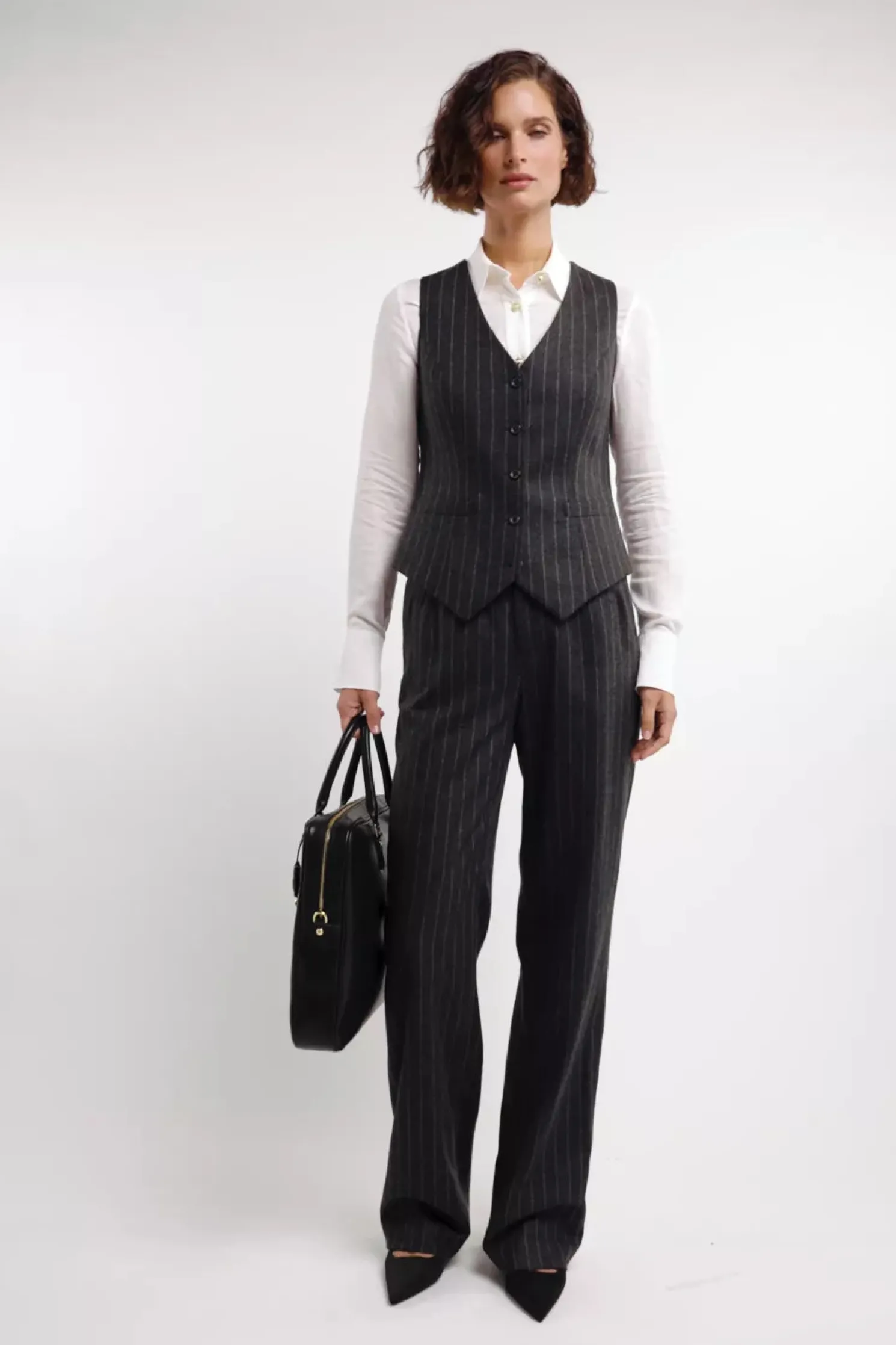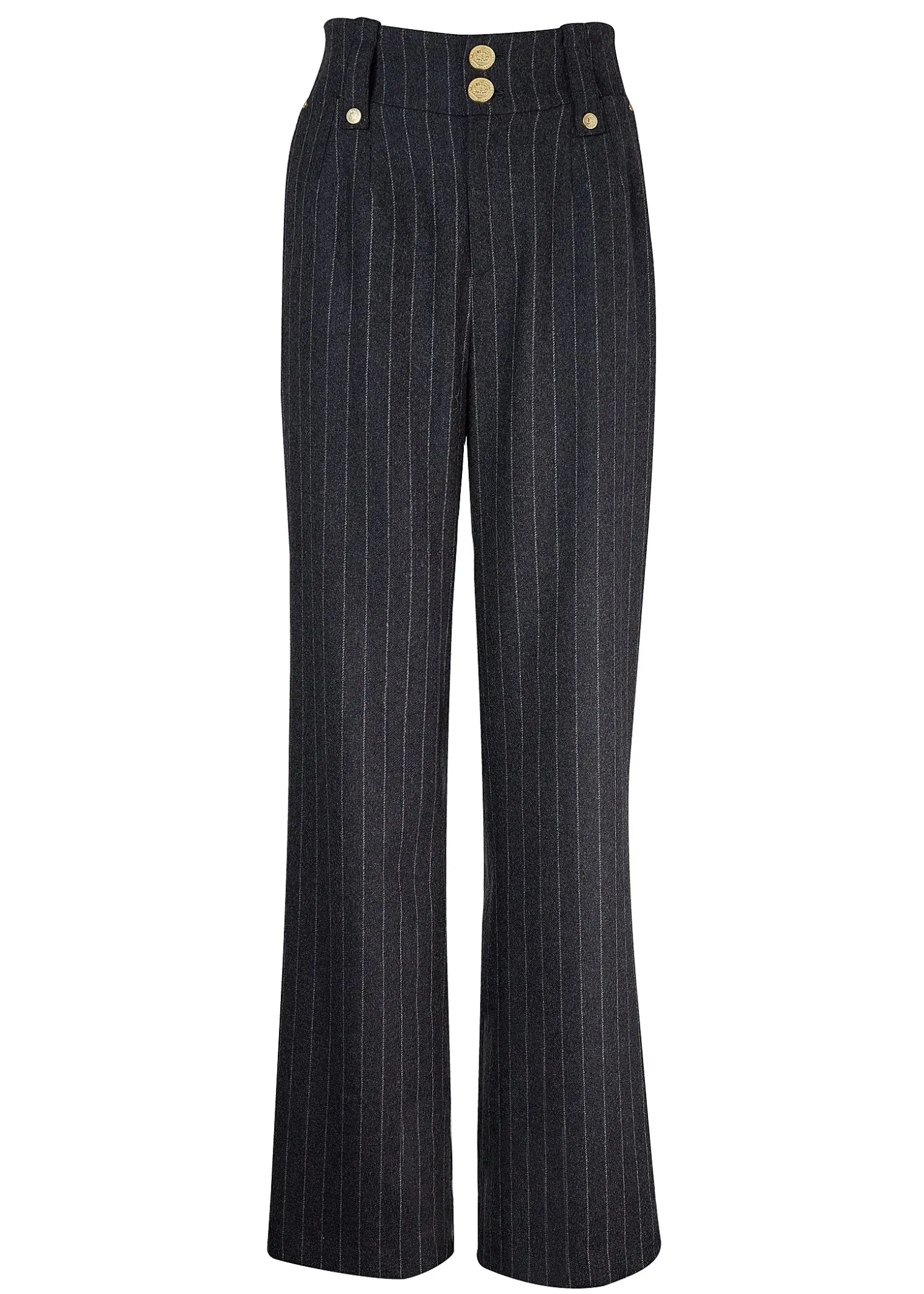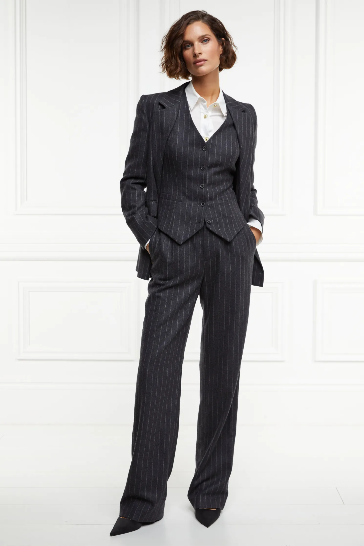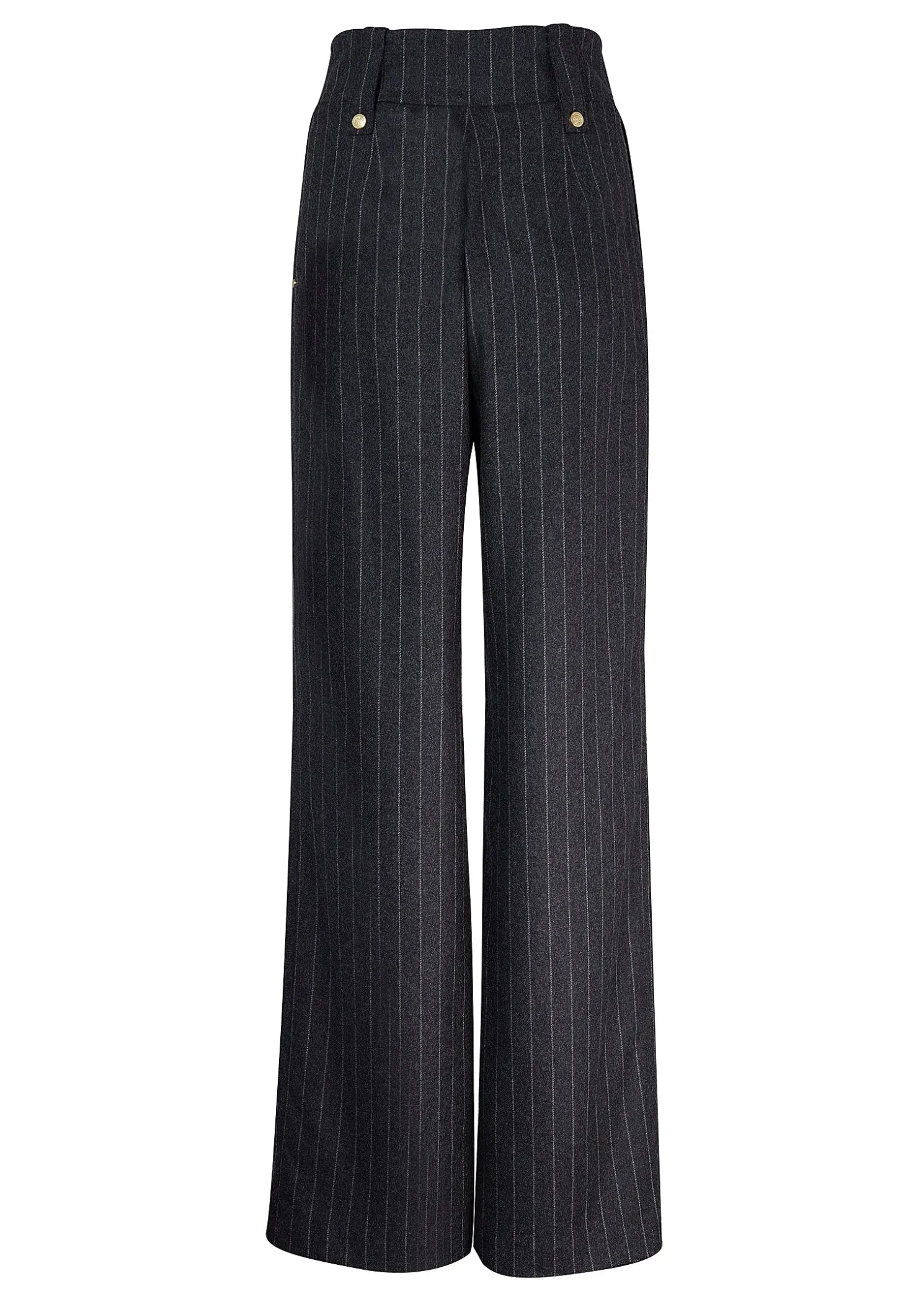 High Waisted Straight Trouser (Charcoal Pinstripe)