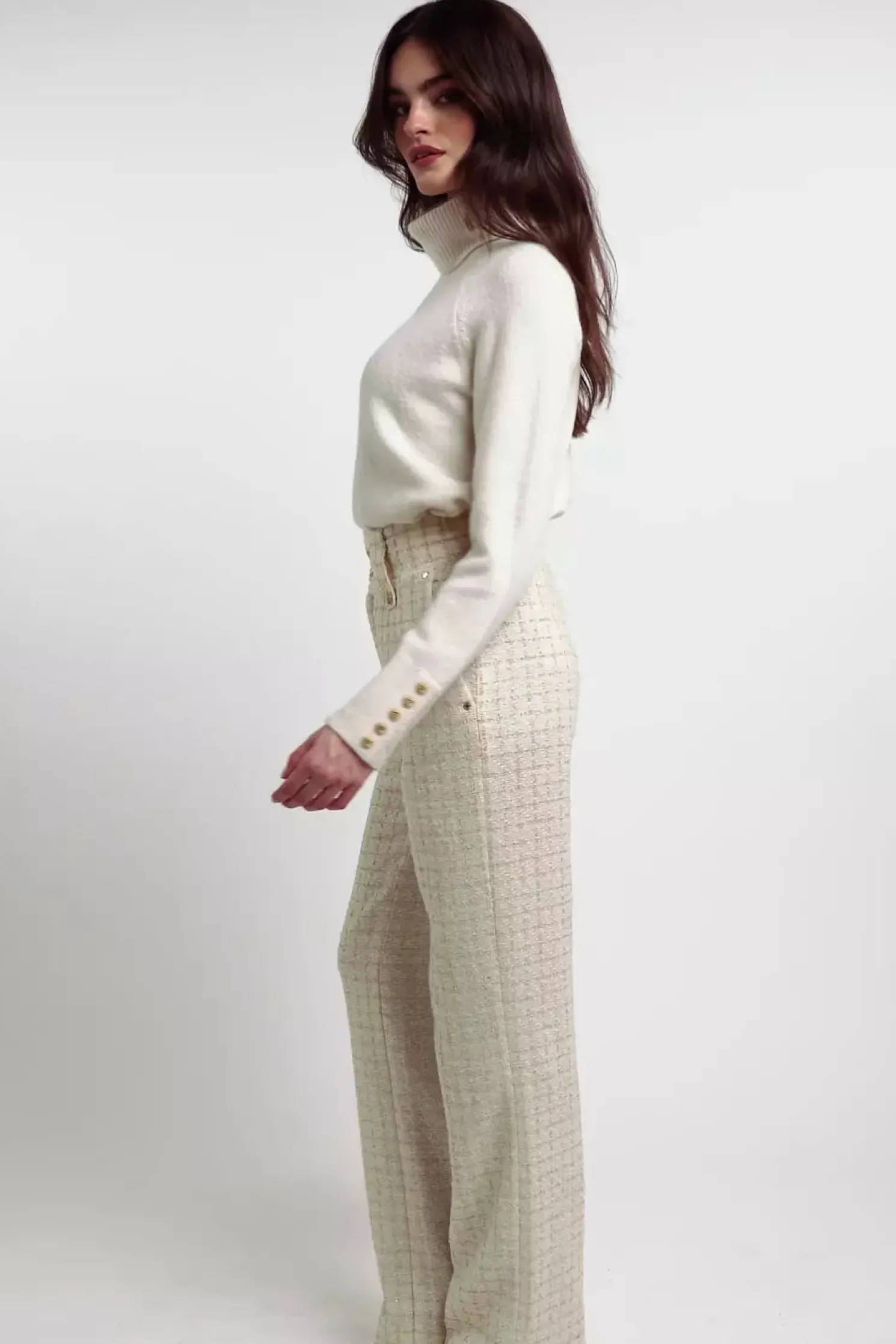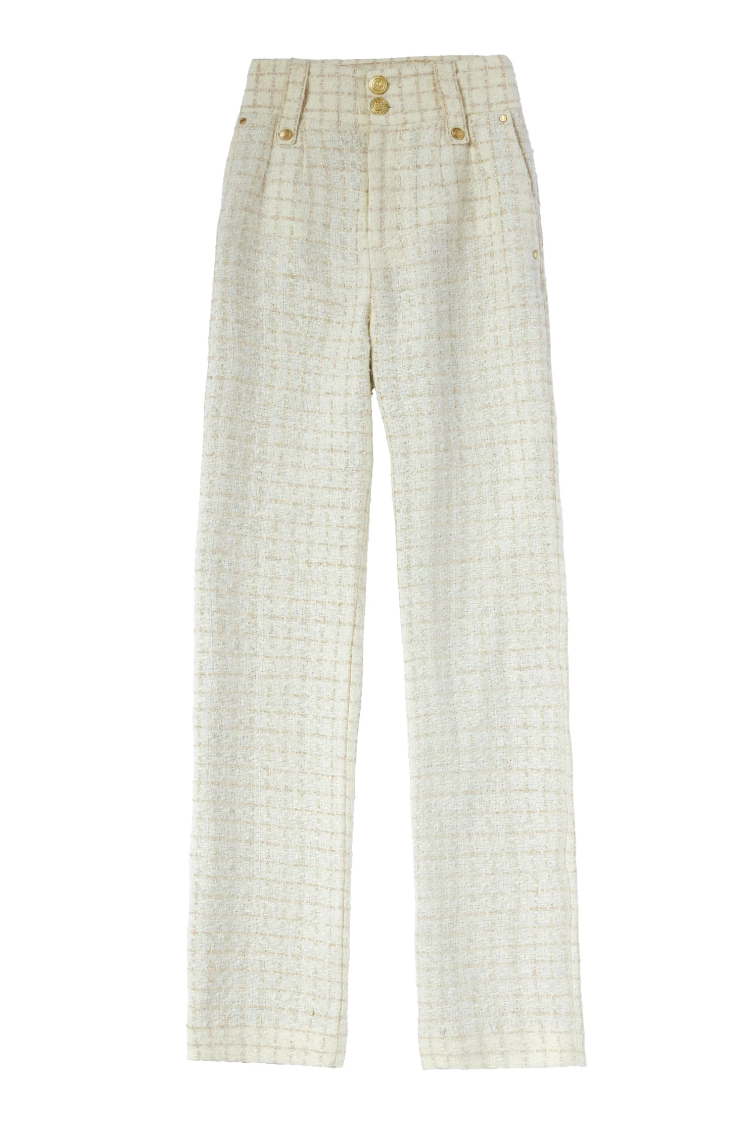 High Waisted Straight Trouser (Ivory Sparkle Tweed)