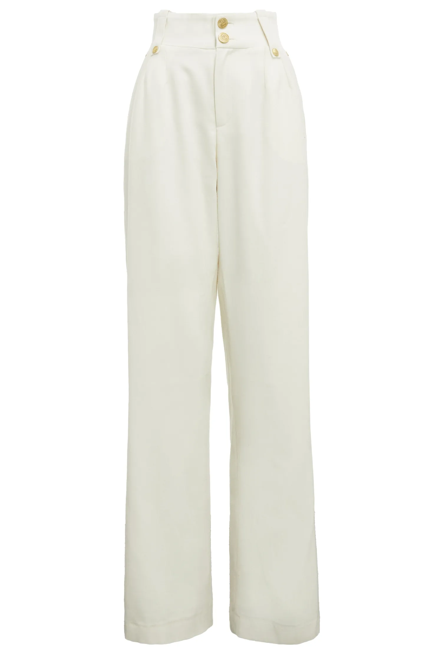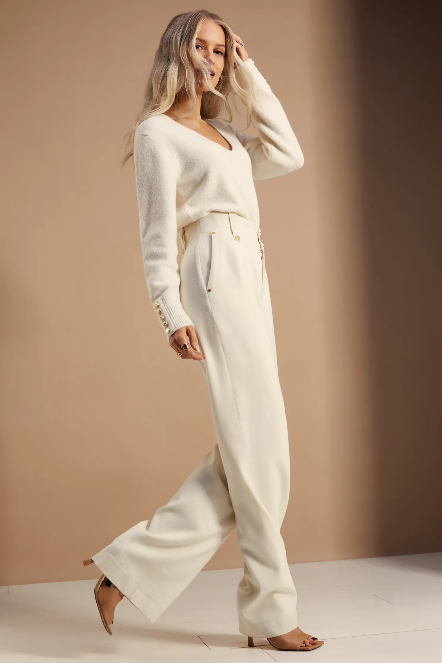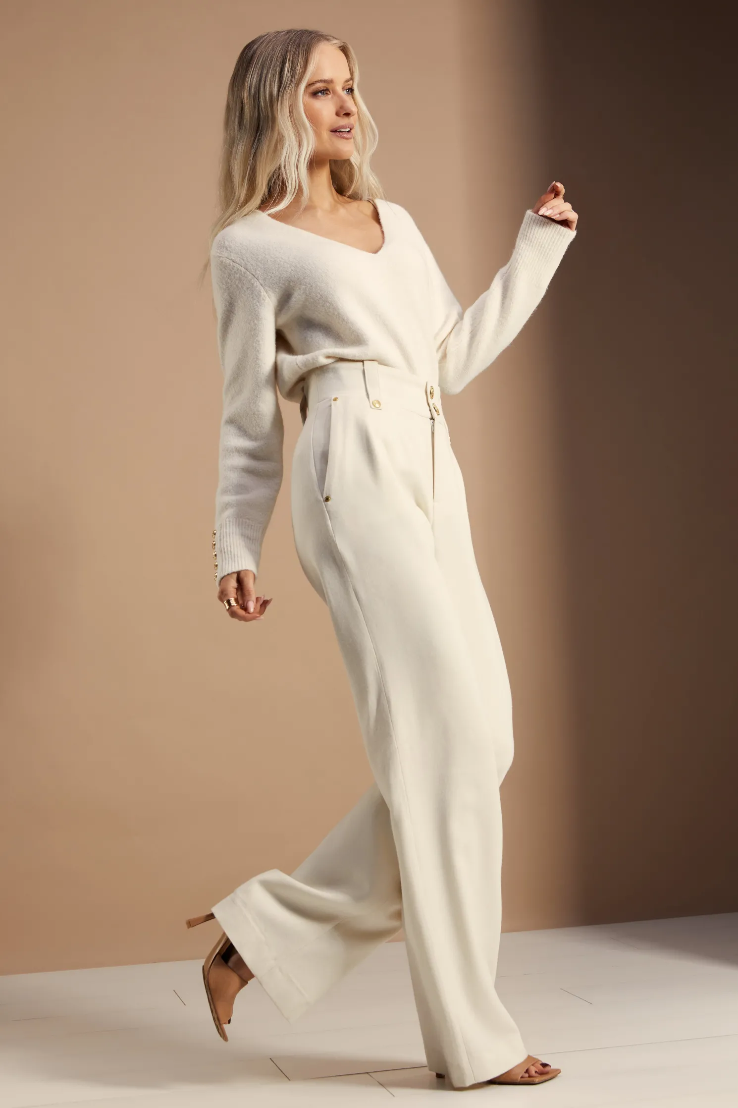 Simple and refined, these wide-leg trousers are the perfect balance of smart casual that effortlessly take you from day to night. Made from a luxurious wool blend that’s fully lined, these trousers sit high on the waist with a wide waistband to create a flattering silhouette that suits all body shapes. Featuring two large side pockets and adorned with our iconic gold hardware for an added touch of luxury. These trousers have been hand cut and made in England using wool woven in the UK.