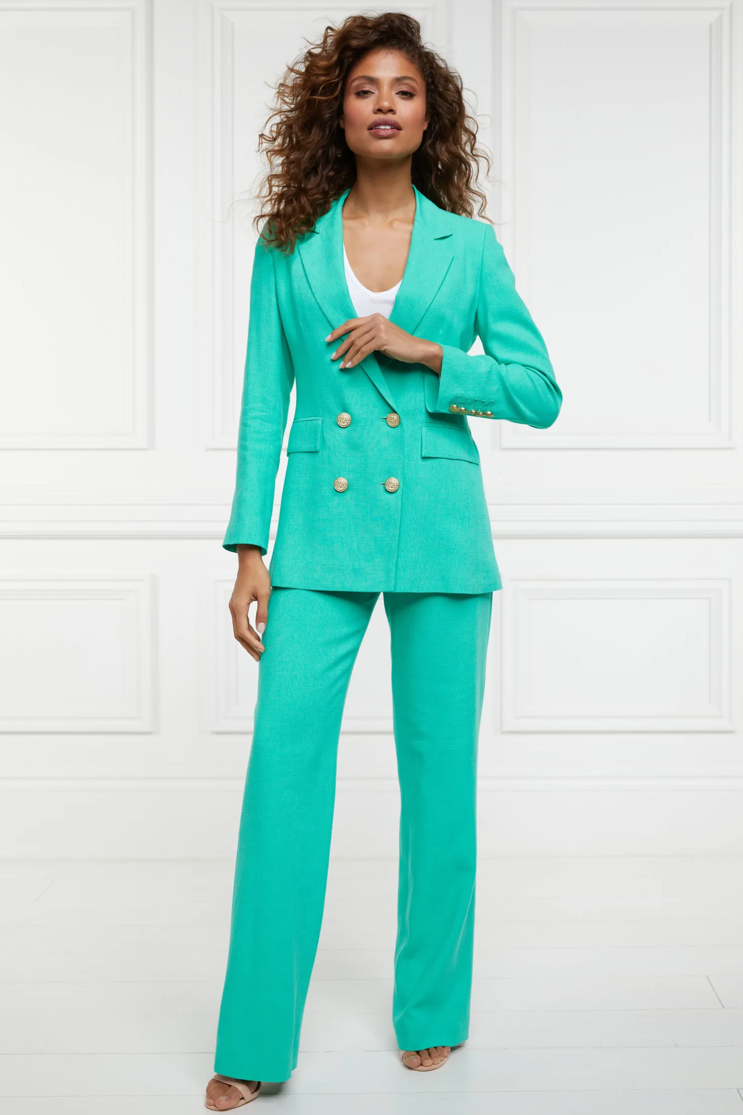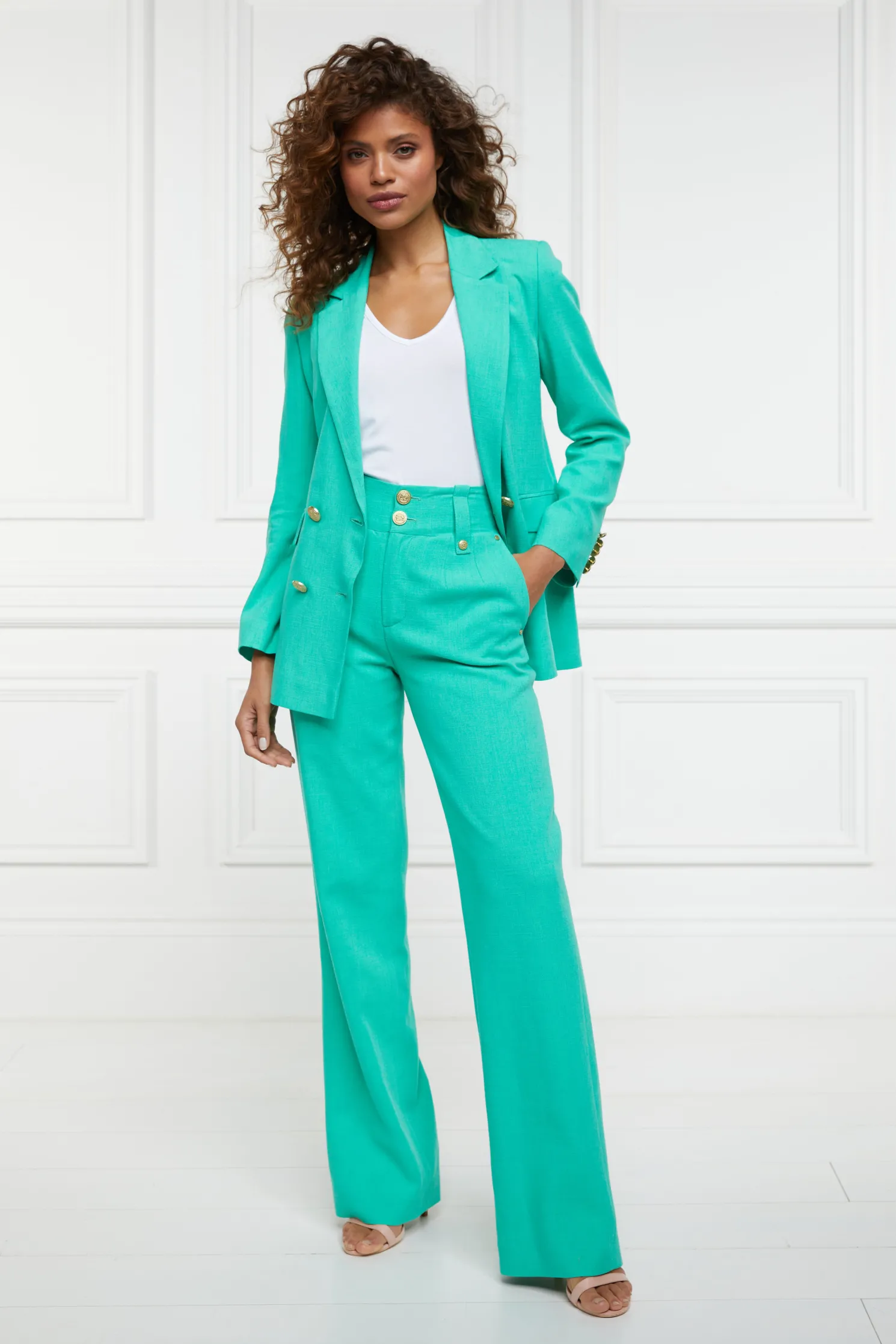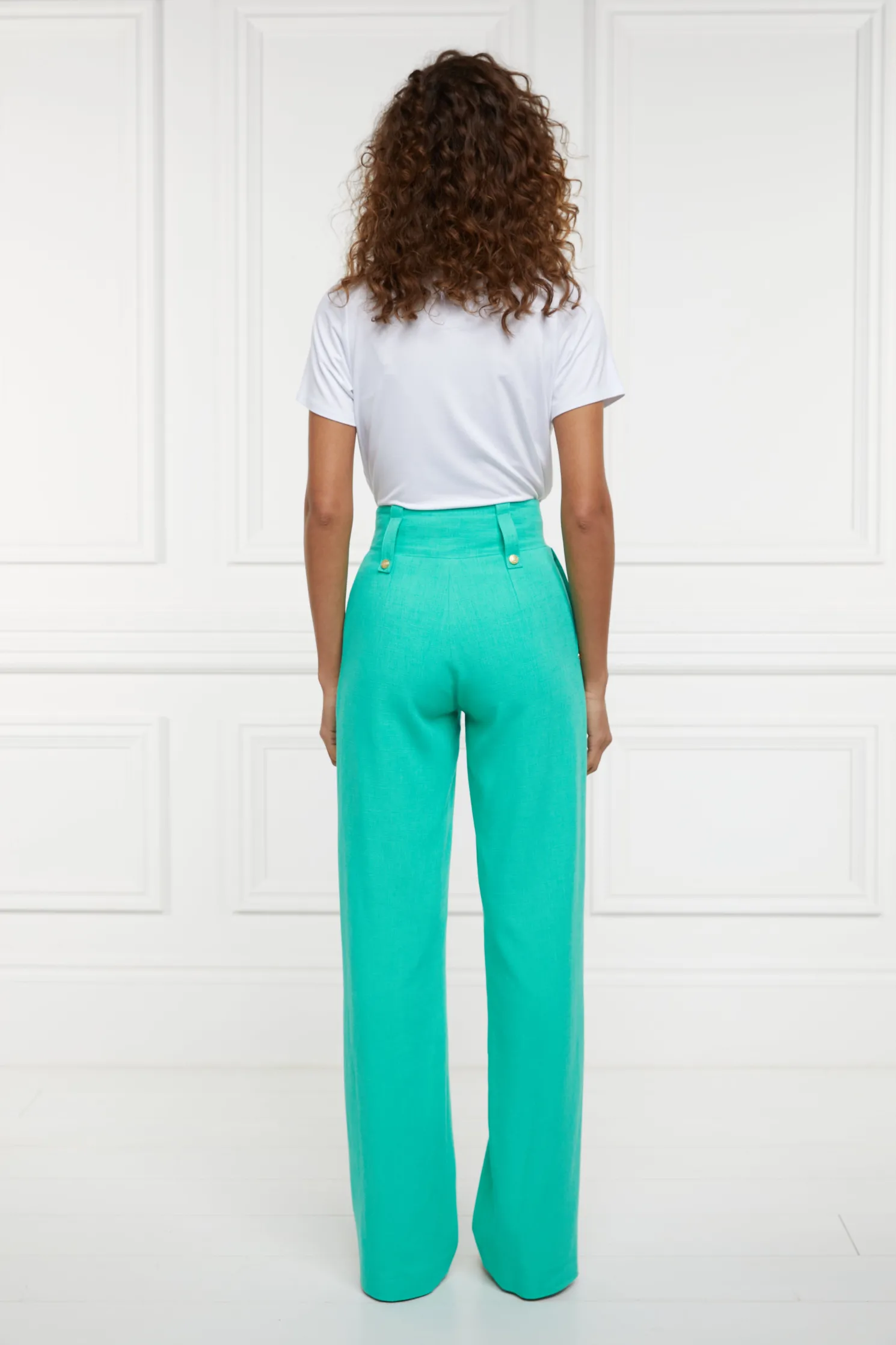 Simple and refined, these straight-leg linen trousers are a must-have for your summer wardrobe. Crafted from our crease resistant, lightweight and breathable linen blend, these trousers sit high on the waist with a wide waistband to create a flattering silhouette that suits all body shapes. Featuring two large side pockets and adorned with our iconic gold hardware for an added touch of luxury.