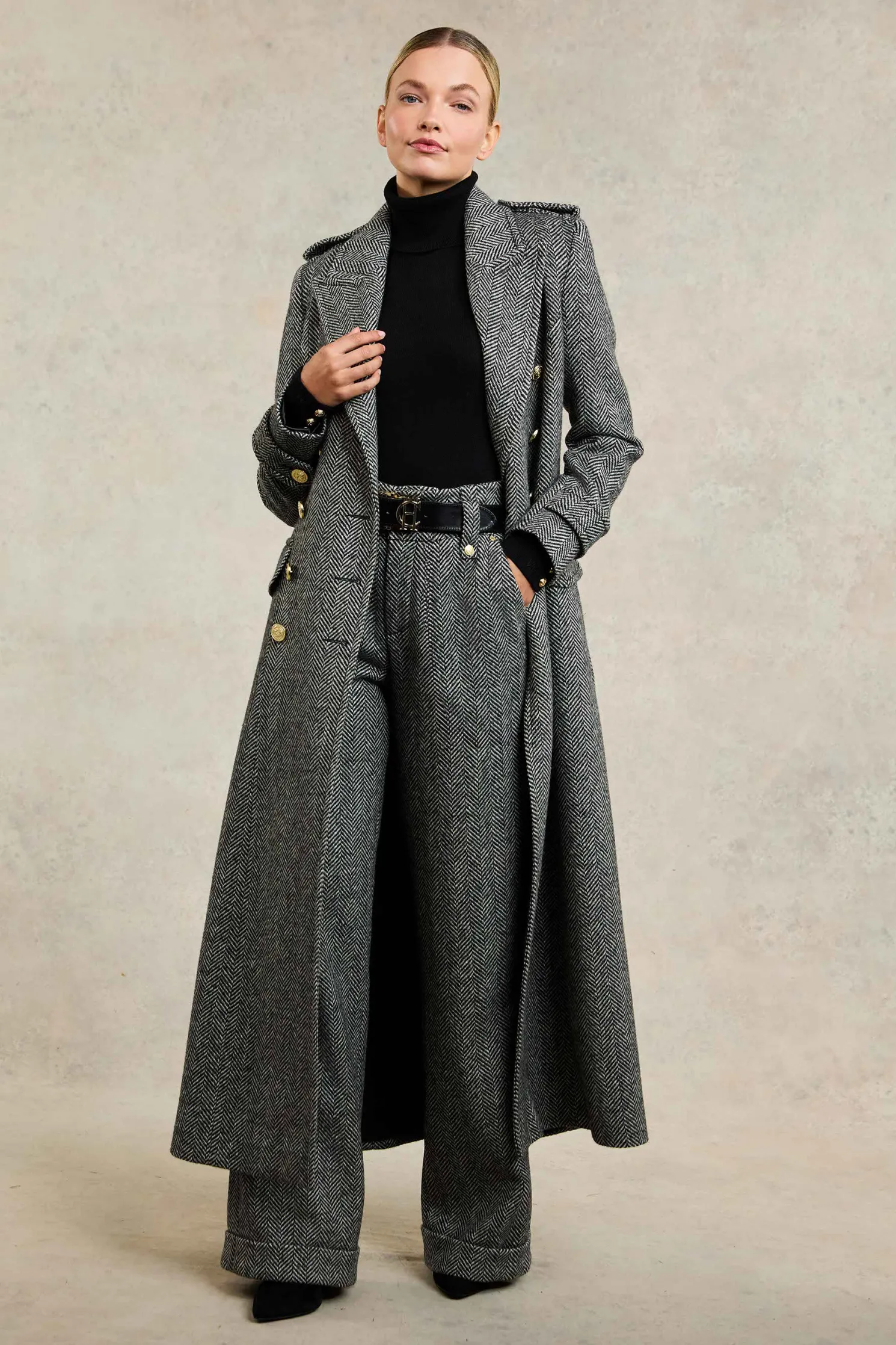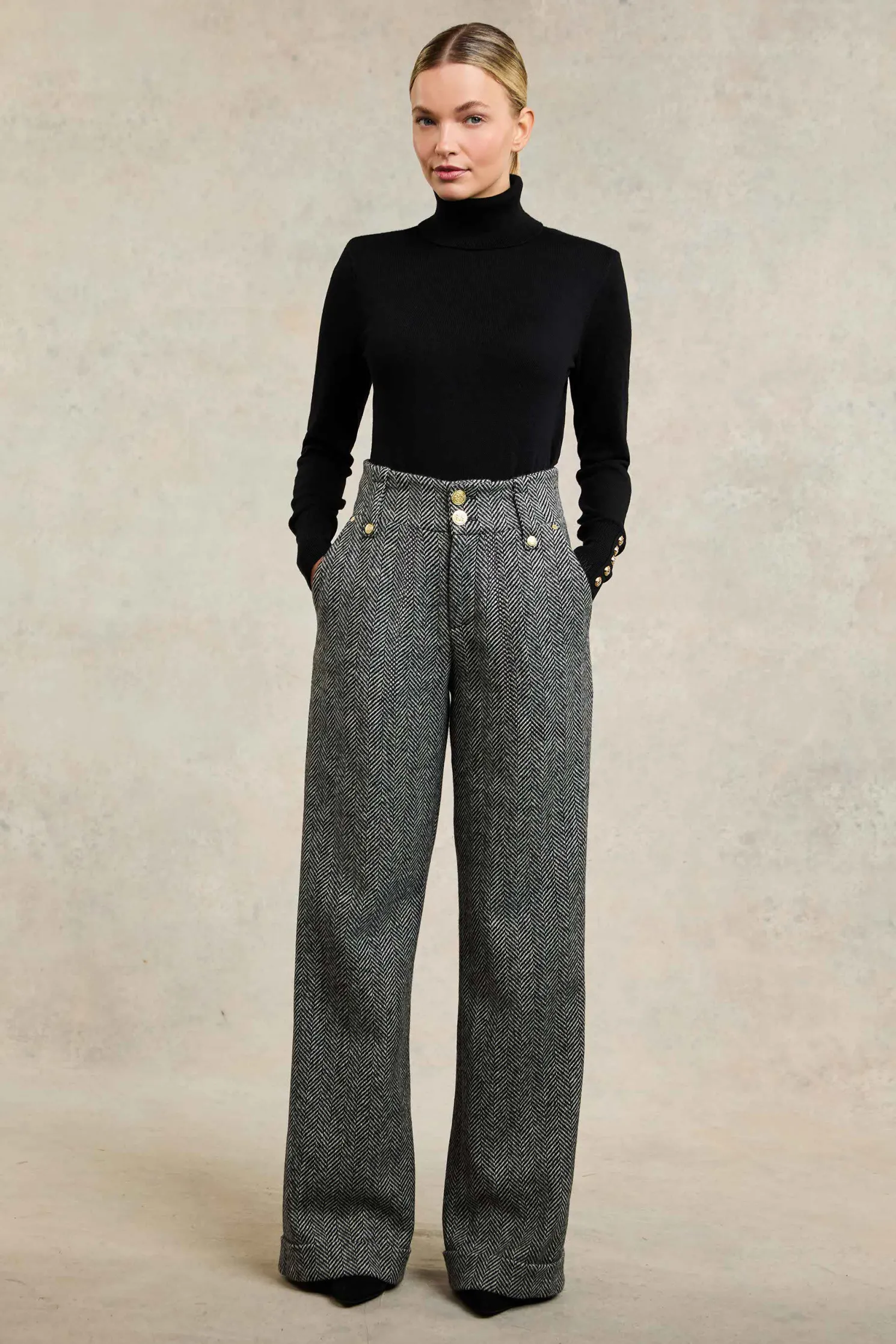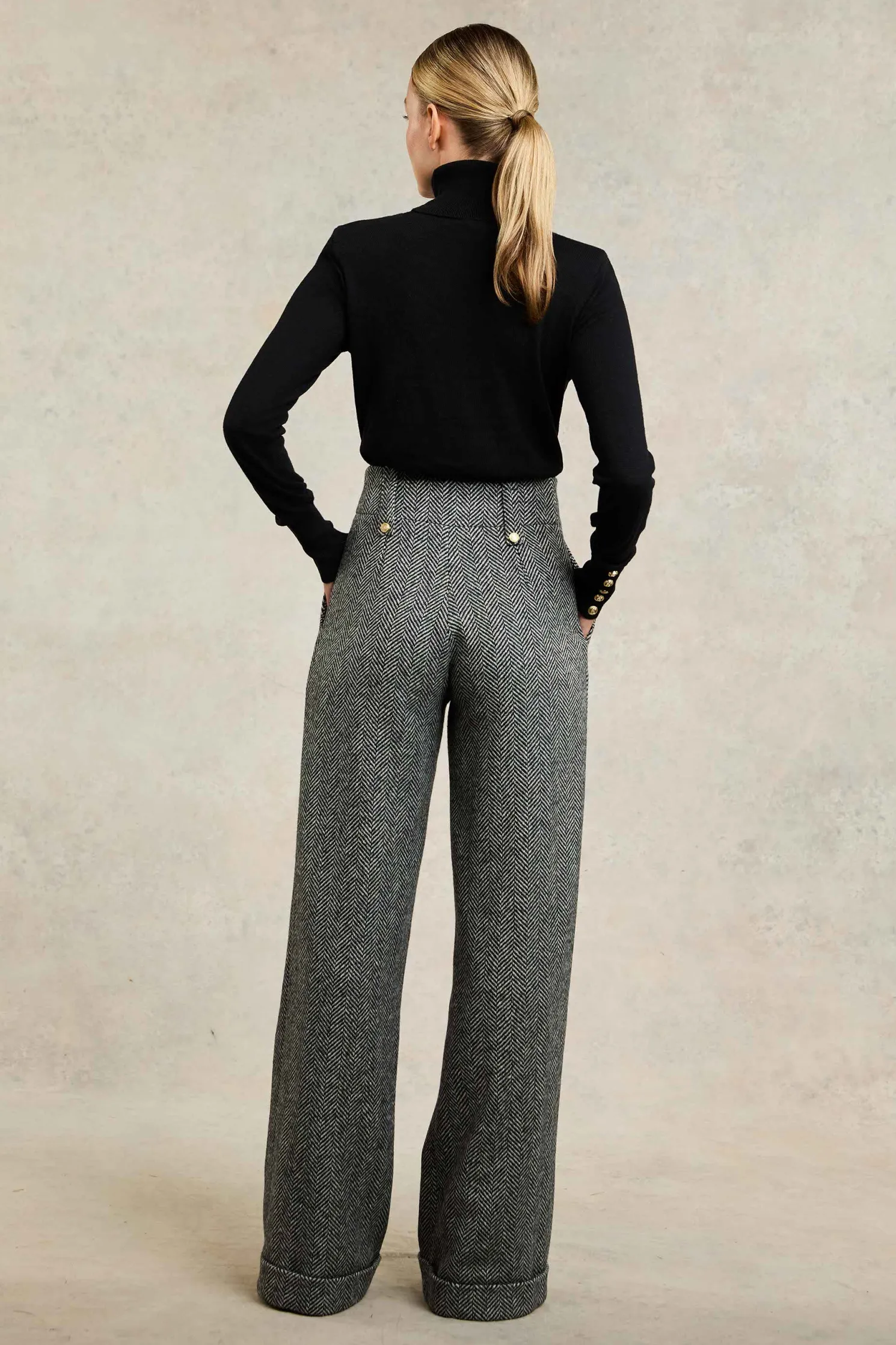 Simple and refined, these straight-leg trousers are the perfect balance of smart and casual that effortlessly take you from day to night. Made from a luxurious wool blend that’s fully lined, these trousers sit high on the waist with a wide waistband to create a flattering silhouette that suits all body shapes. Featuring two large side pockets and adorned with our iconic gold hardware for an added touch of luxury. These trousers have been hand cut and made in England using wool woven in the UK.
