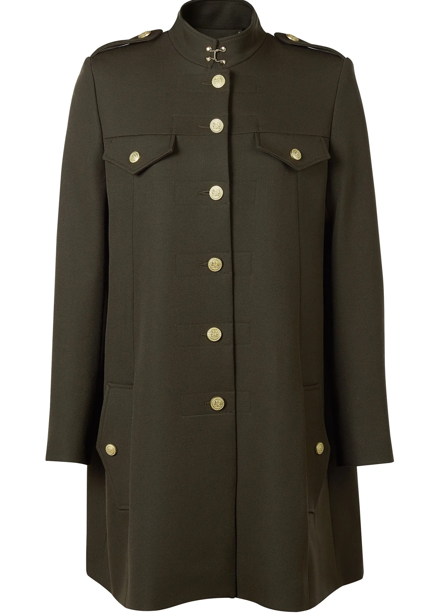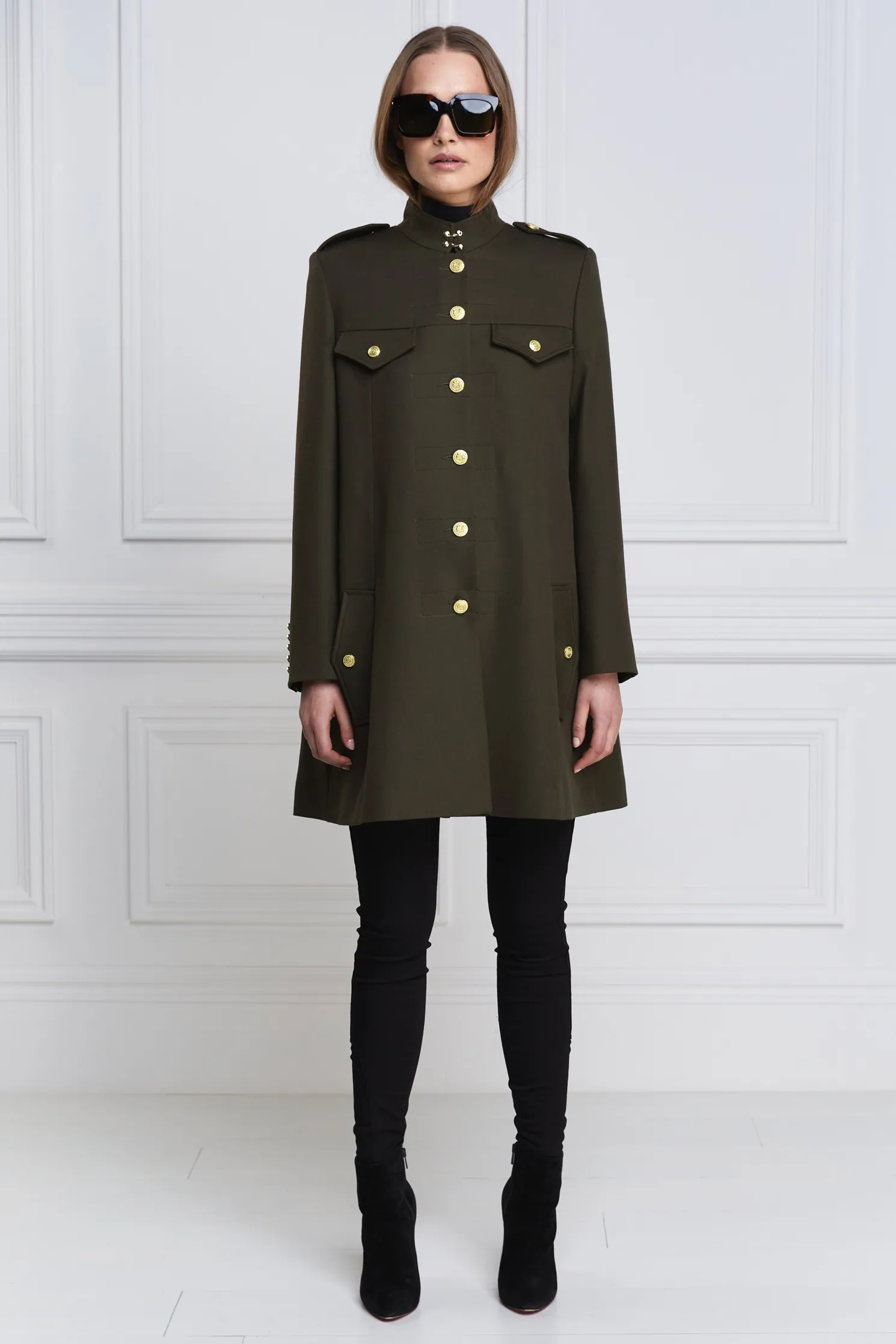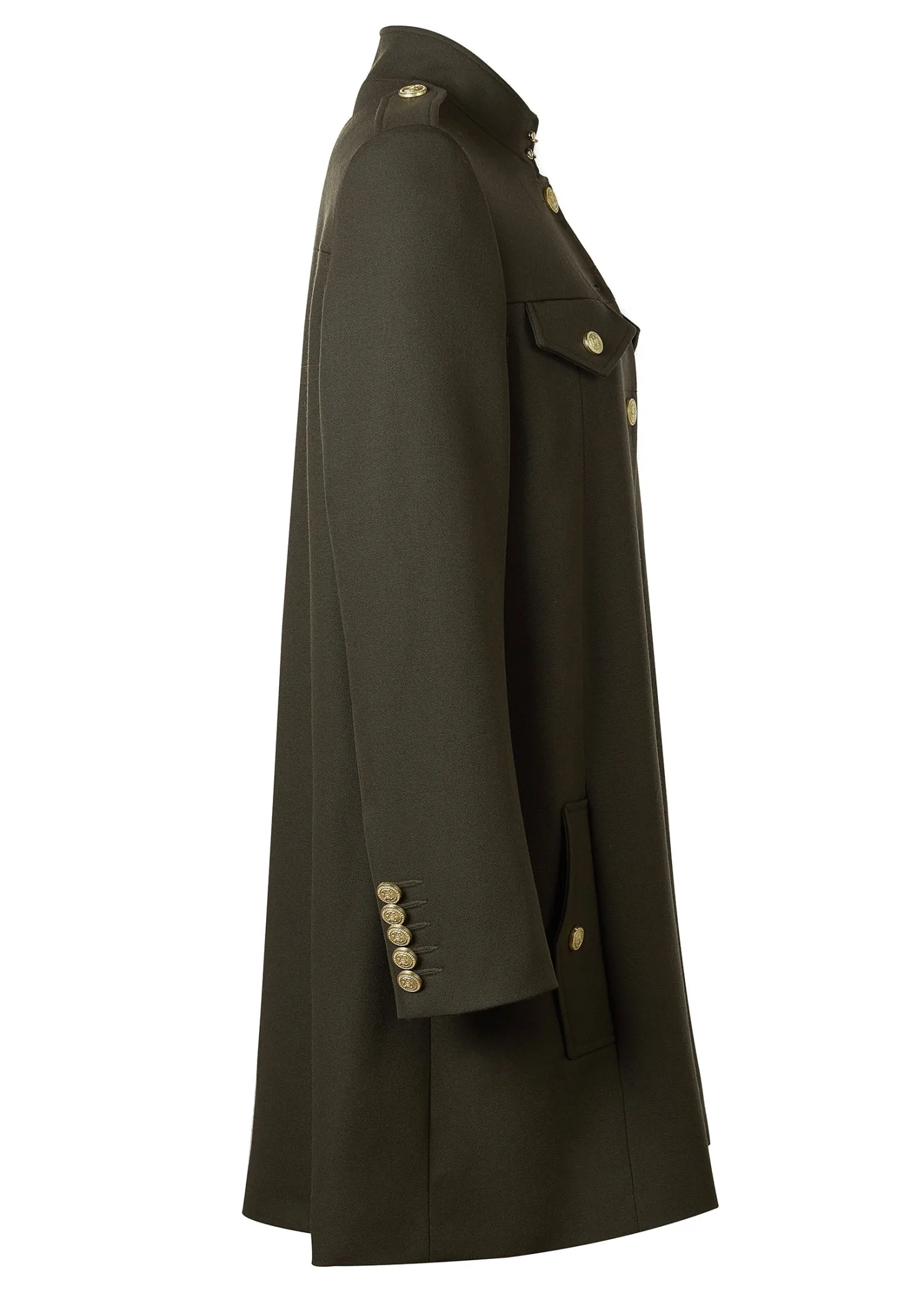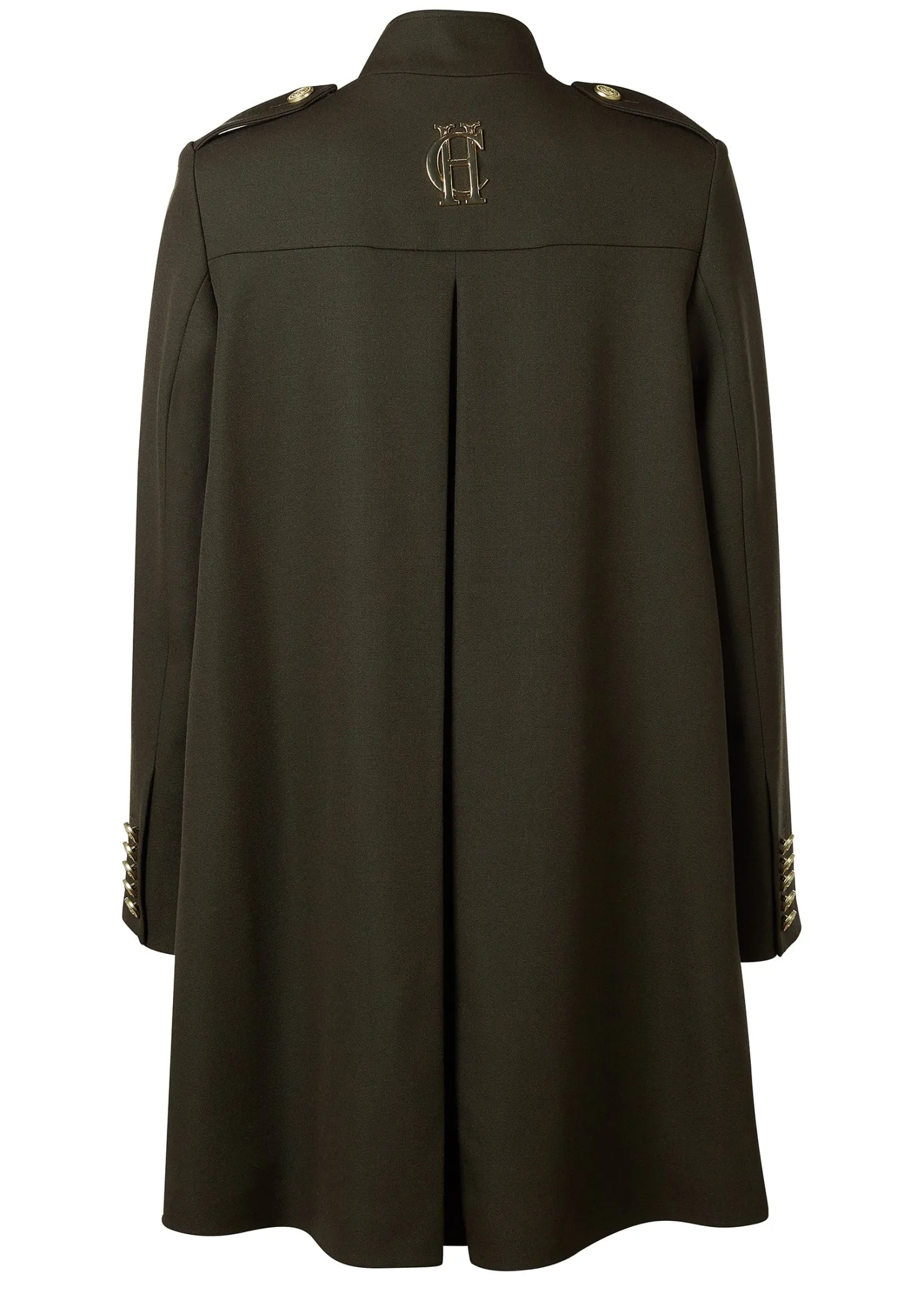A hybrid between a cape and a jacket, the Highbury Cape has been entirely handmade in the UK. Designed to fit like a cape with an easy fit and elegant drape, the tailored sleeves create a sophisticated silhouette. With a wide inverted box pleat with side-entry pockets, the piece has been detailed with a high neck hook and eye closure.