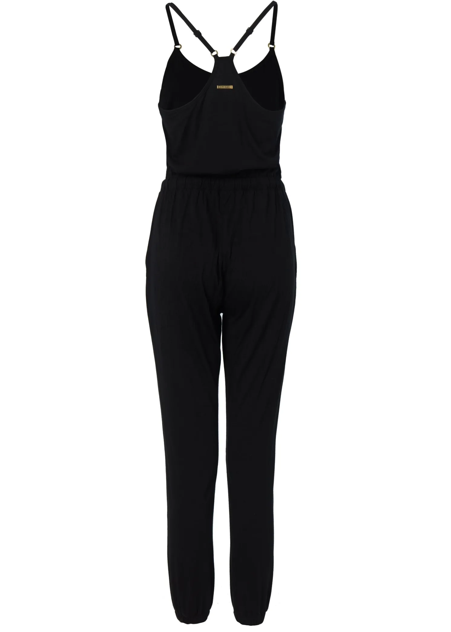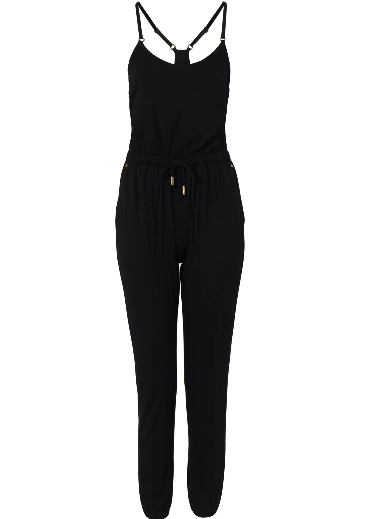 Designed with a relaxed fit with a drawstring waist to cinch you in, this piece has been curated from a super soft jersey fabric. With a racerback style, adjustable spaghetti straps & cuffed ankles, this jumpsuit is both stylish and comfortable. Detailed with our iconic hardware.