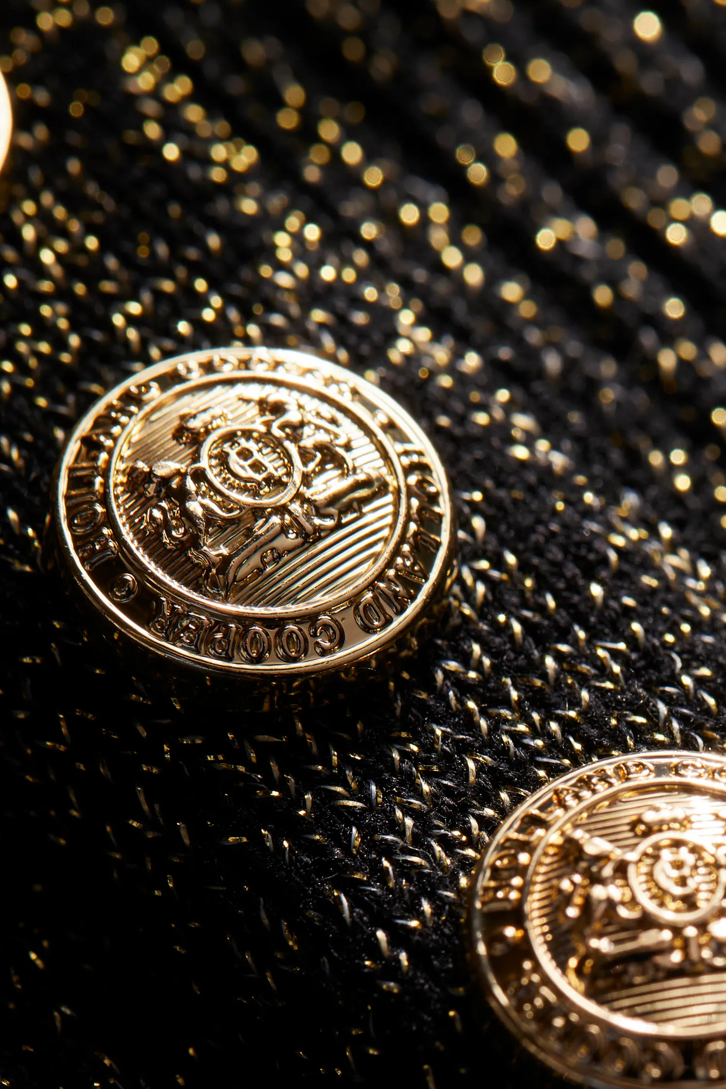 A striking piece designed to enhance your silhouette with its body-contouring fit. Featuring a high roll neck collar, this mini dress exudes sophistication and modern style. The ribbed fabric construction ensures a flattering, sculpted look, while the shoulder pads are enhanced with the added detail of signature rivets, giving the dress a unique and contemporary touch.