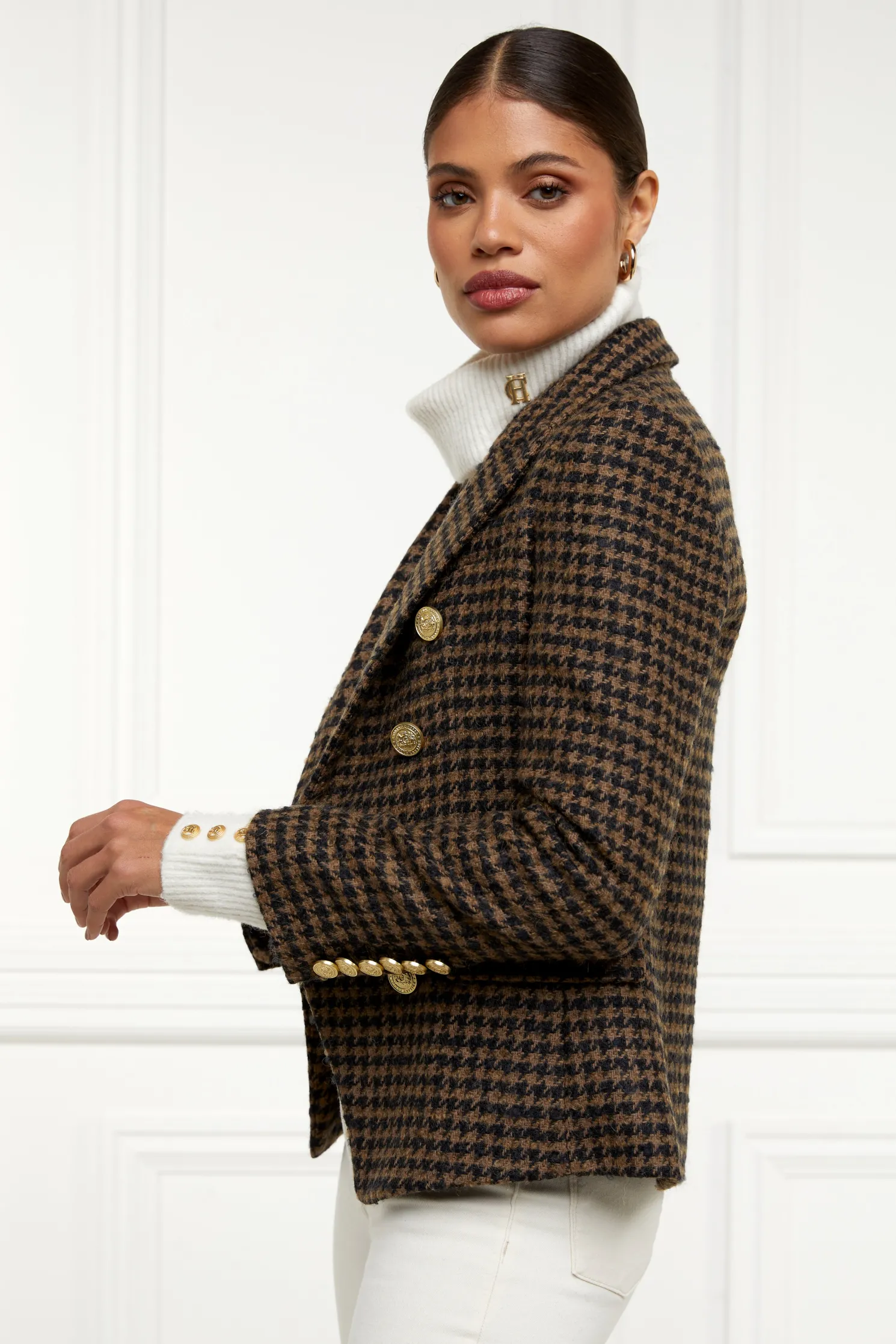 This chic transeasonal essential is meticulously designed to create a sharp, tailored silhouette, whether worn open or closed. Crafted entirely in England, it features luxurious British-woven wool, ensuring the highest quality and heritage craftsmanship. Fully lined with a luxury stretch lining for unparalleled comfort, this blazer is adorned with our signature HC gold buttons on the front and cuffs, adding a touch of elegance and distinction.