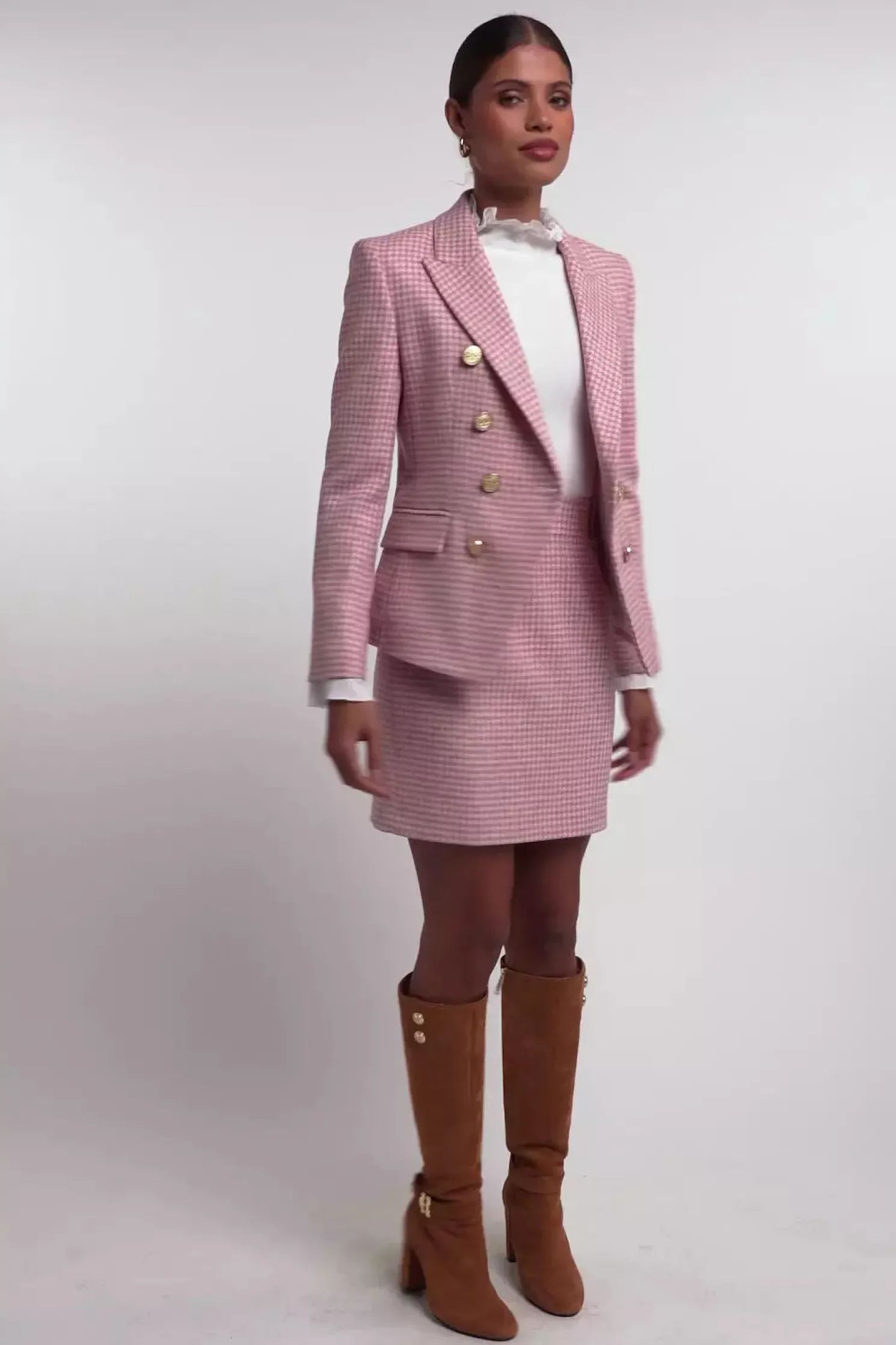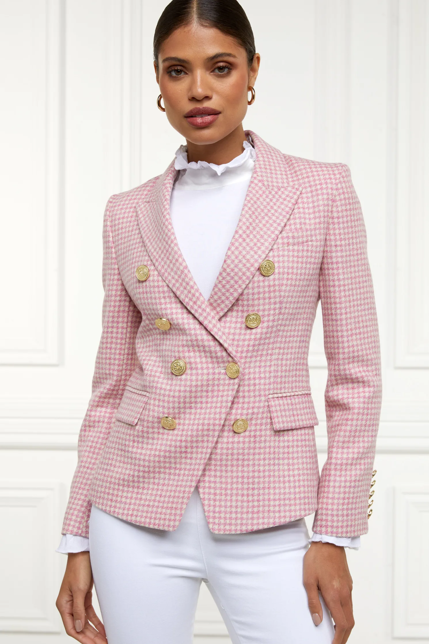 Made from wools woven in the UK, this blazer has a slim, double-breasted silhouette featuring HC’s signature crested rivets. Precisely tailored to ensure a sharp and tailored profile worn open or closed, each blazer has been fully lined with a luxury stretch lining for comfort. Elevated by bold lapels and subtly placed hip pockets, this wardrobe staple has been hand cut and made entirely in England.