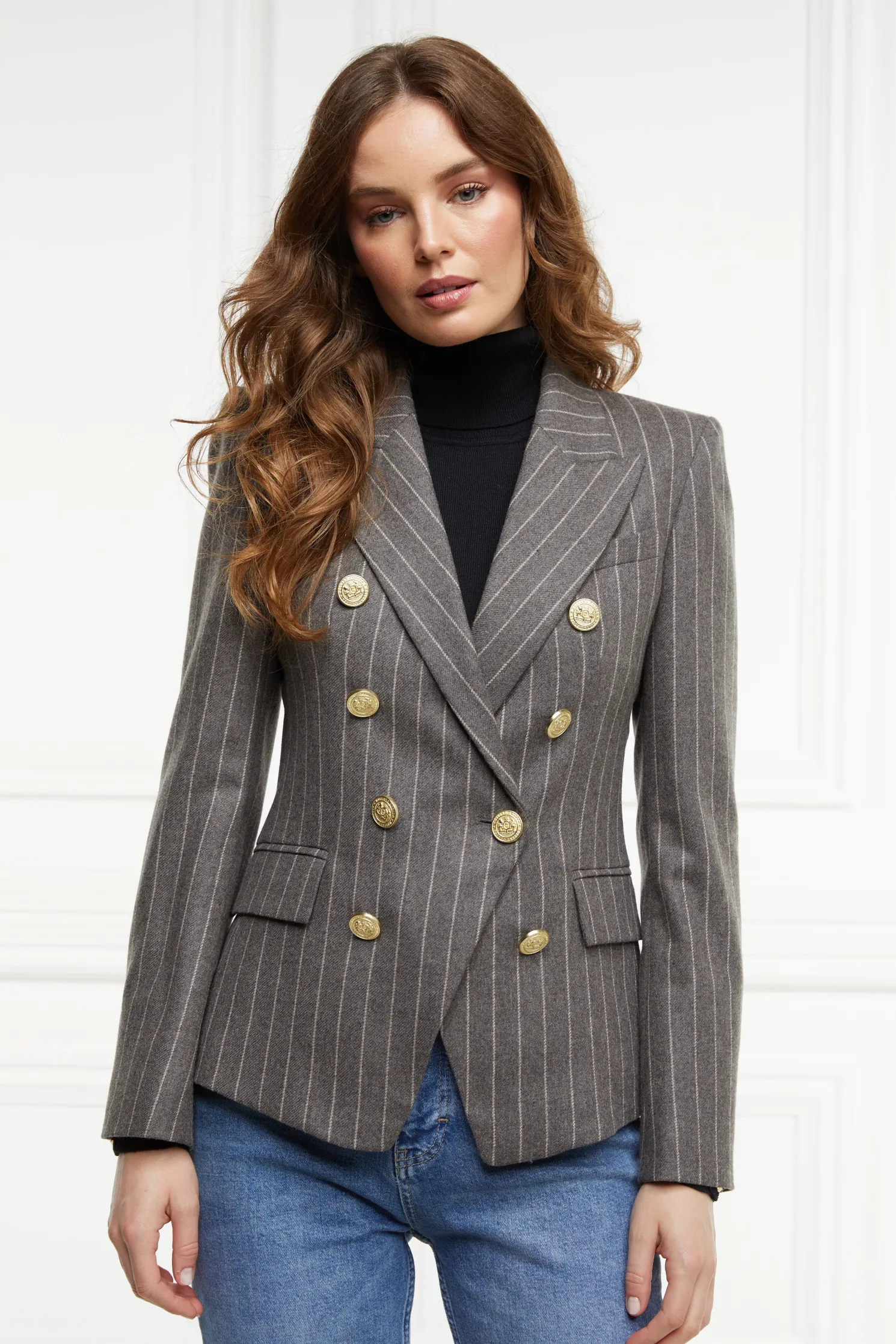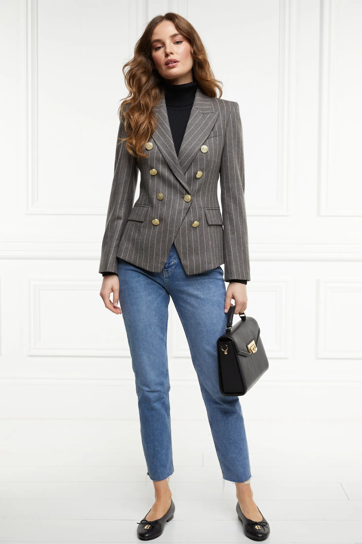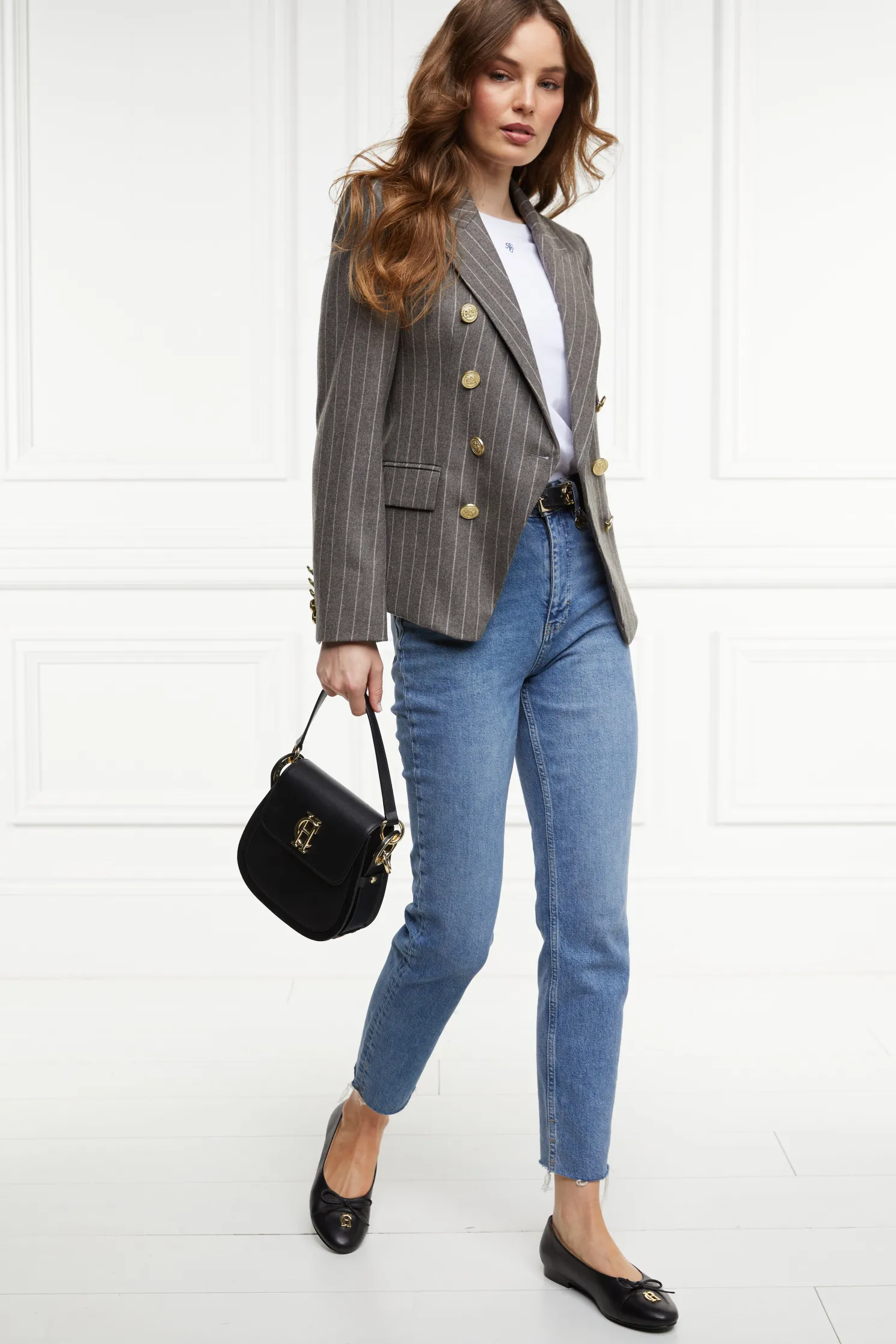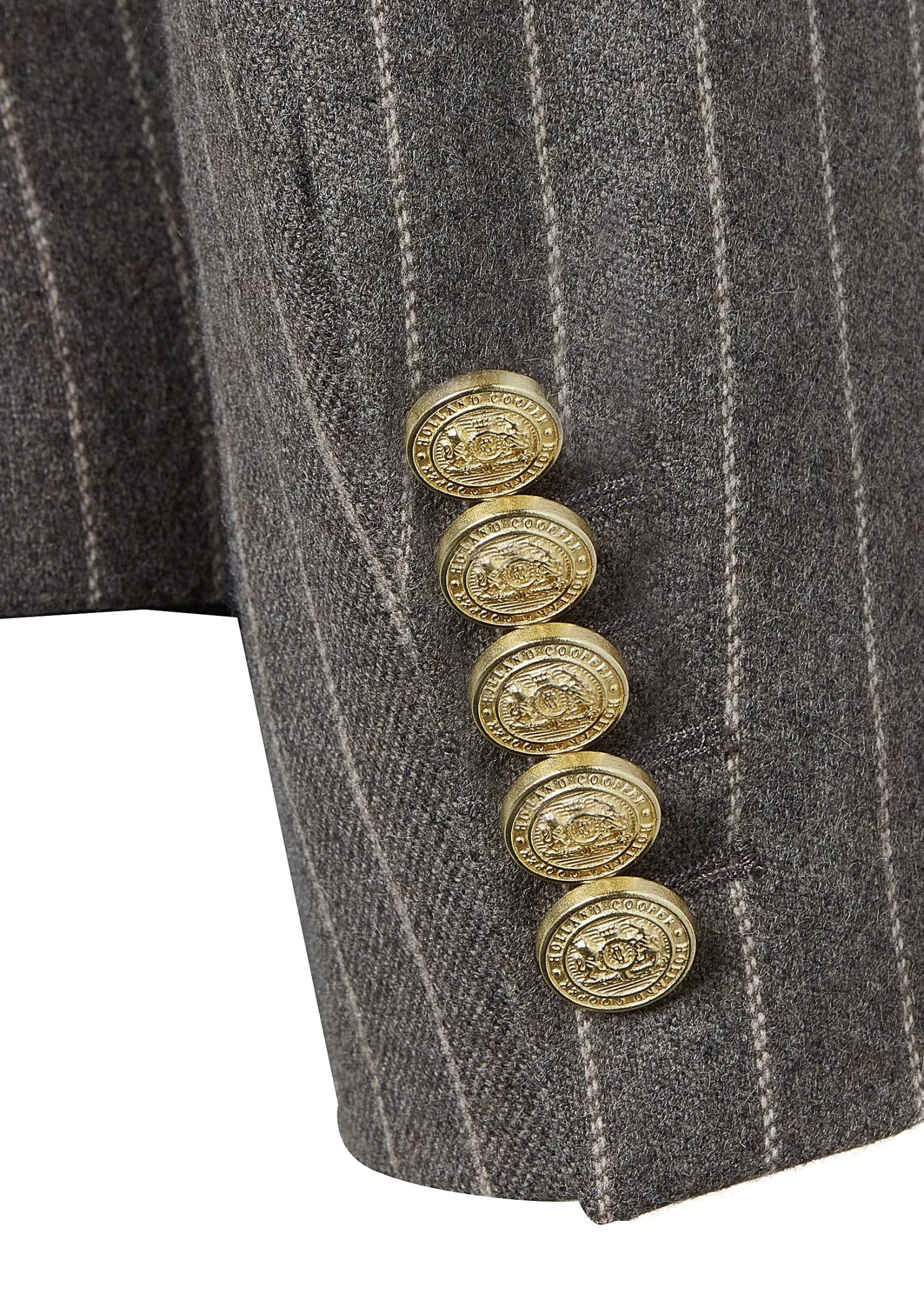 Made from wools woven in the UK, this blazer has a slim, double-breasted silhouette featuring HC’s signature crested rivets. Precisely tailored to ensure a sharp and tailored profile worn open or closed, each blazer has been fully lined with a luxury stretch lining for comfort. Elevated by bold lapels and subtly placed hip pockets, this wardrobe staple has been hand cut and made entirely in England.