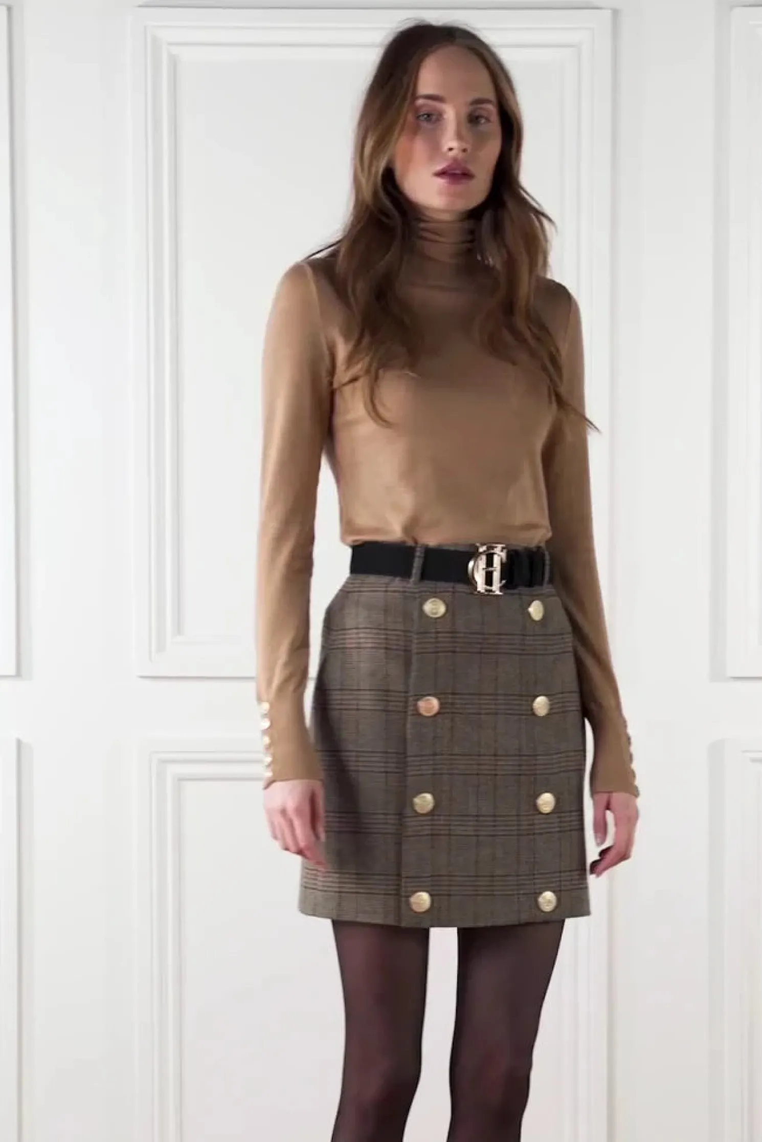 This mini style pencil skirt is fully lined and cut for a close fit from wool accented by gold rivets engraved with the classic HC crest. Tuck your sweater or blouse into the sculpting high-rise waist for an extra stylish look and feel.