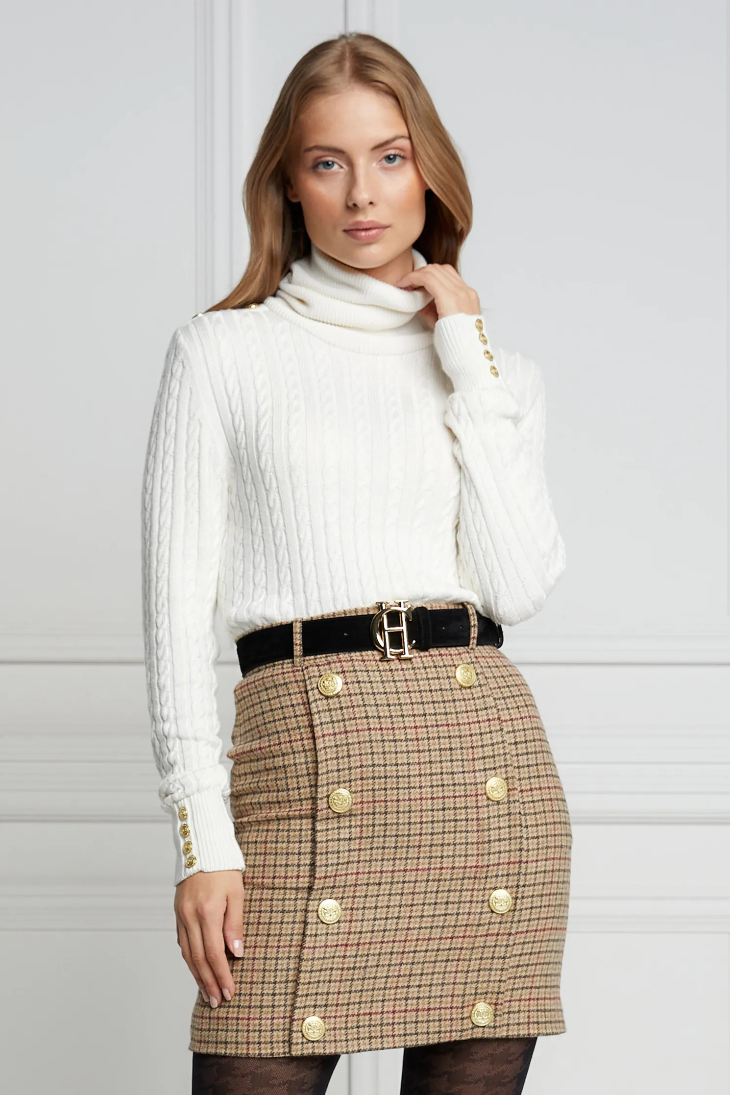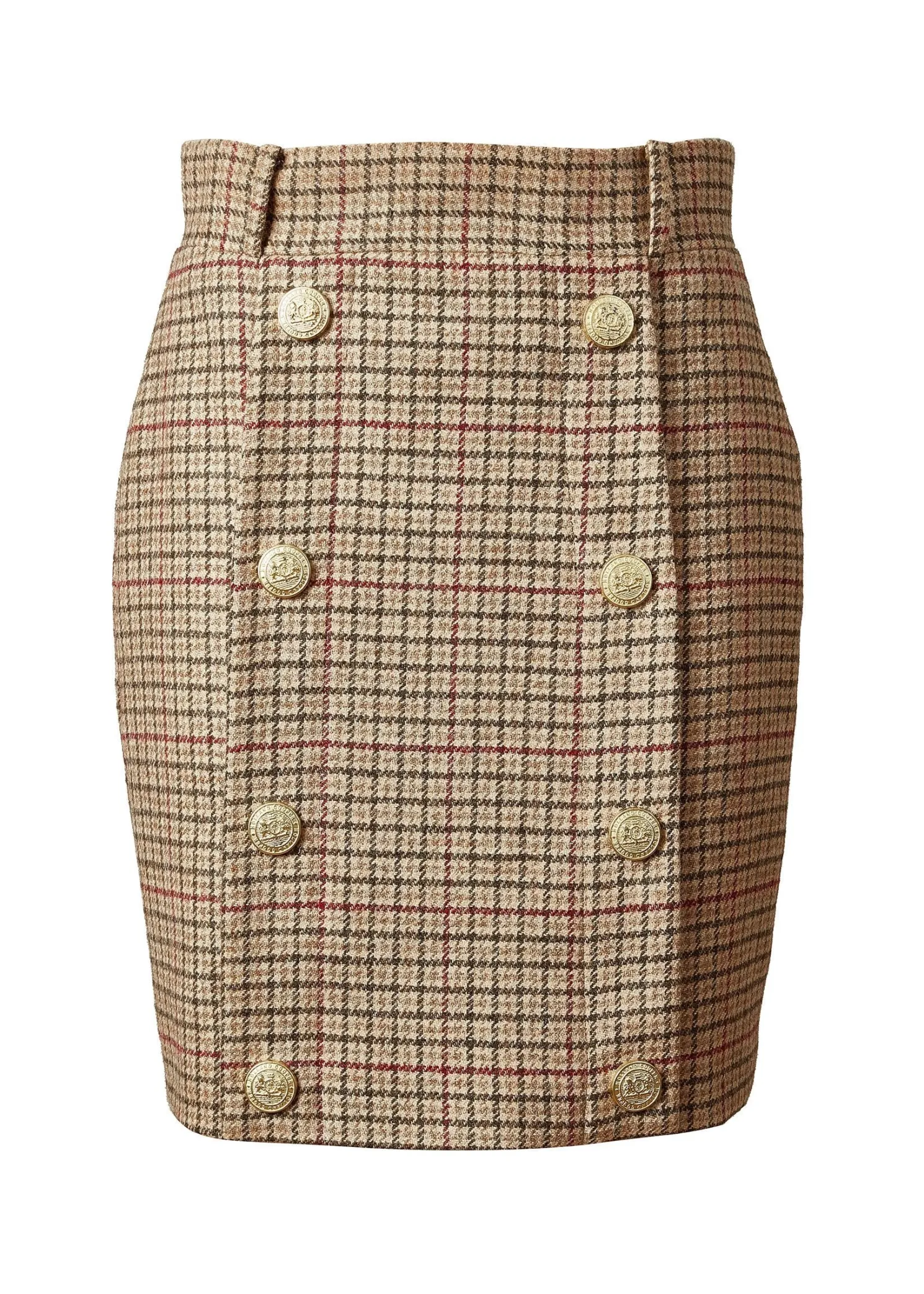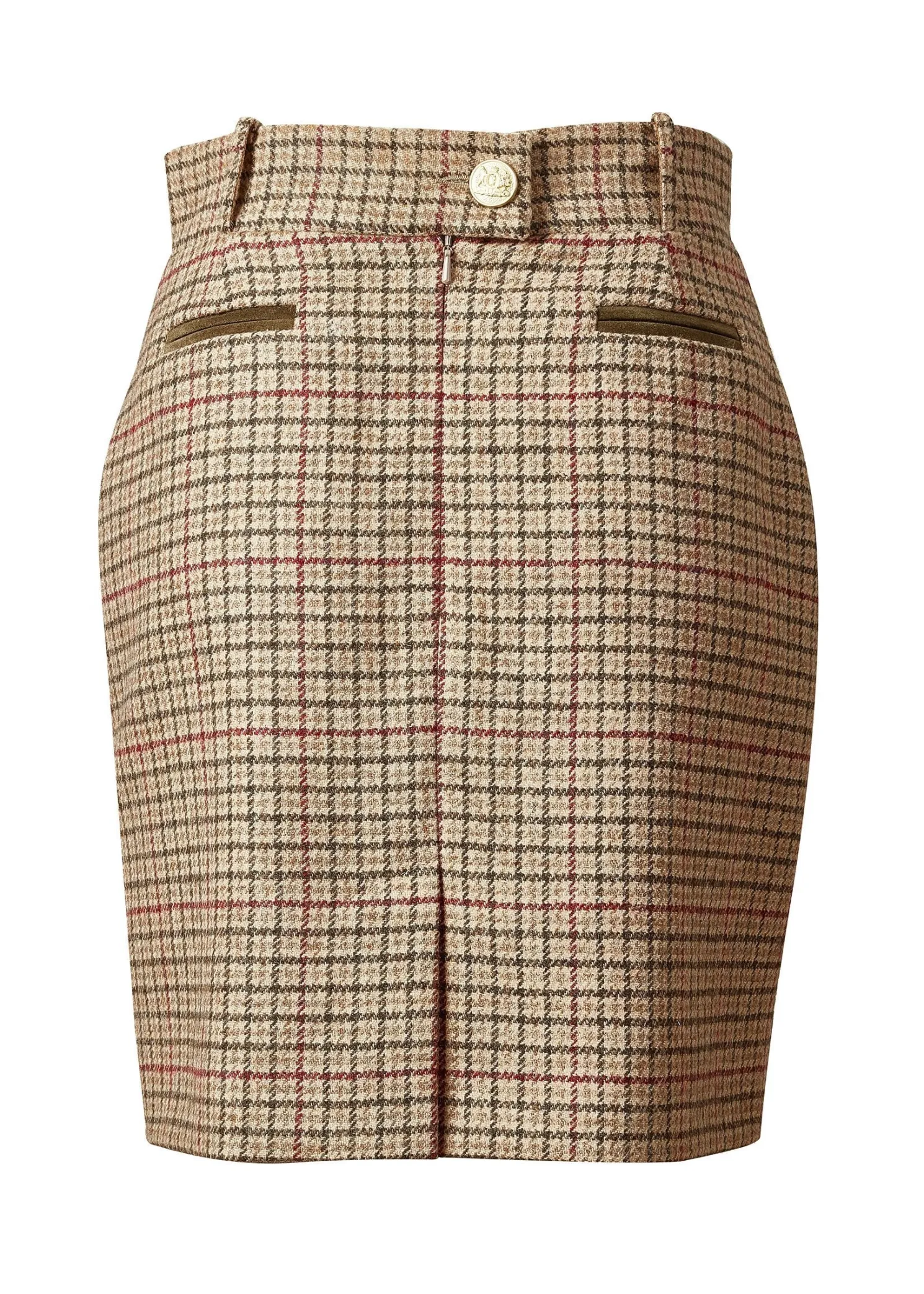 This mini style pencil skirt is fully lined and cut for a close fit from wool accented by gold rivets engraved with the classic HC crest. Tuck your sweater or blouse into the sculpting high-rise waist for an extra stylish look and feel.