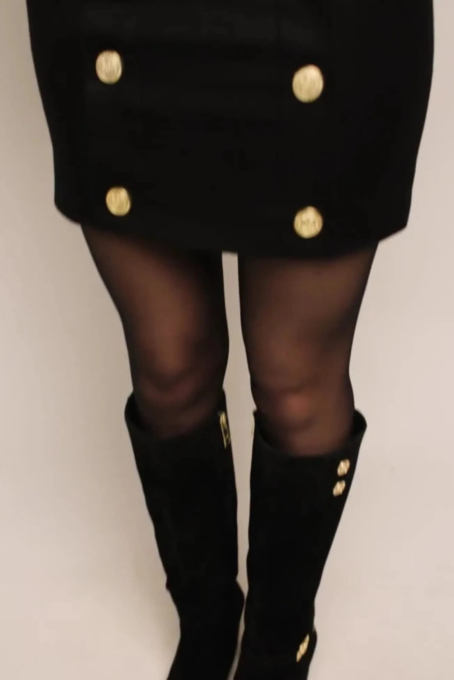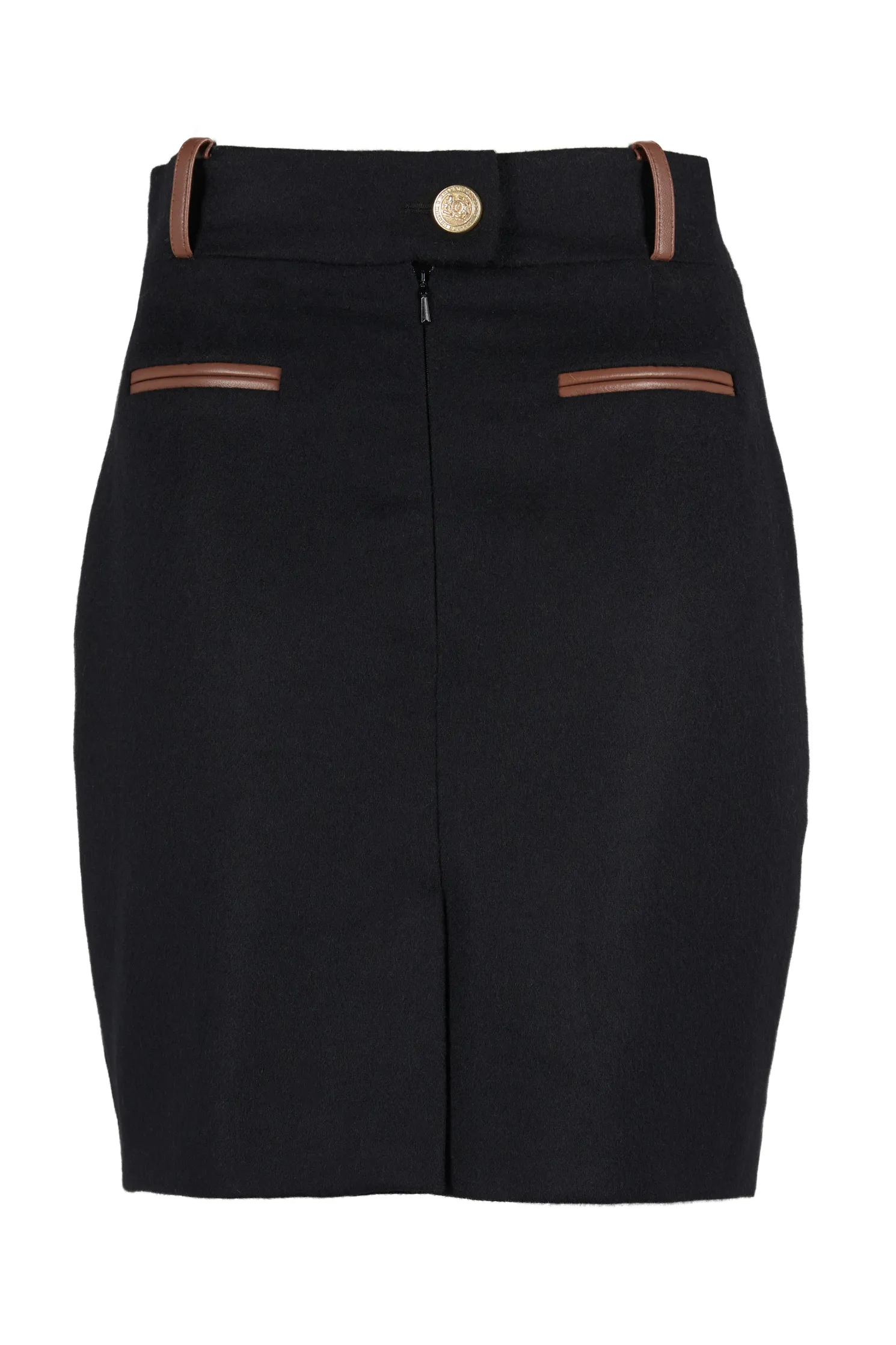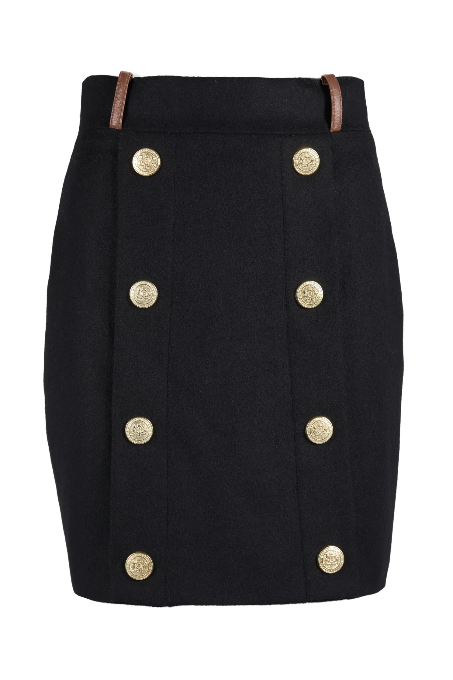 This mini style pencil skirt is fully lined and cut for a close fit from wool accented by gold rivets engraved with the classic HC crest. Tuck your sweater or blouse into the sculpting high-rise waist for an extra stylish look and feel.