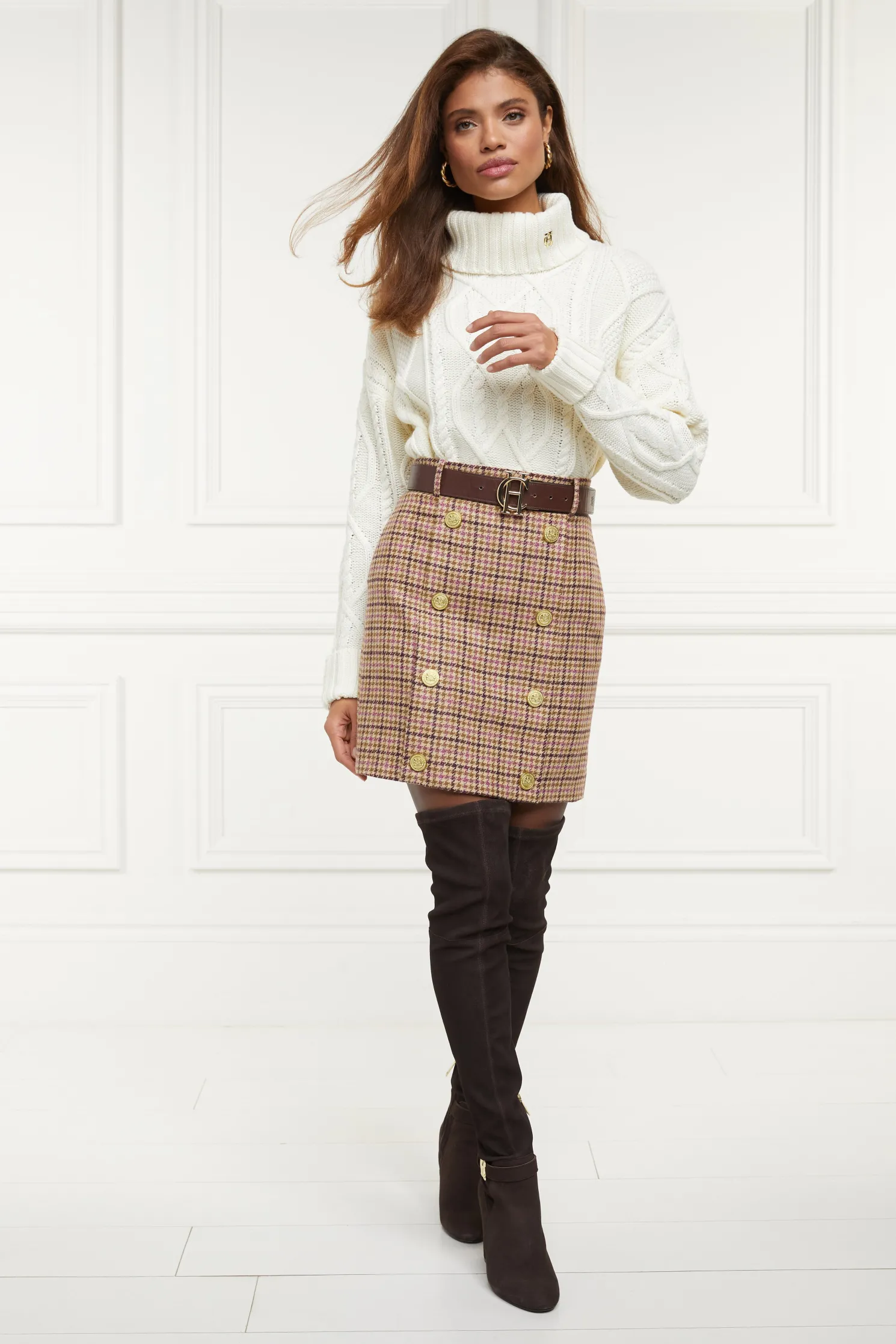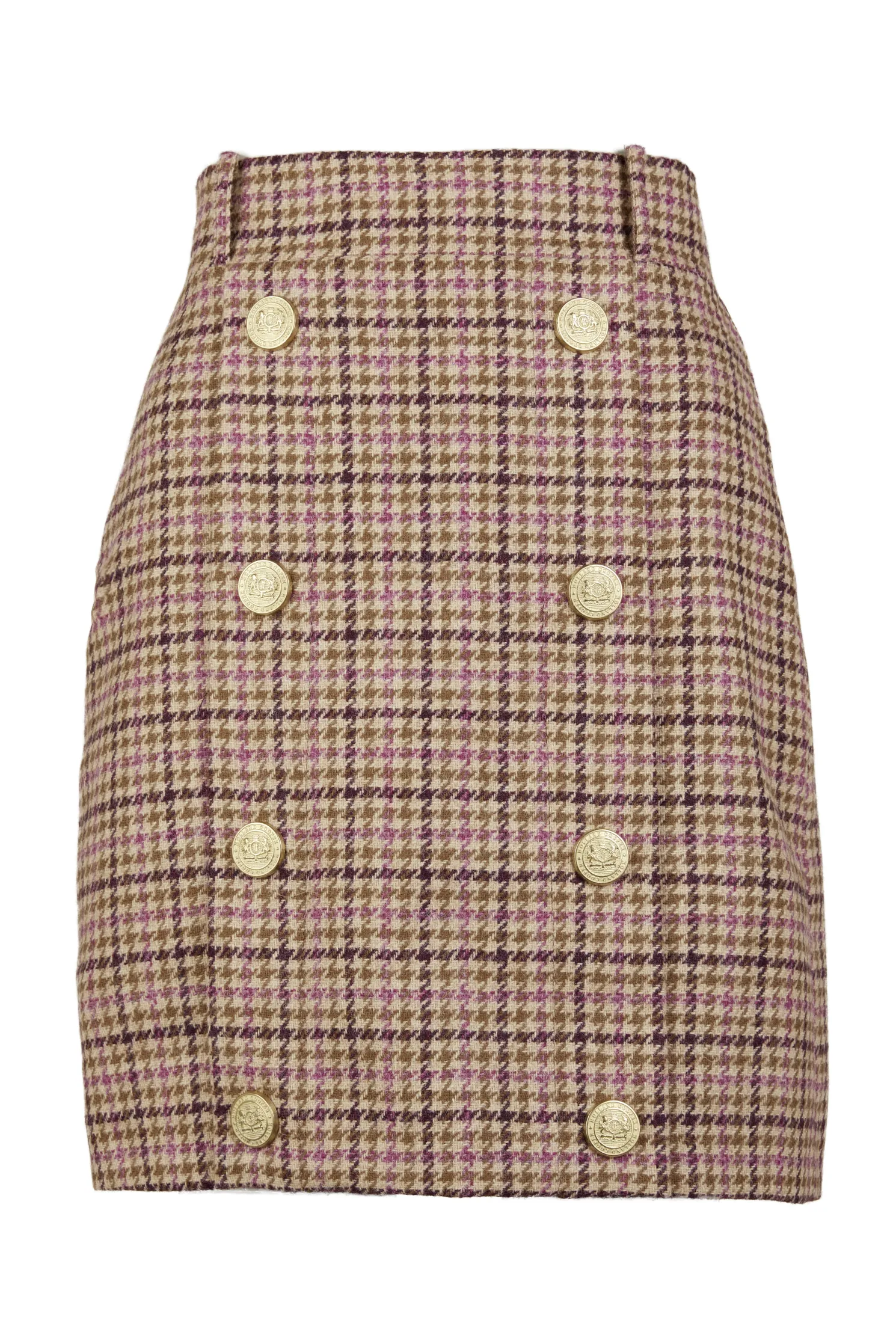 This mini style pencil skirt is fully lined and cut for a close fit from wool accented by gold rivets engraved with the classic HC crest. Tuck your knit or blouse into the sculpting high-rise waist for an extra stylish look and feel.