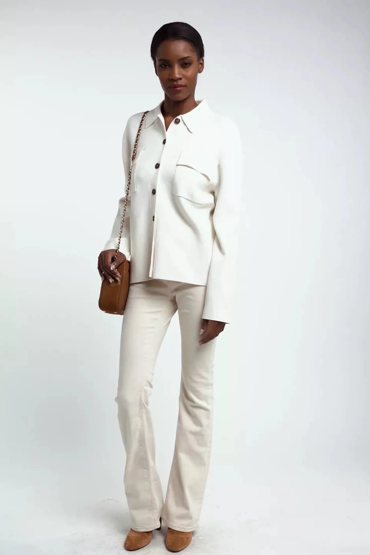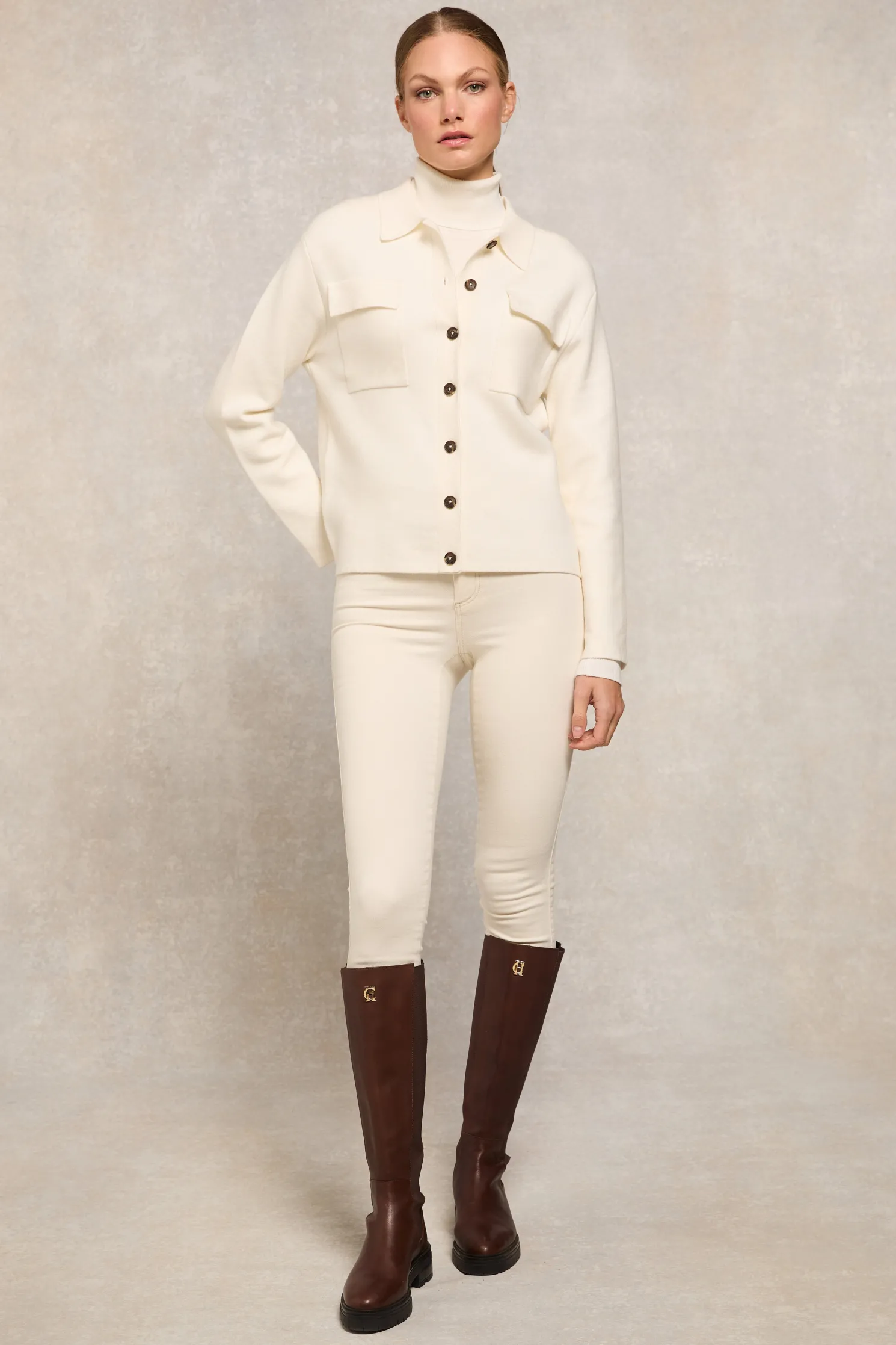 Crafted with a double knitting stitch, this beautiful overshirt offers a luxurious and cosy feel. Featuring two front chest pockets adorned with tonal HC embroidery, it adds a touch of refined detail. The horn effect buttons enhance its classic appeal, making it a versatile and elegant addition to any outfit. Perfect for layering or wearing on its own, this piece is essential for any well-curated wardrobe.