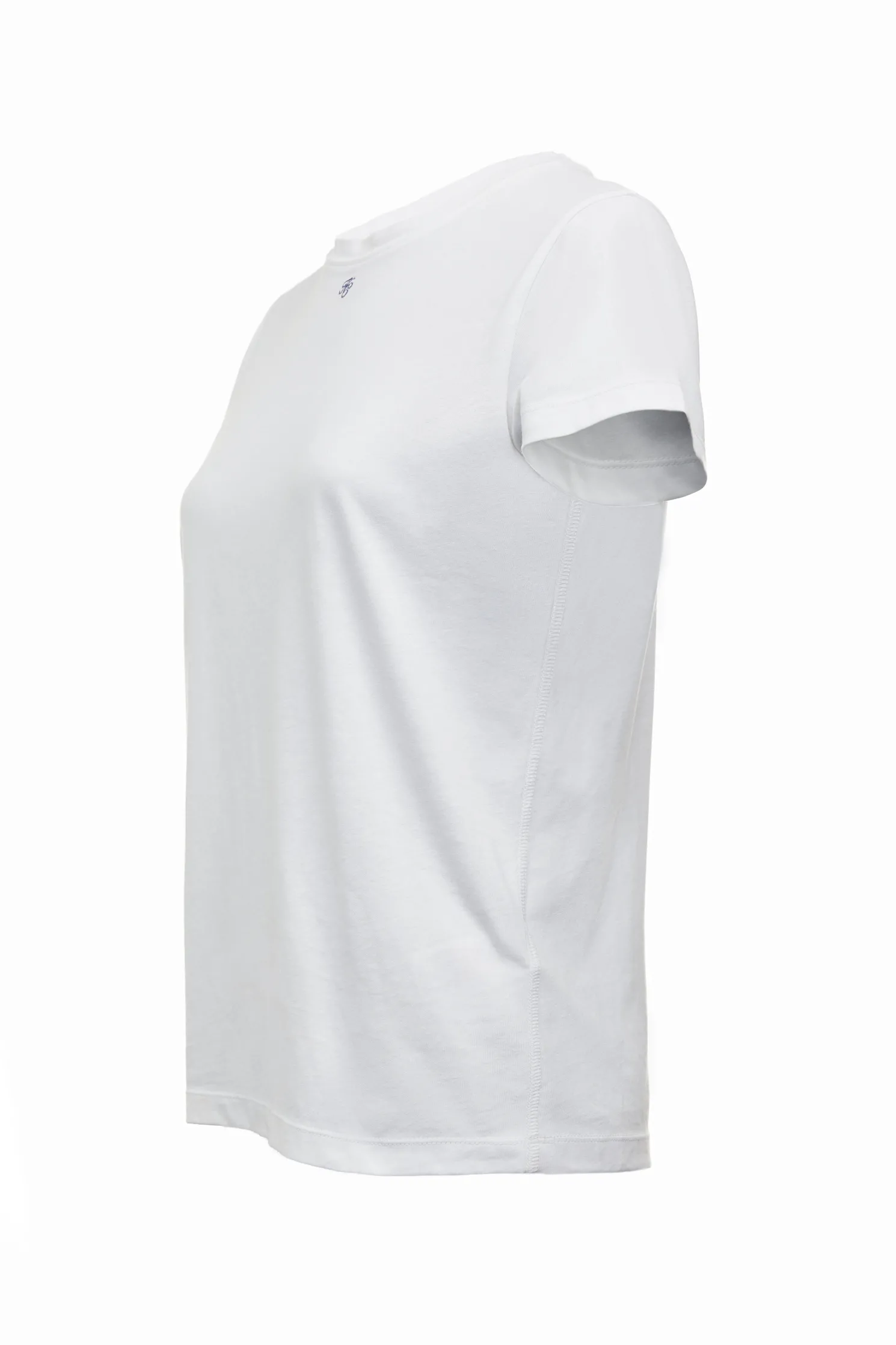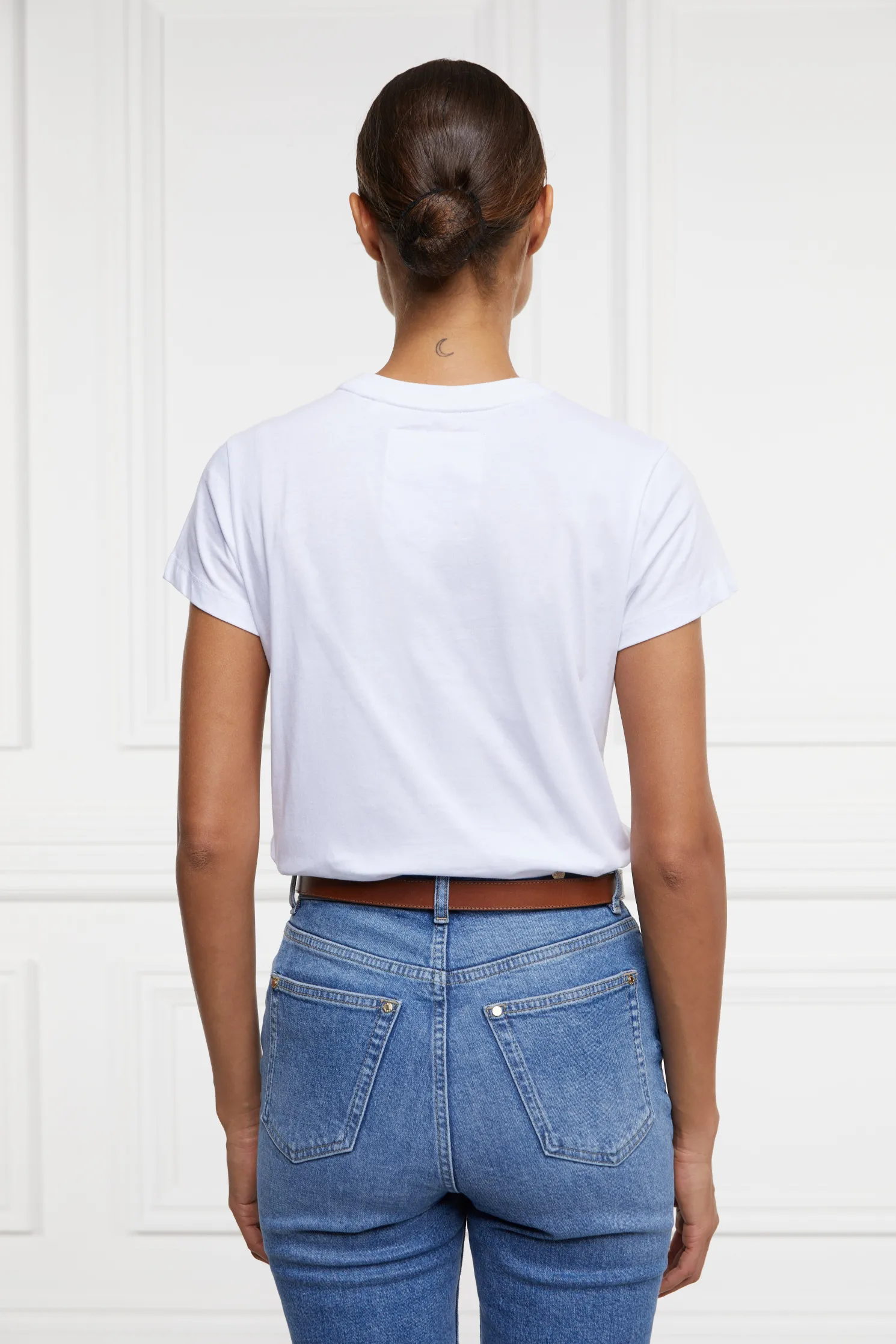 This wardrobe classic is made from 100% cotton and is beautifully soft. It has a simple crew neck and relaxed fit making it a great versatile piece. Detailed with HC embroidery on the neckline.