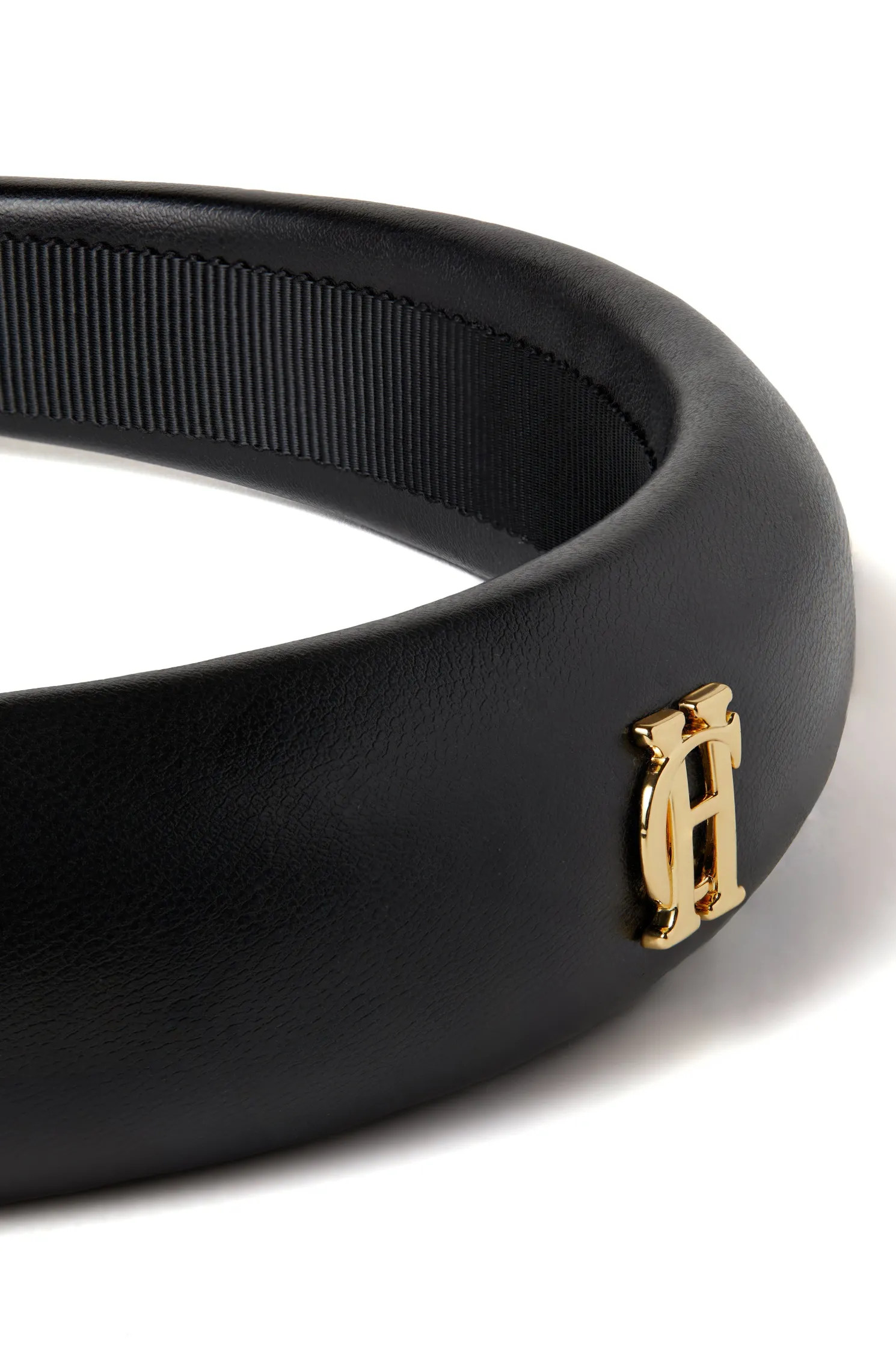 This refined and modern headband has been designed with a minimalist aesthetic. Crafted from a PU fabric with a padded composition, the gold HC makes for a statement and iconic wear.