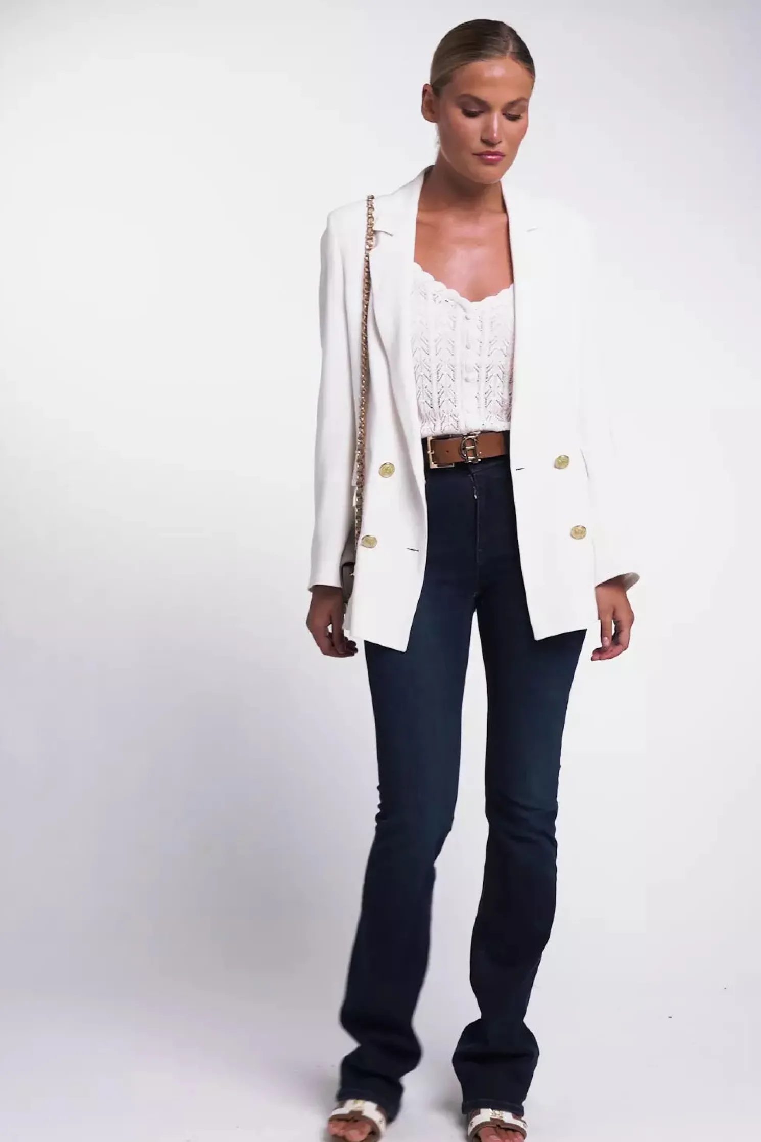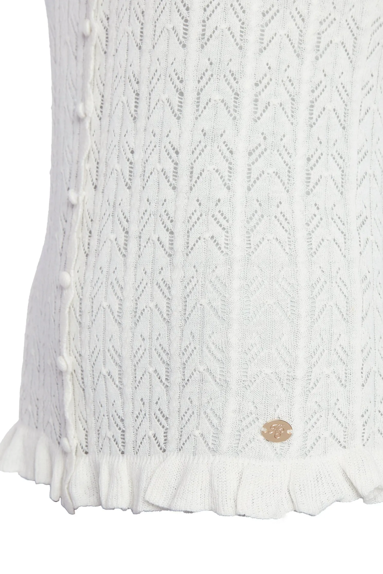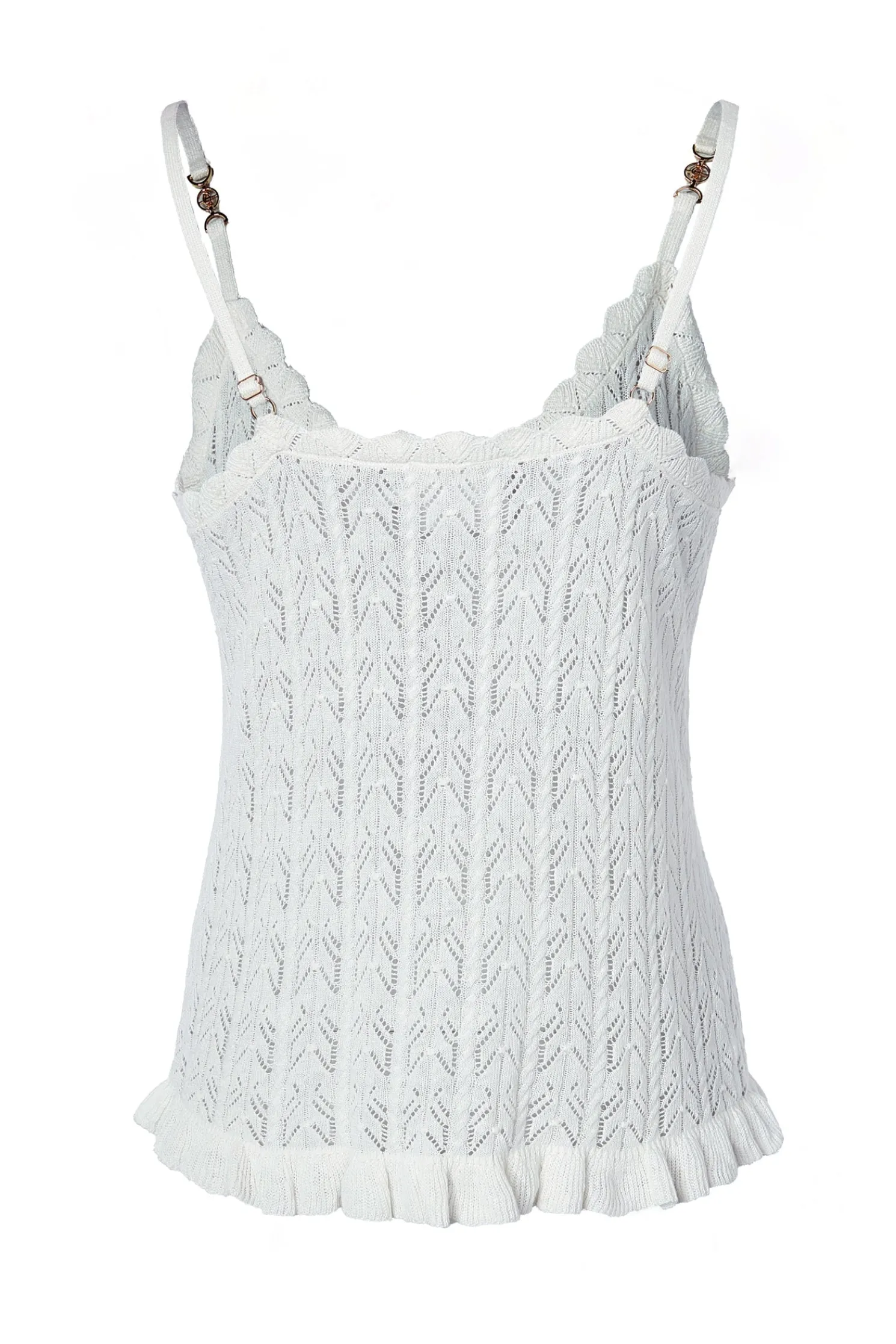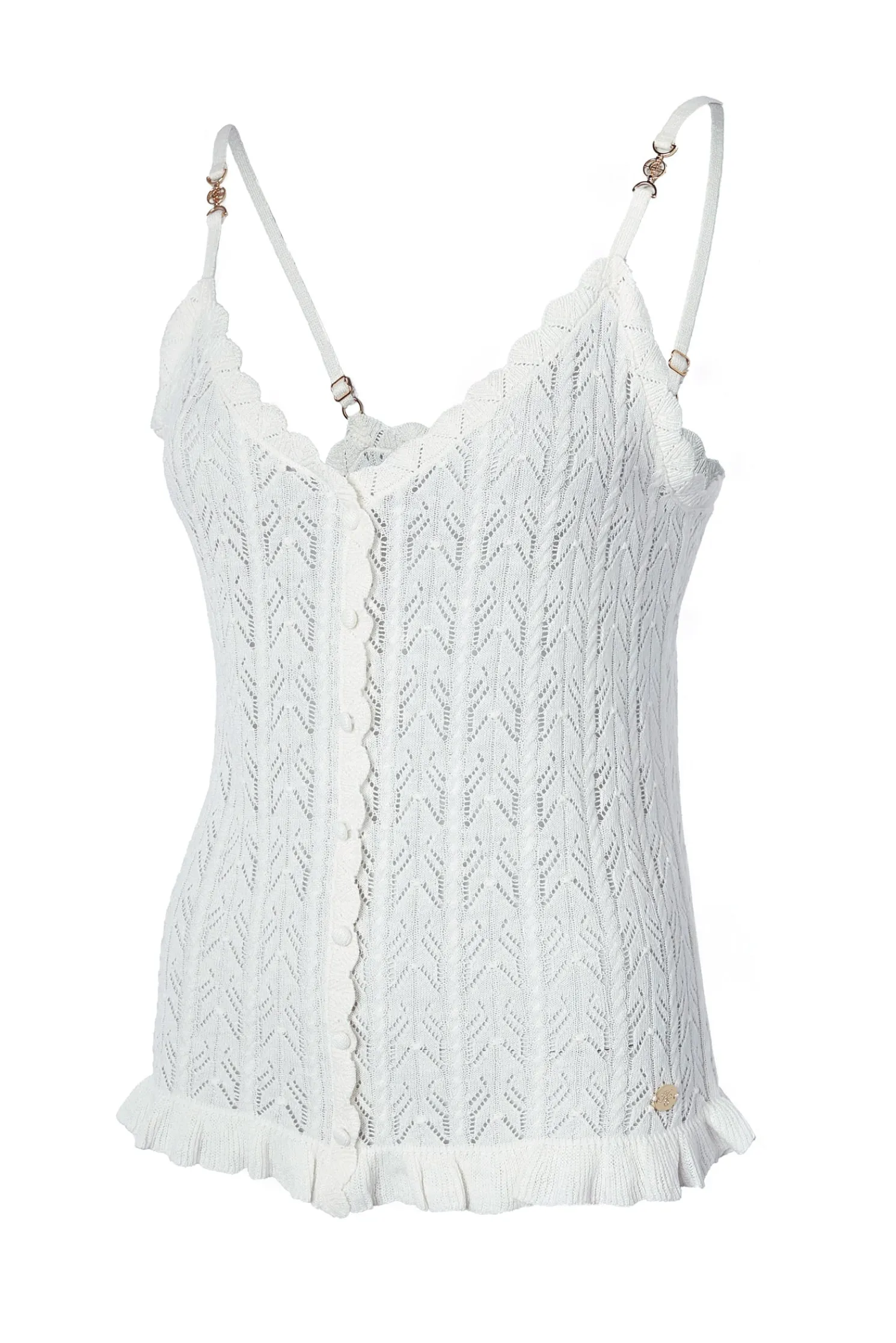 Designed for a relaxed fit, this vest top has been crafted from the softest cotton to ensure both comfort and an elegant drape. Enhanced by a deep v-neckline and a delicate pointelle stitch, the scalloped finishings and HC strap hardware add a subtle edge to this everyday piece. Detailed with fabric-covered buttons to the front.