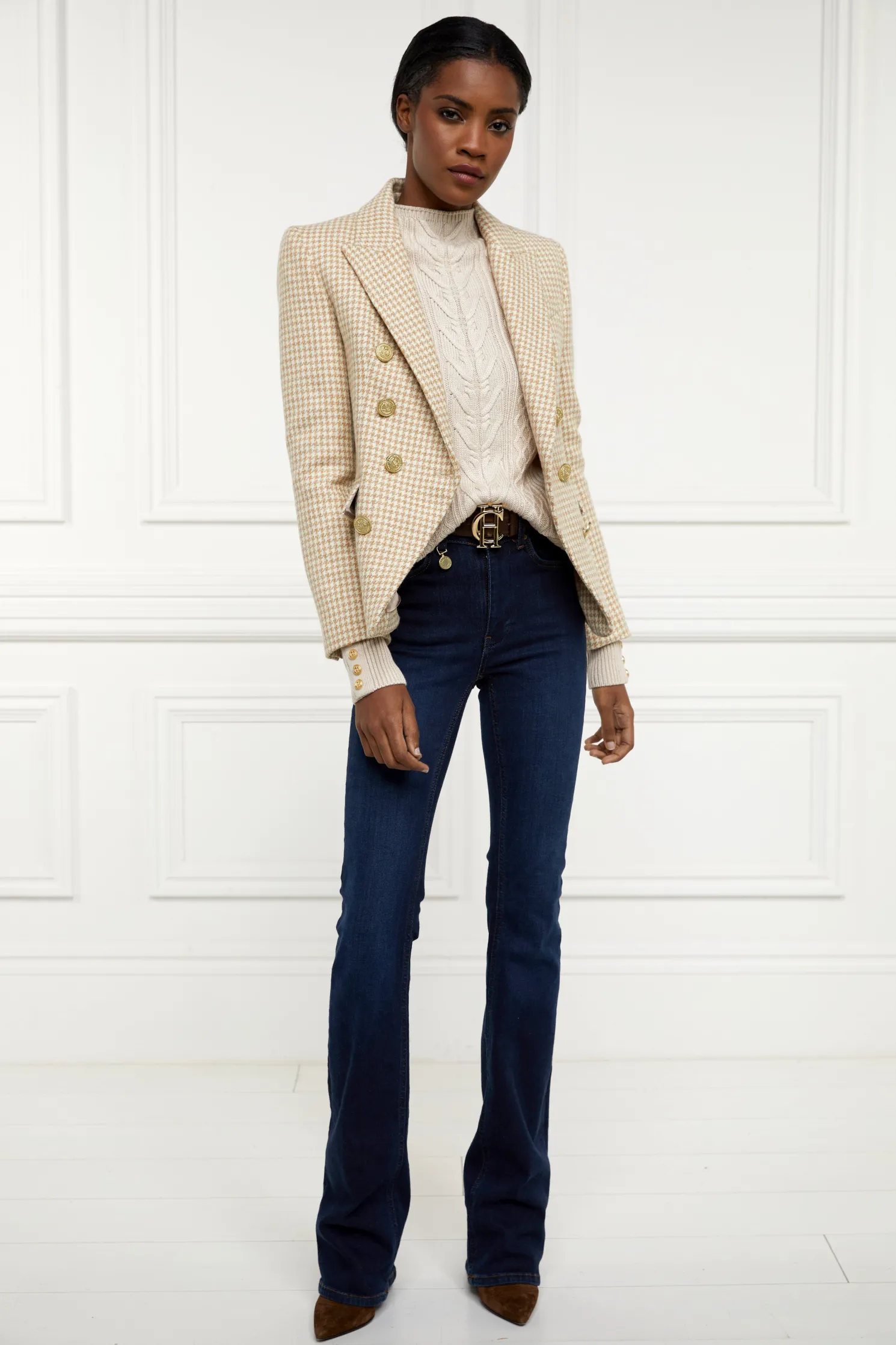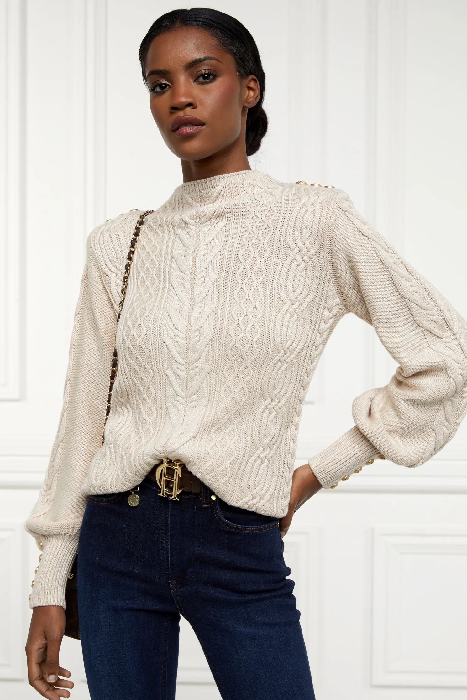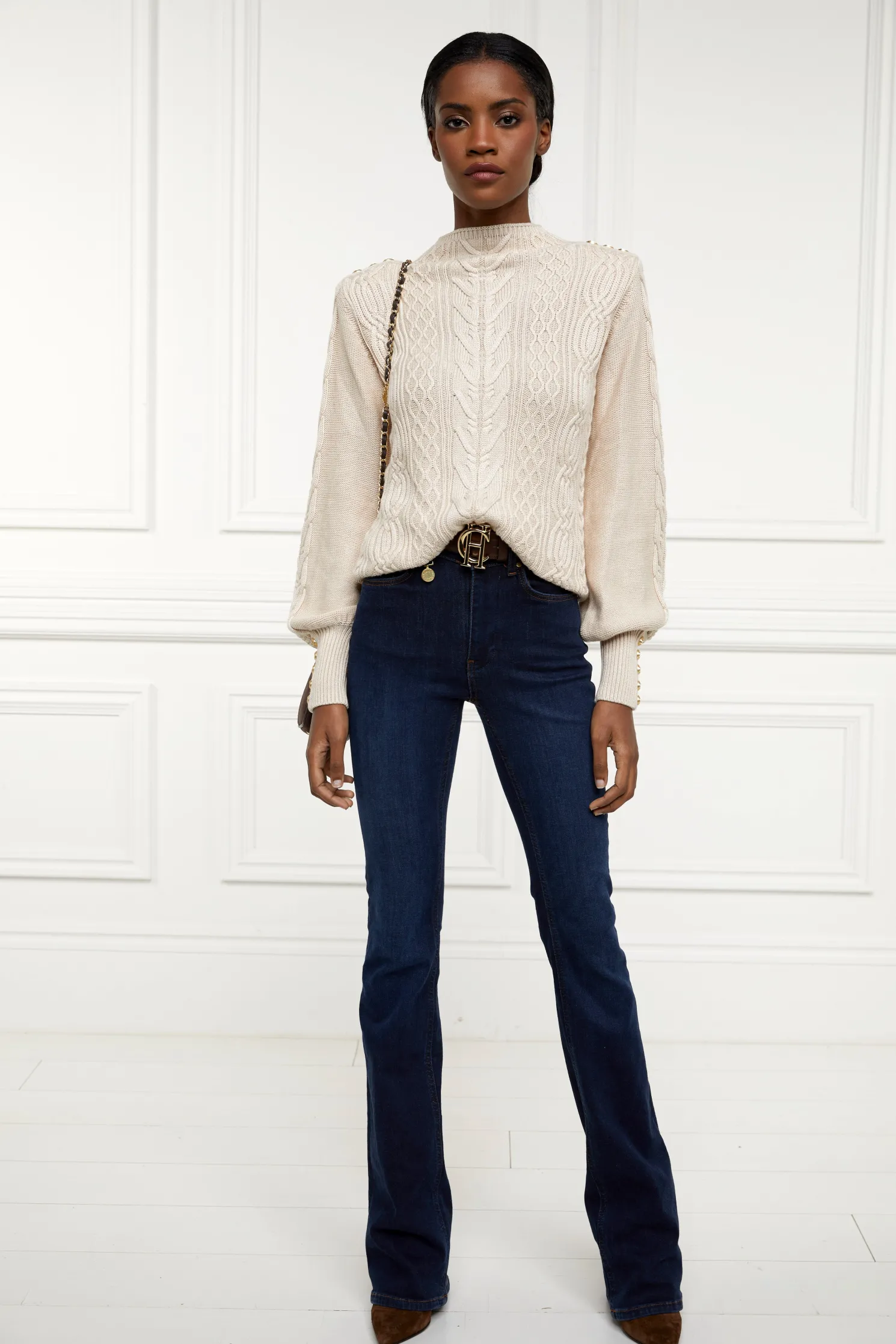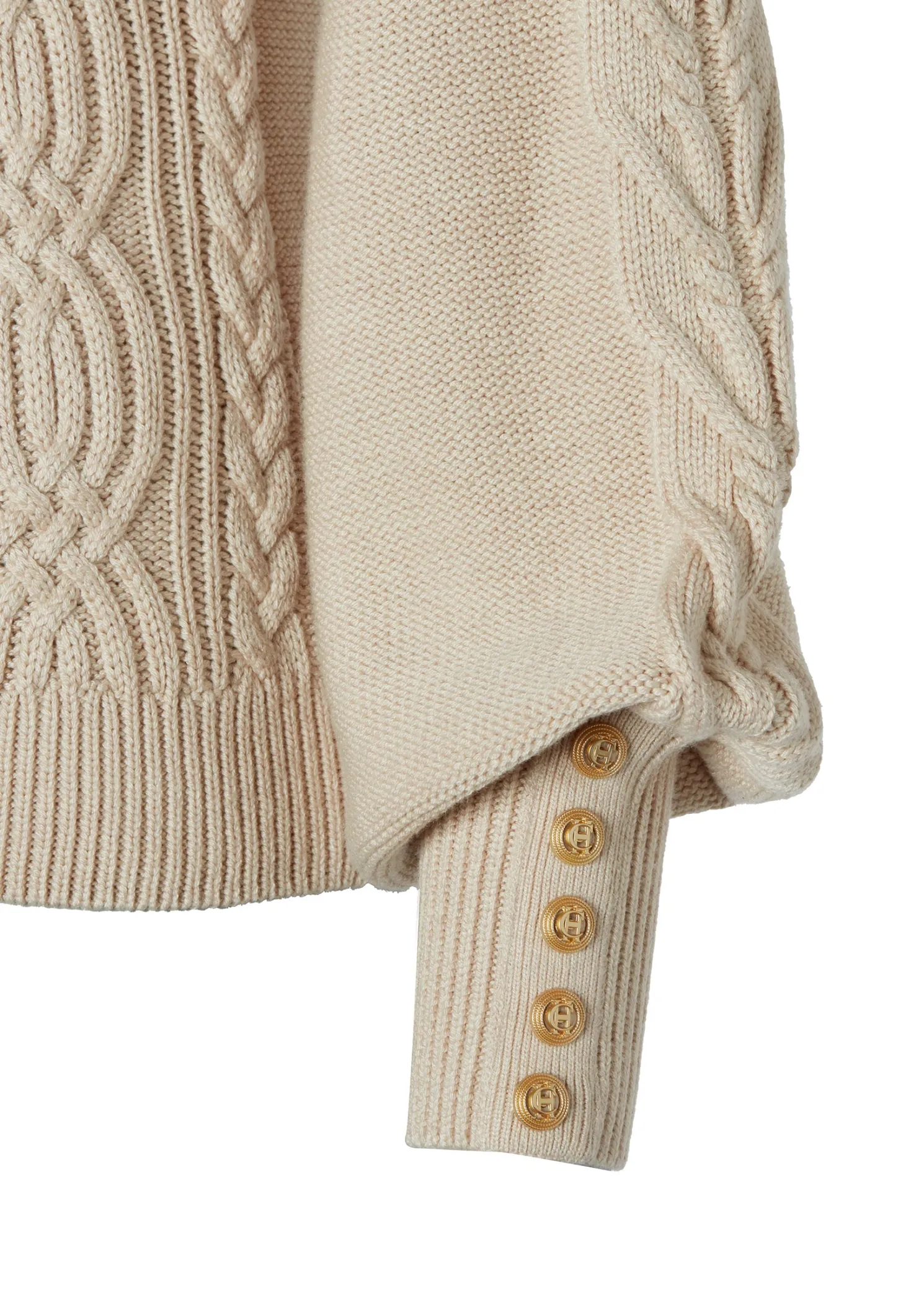 The Rachel Knit is a chic and versatile piece, featuring mixed cabling detail on the front for added texture and depth. With a slim fit throughout the body and full sleeves, this knit offers a flattering silhouette. Signature hardware on the shoulders and cuffs adds a touch of elegance, making it a perfect blend of style and sophistication for any occasion.