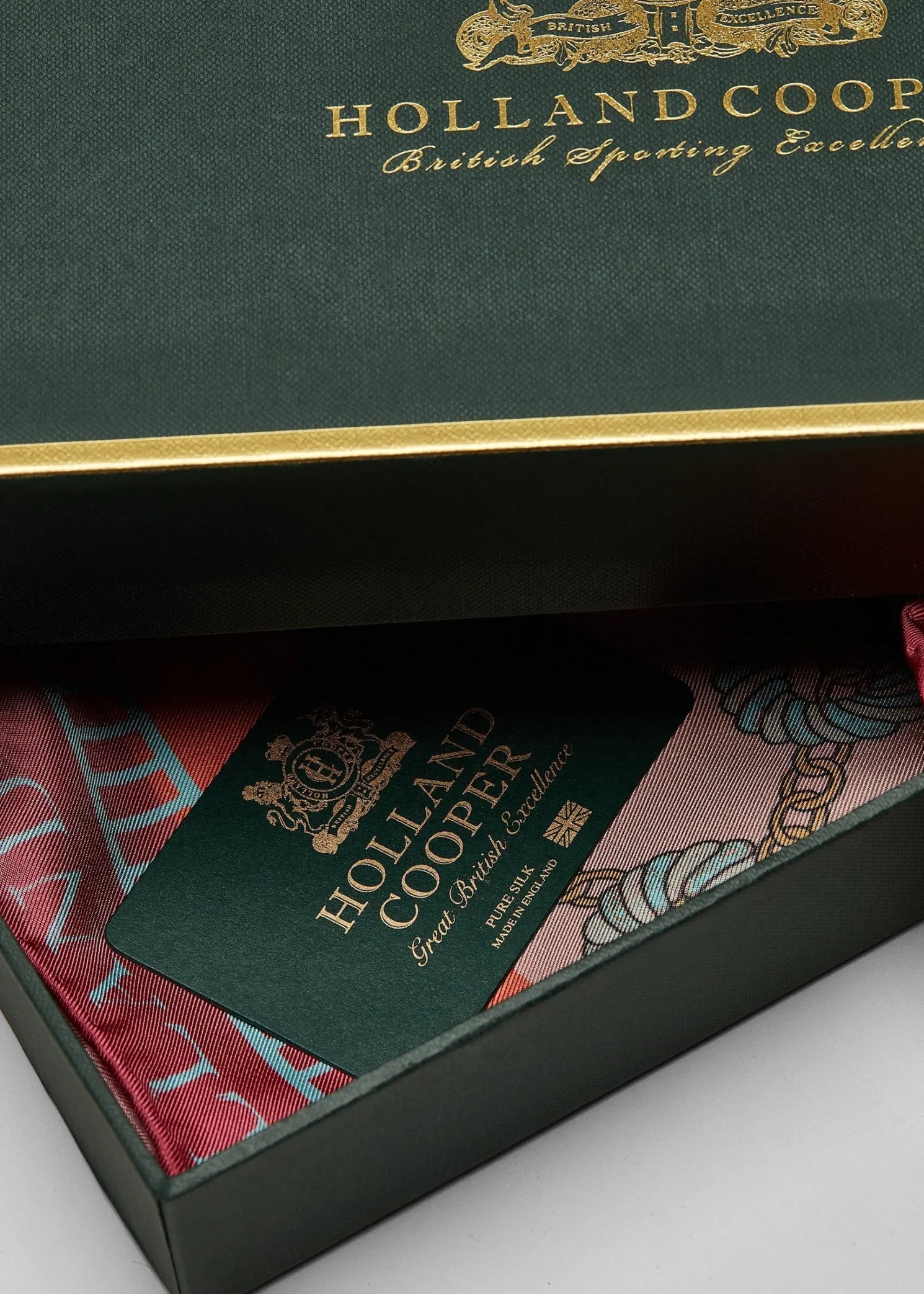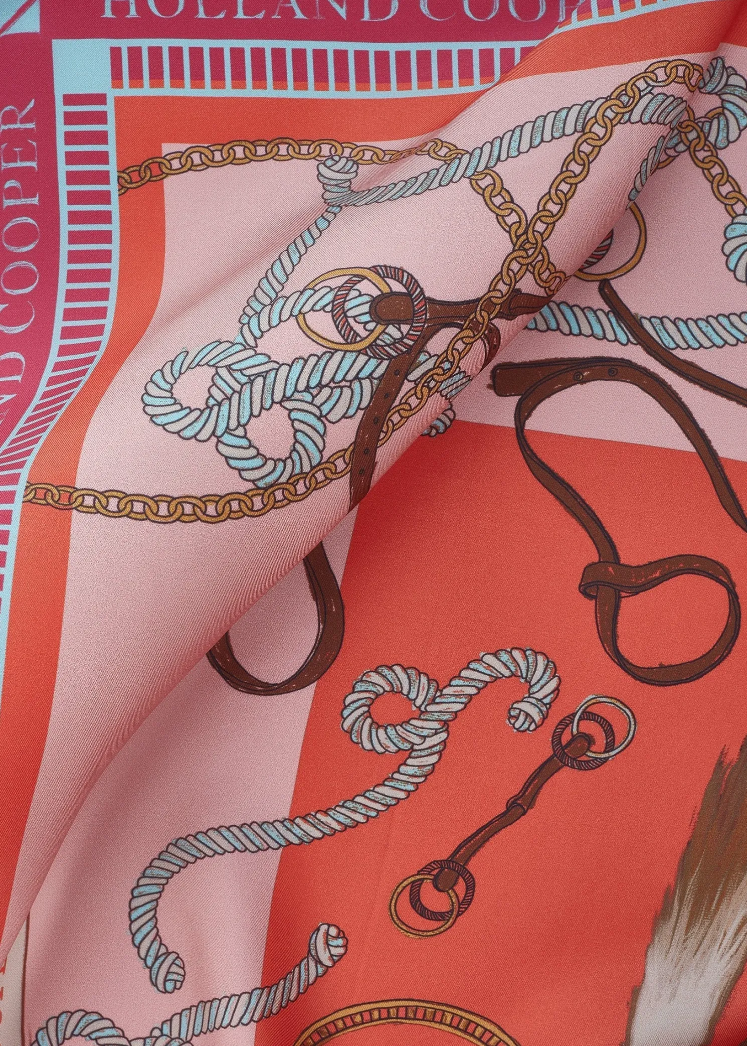 Each silk scarf is brightly decorated with HC signature artwork from our archive, hand rolled and made in England using the finest pure silk. It is made from the finest silk that has a flowing, lightweight handle, meaning it can be knotted and styled however you like. When you’re not wearing it around your neck, why not tie it onto the handle of a tote or as a belt for your jeans or trousers.