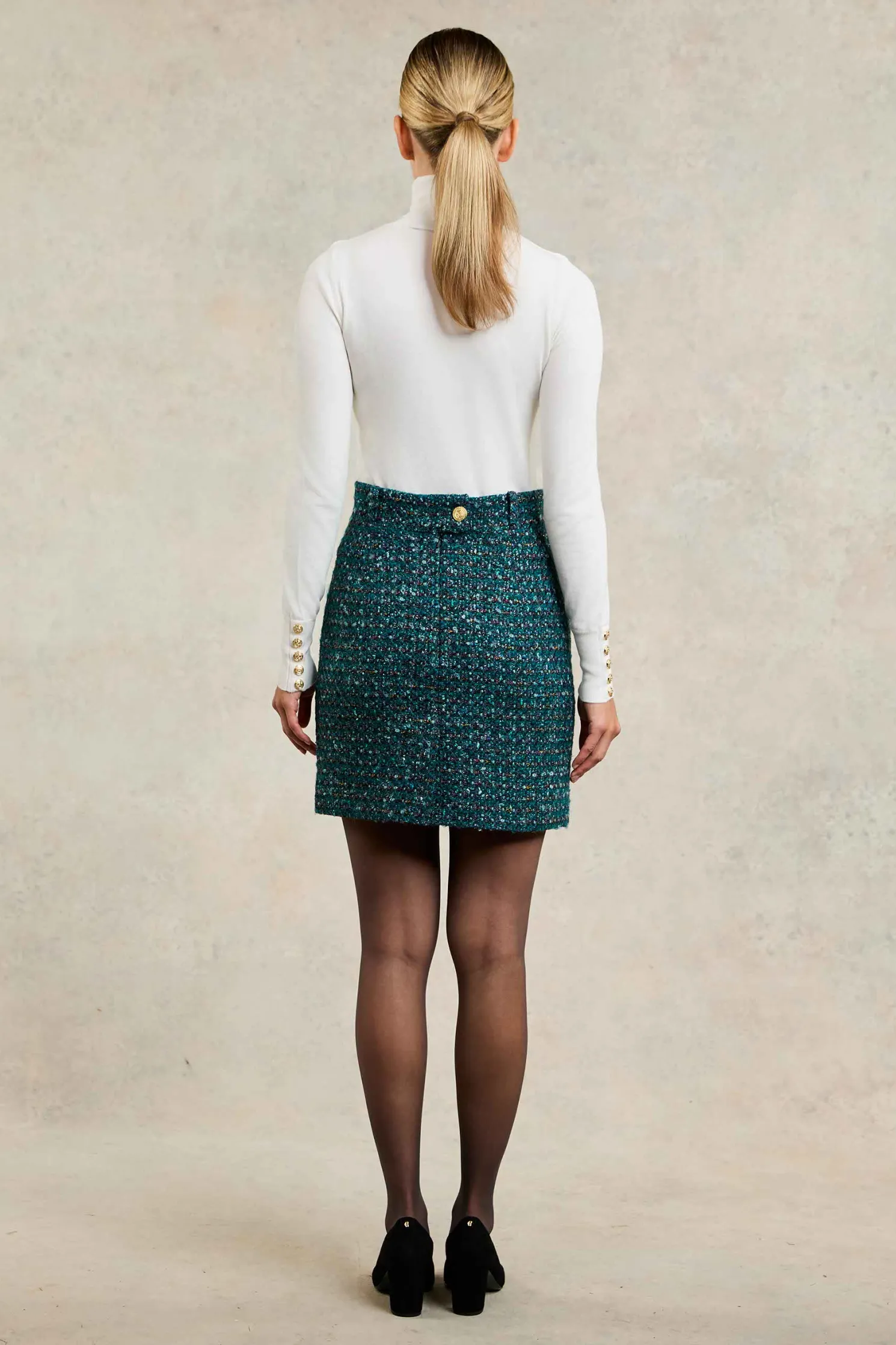 Enhanced by our iconic signature gold medallion, this classic pencil skirt is a timeless staple for your wardrobe. Handmade in the UK from English wools, it has a figure-hugging silhouette that has been designed to sit on the waist. Fully lined for comfort with a concealed zip on the back, this skirt has been created to fit perfectly into your everyday wardrobe.