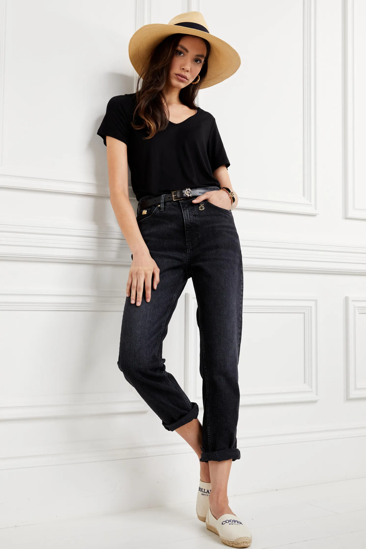 Designed in a traditional espadrille style, these shoes have been beautifully made in Spain. Created from a canvas fabric and set on a braided jute sole with rubber threads. Detailed with high build HC embroidery with a tri-colour tab to the heel.