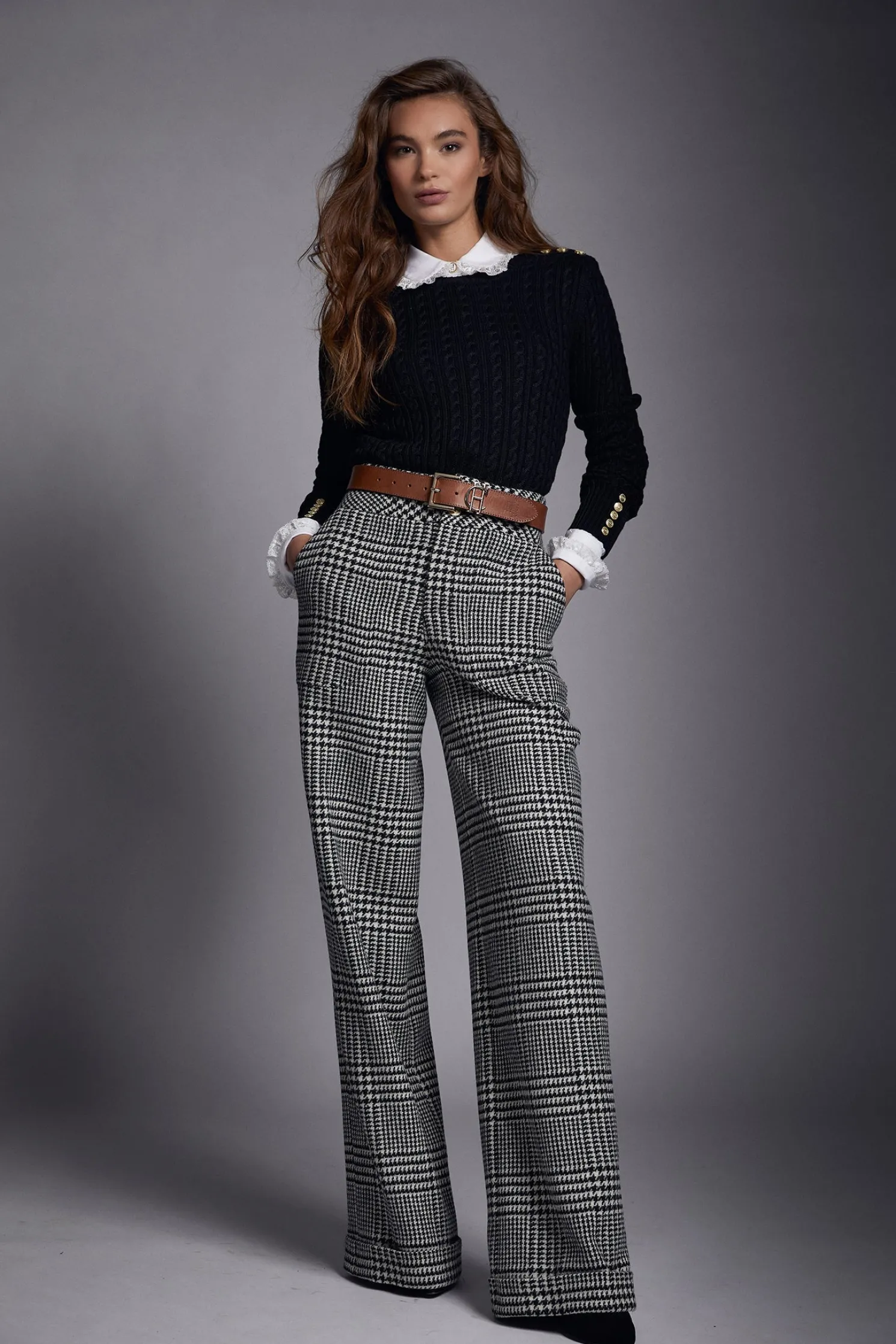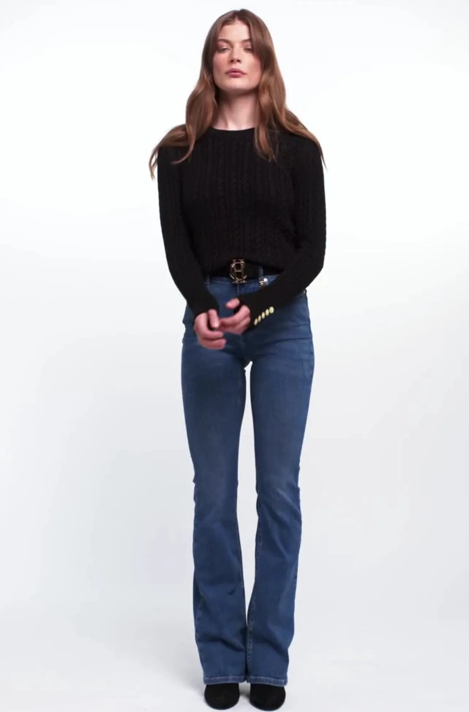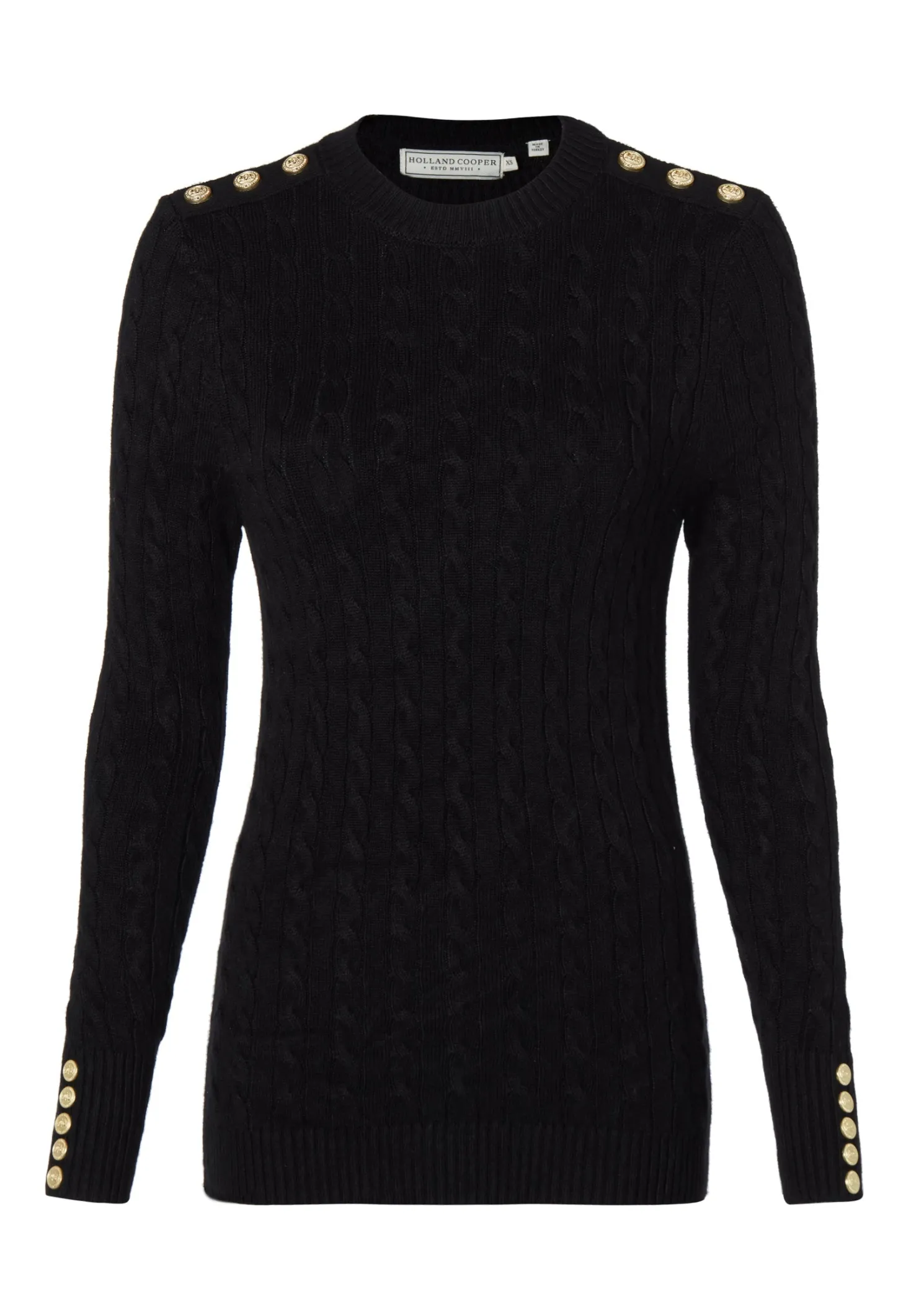 Designed with a slim fit with a classic and preppy aesthetic, this knit has been created to become an everyday essential in your wardrobe. Created with an elegant crew neck and long sleeves, this piece is intended to sit on the hip. Detailed with our signature gold rivets on the cuffs.