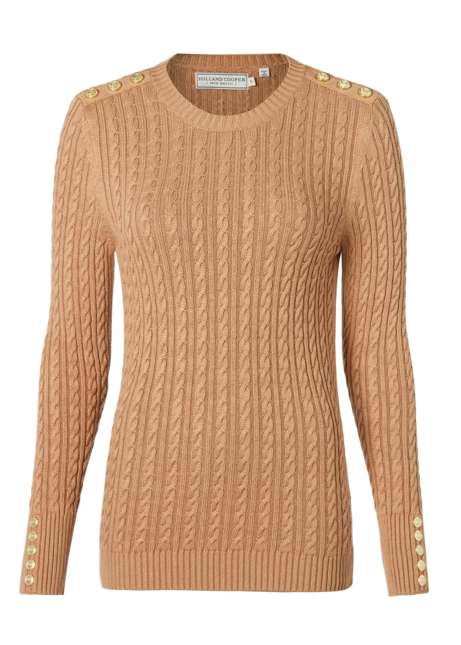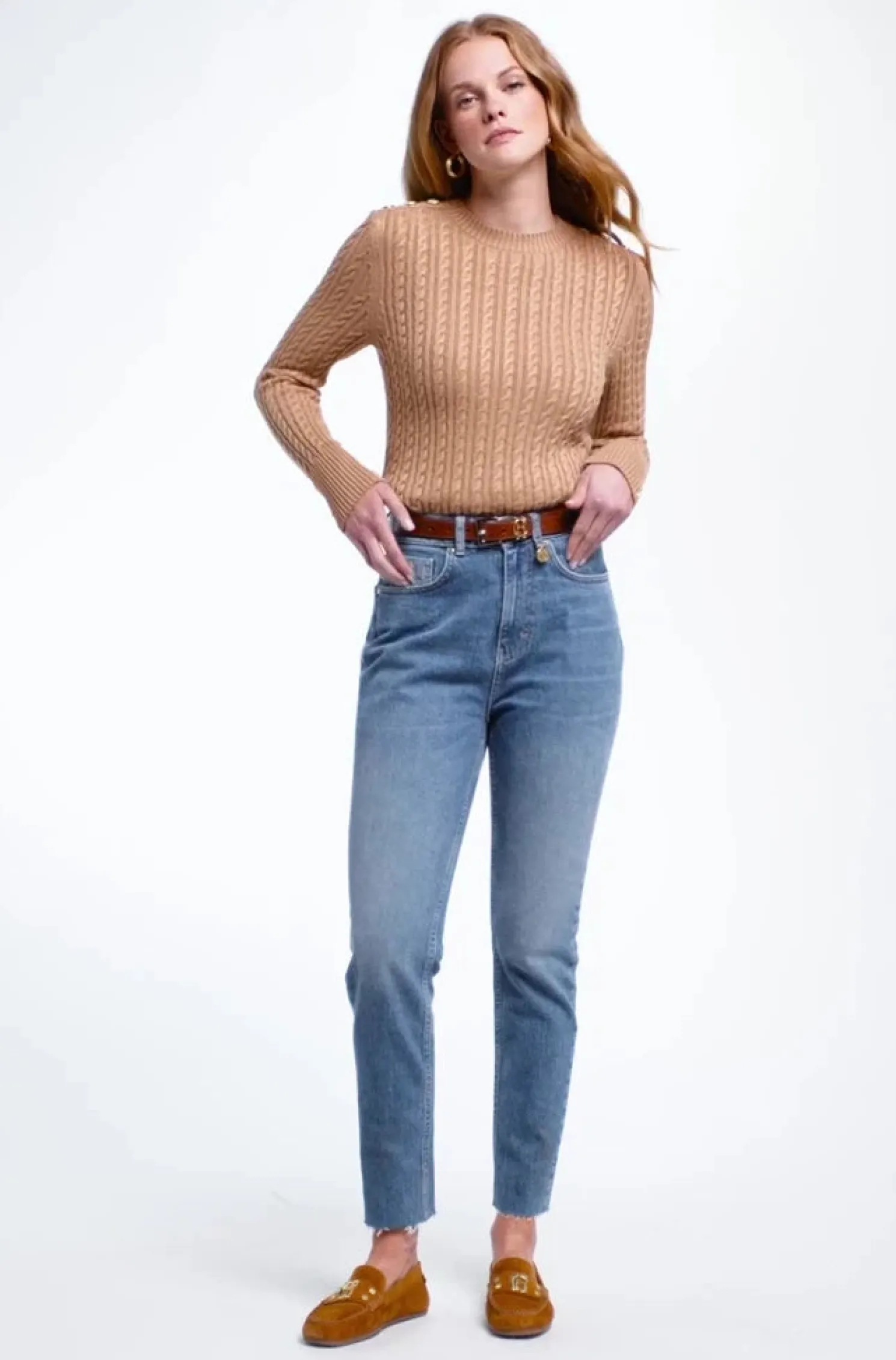 Designed with a slim fit with a classic and preppy aesthetic, this knit has been created to become an everyday essential in your wardrobe. Created with an elegant crew neck and long sleeves, this piece is intended to sit on the hip. Detailed with our signature gold rivets on the cuffs.