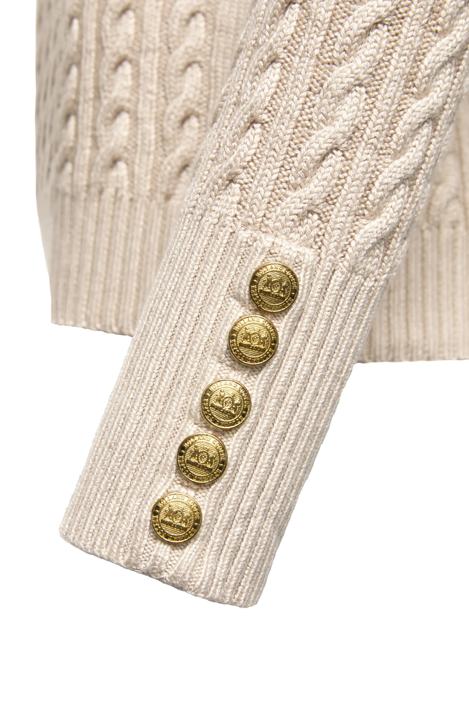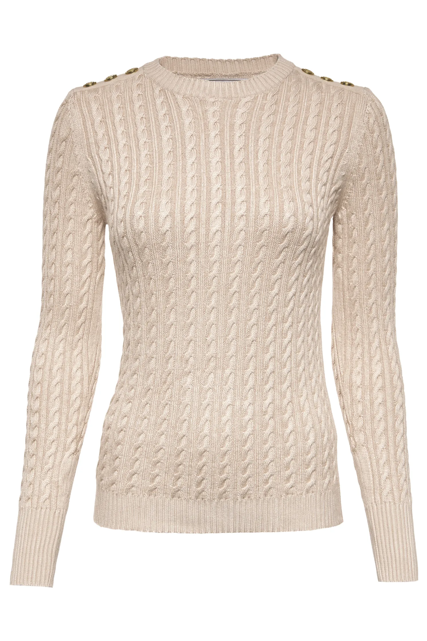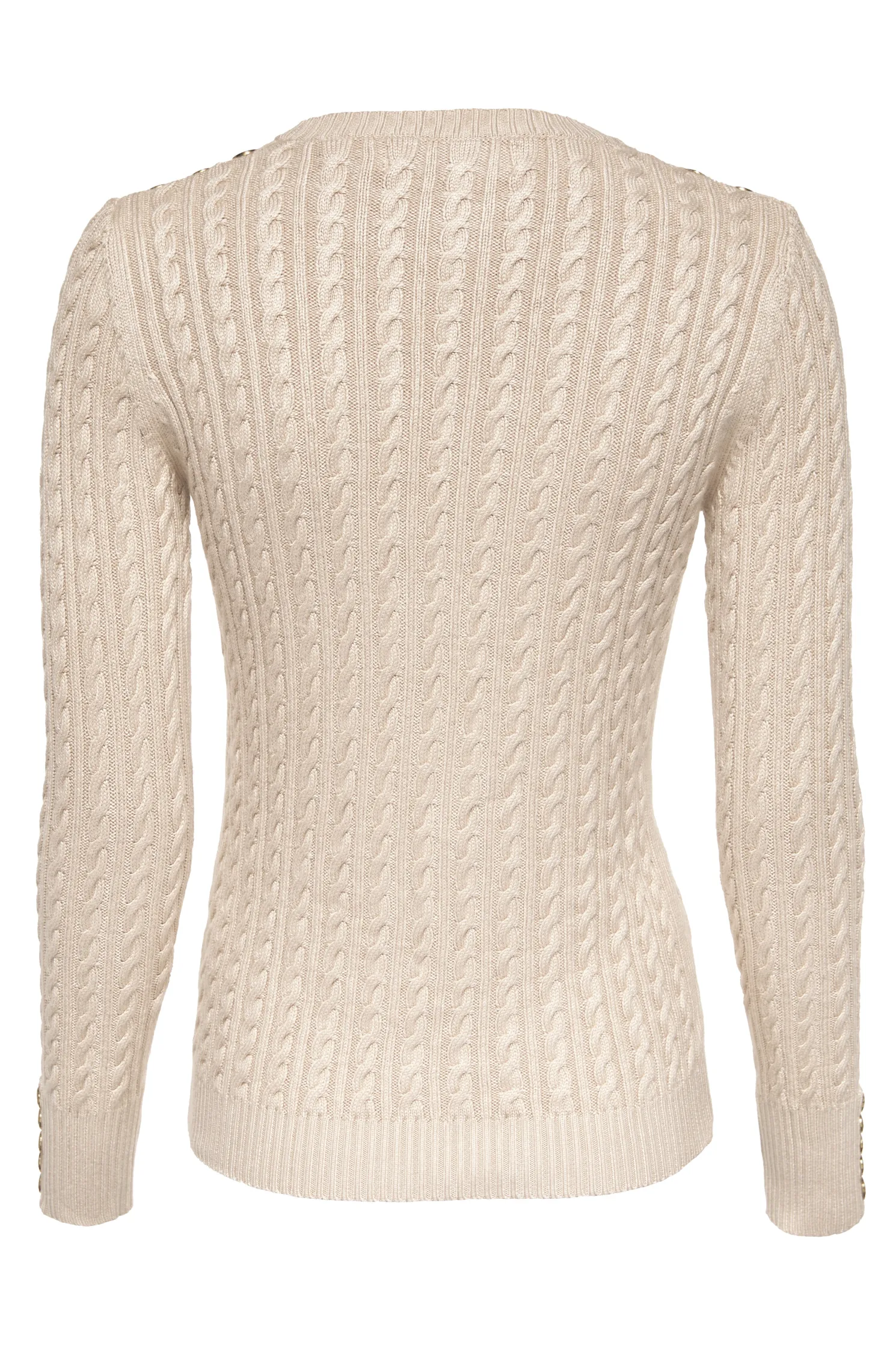 Designed with a slim fit with a classic and preppy aesthetic, this knit has been created to become an everyday essential in your wardrobe. Created with an elegant crew neck and long sleeves, this piece is intended to sit on the hip. Detailed with our signature gold rivets on the cuffs.