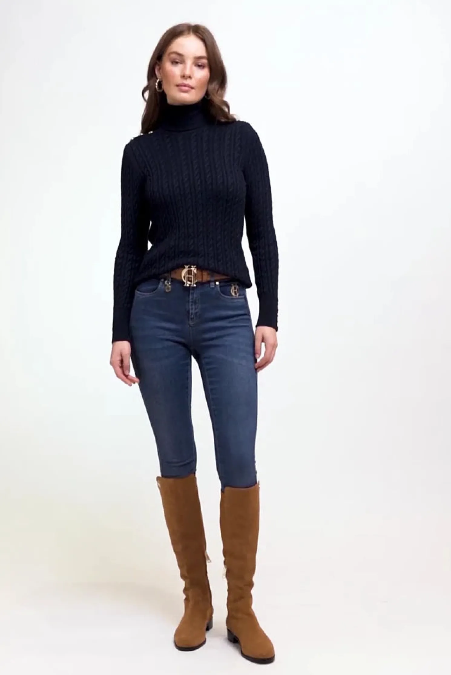 Seattle Roll Neck Cable Knit (Ink Navy)