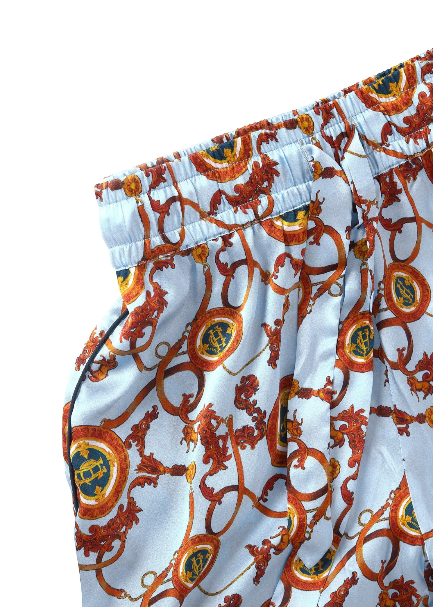 Made from our hand-drawn silk, with matching piping to the hem, our pyjama shorts have been designed with a loose fit. With a self tie waistband with subtle back pockets, these shorts are perfect for making your sleepwear feel truly luxurious. Pair with our pyjama tops and accessories to complete your look.