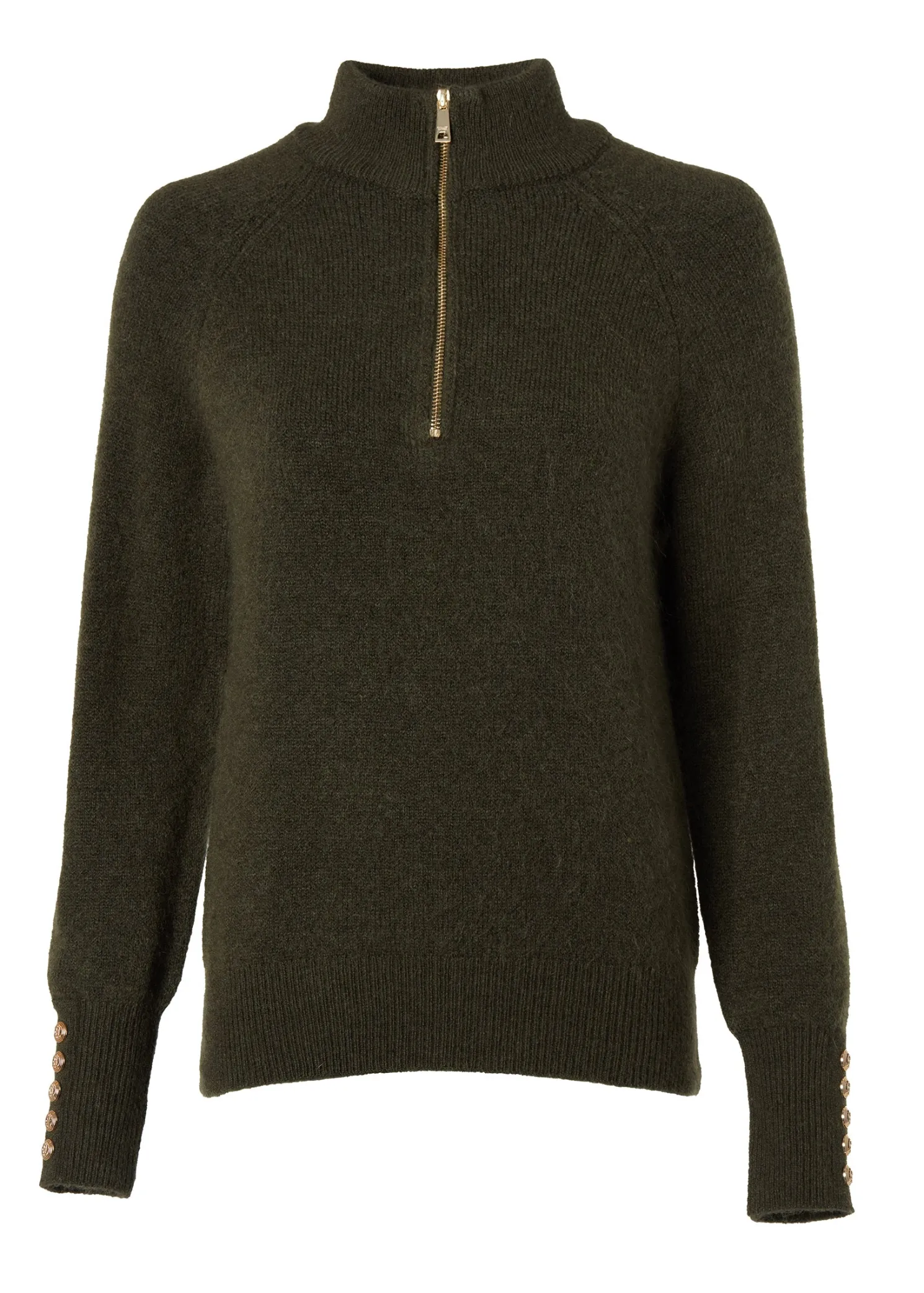 Expertly crafted from a premium wool and mohair blend that promises exceptional warmth. Designed for a relaxed fit through the body, it offers effortless style and comfort, making it an essential addition to any wardrobe. The raglan full sleeves provide a modern flattering silhouette, while the iconic HC hardware on the cuffs adds significant elegance and a chic focal point.