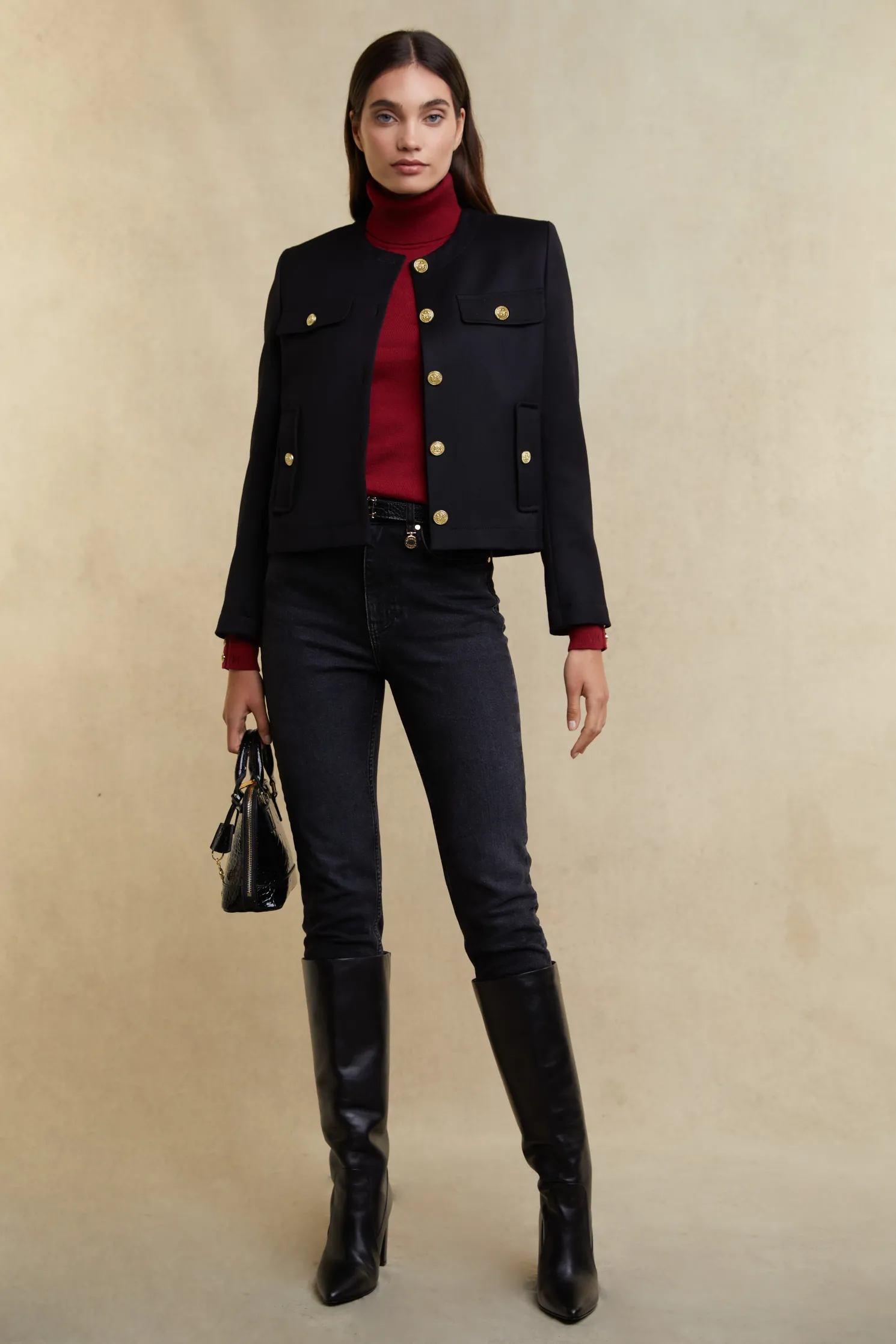 Crafted from luxuriously soft cashmere, this Roll Neck Knit has been elevated with exclusive new colorways, bringing fresh vibrancy to a timeless classic. Padded shoulders create a flattering, structured silhouette, while long sleeves and a high roll neck make it the perfect layering piece. Iconic HC gold buttons on the sleeves and a subtle VM embroidered on the hem complete this design, ensuring it stands out in your autumn-winter wardrobe.
