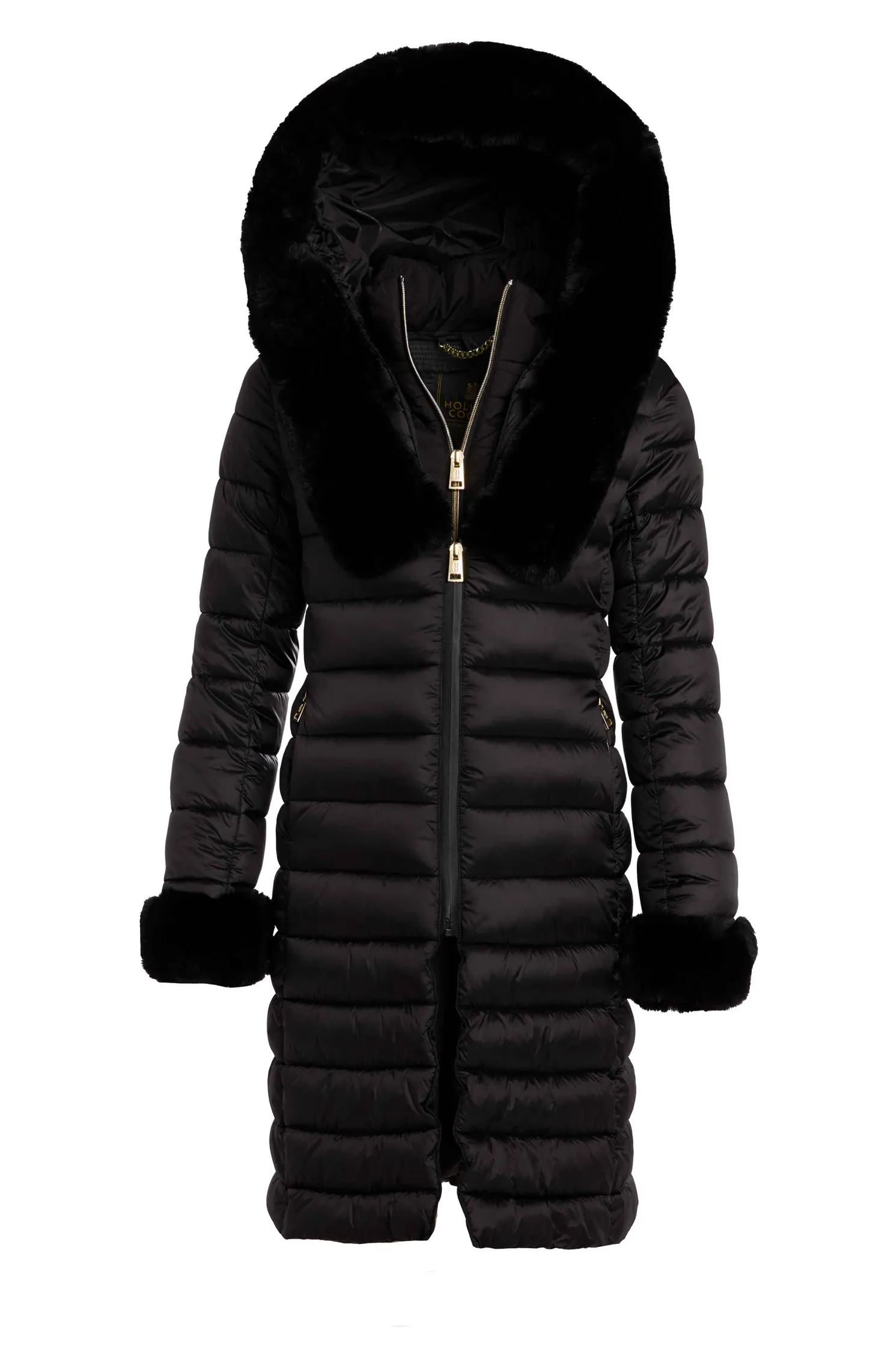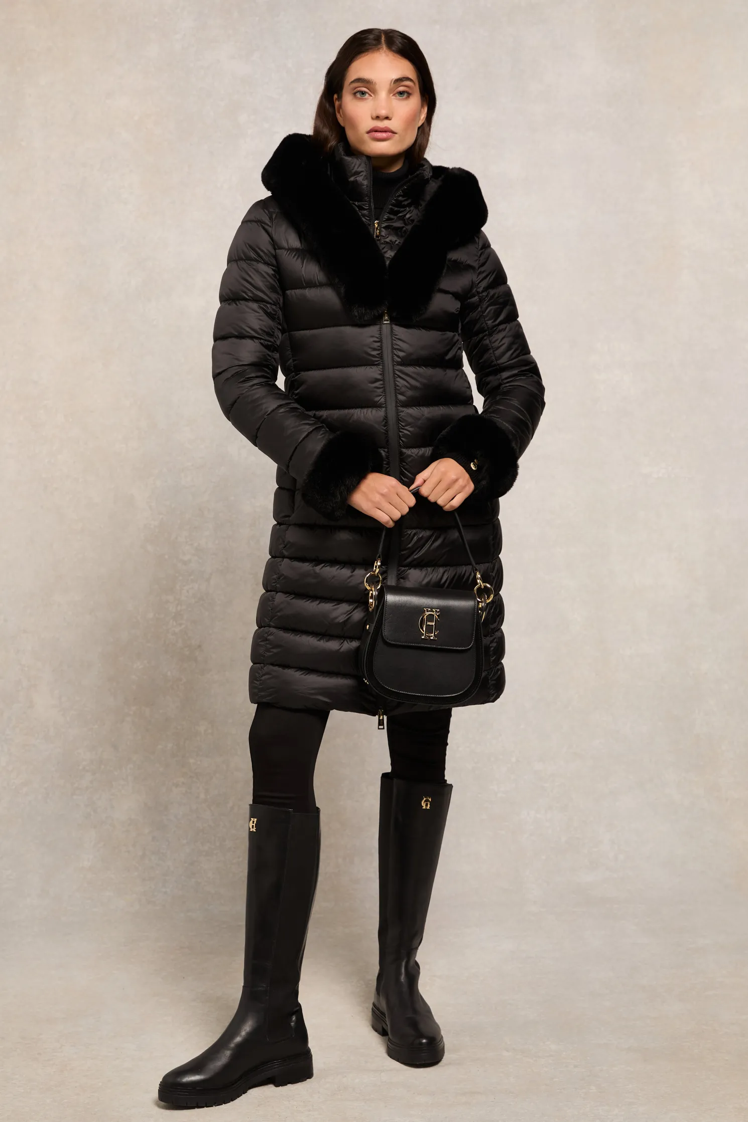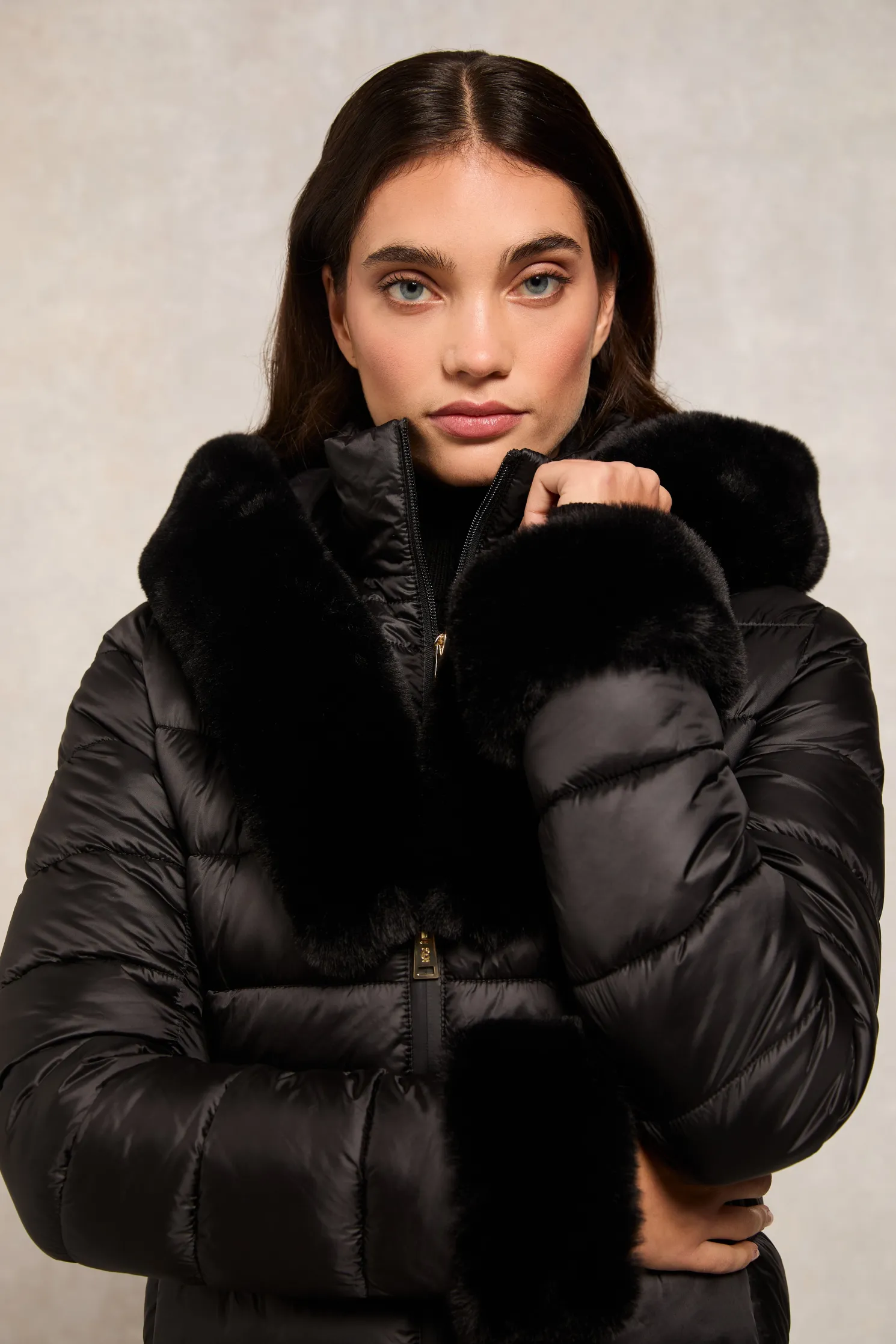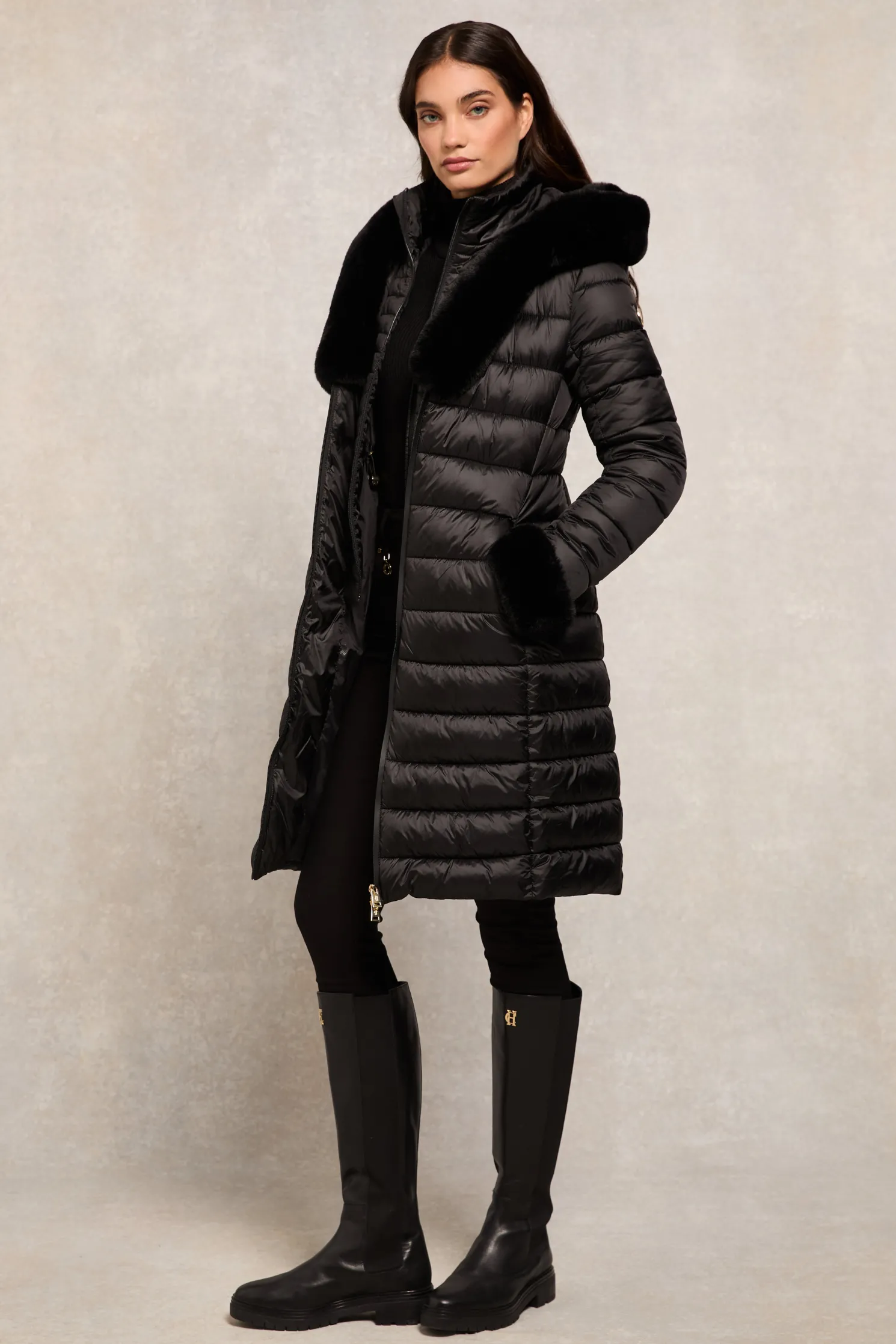 Inspired by our iconic Aspen Coat, this coat has been designed with a flattering length and silhouette whilst ensuring all the practicalities needed from a winter coat. Designed with a mock front gilet with elegant, removable faux trims, this coat has a chic and vintage aesthetic.