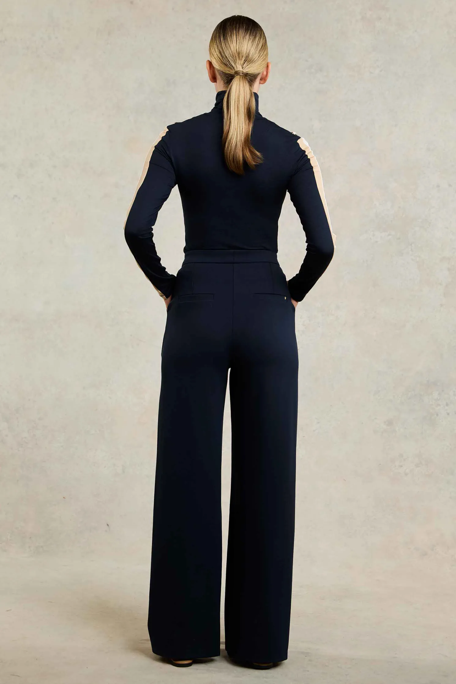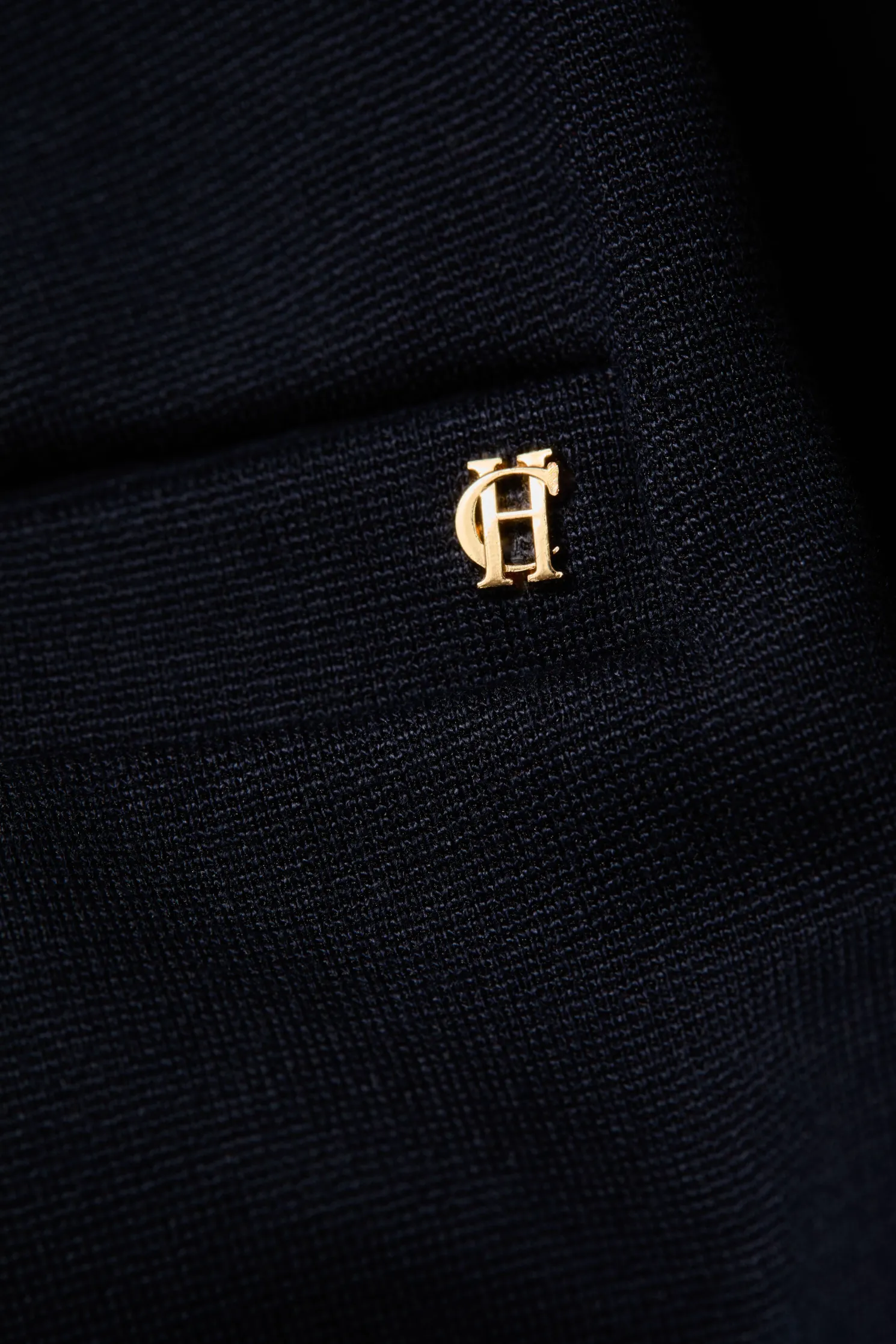 Understated and stylish, these wide leg trousers have been designed with a relaxed fit with a contemporary aesthetic. Designed with invisible pockets, these trousers are ideal for wearing casually or dressing up. Detailed with a subtle HC rivet to the back welt pocket. Wear with trainers for an every day casual style or elevate with a pair of heels.